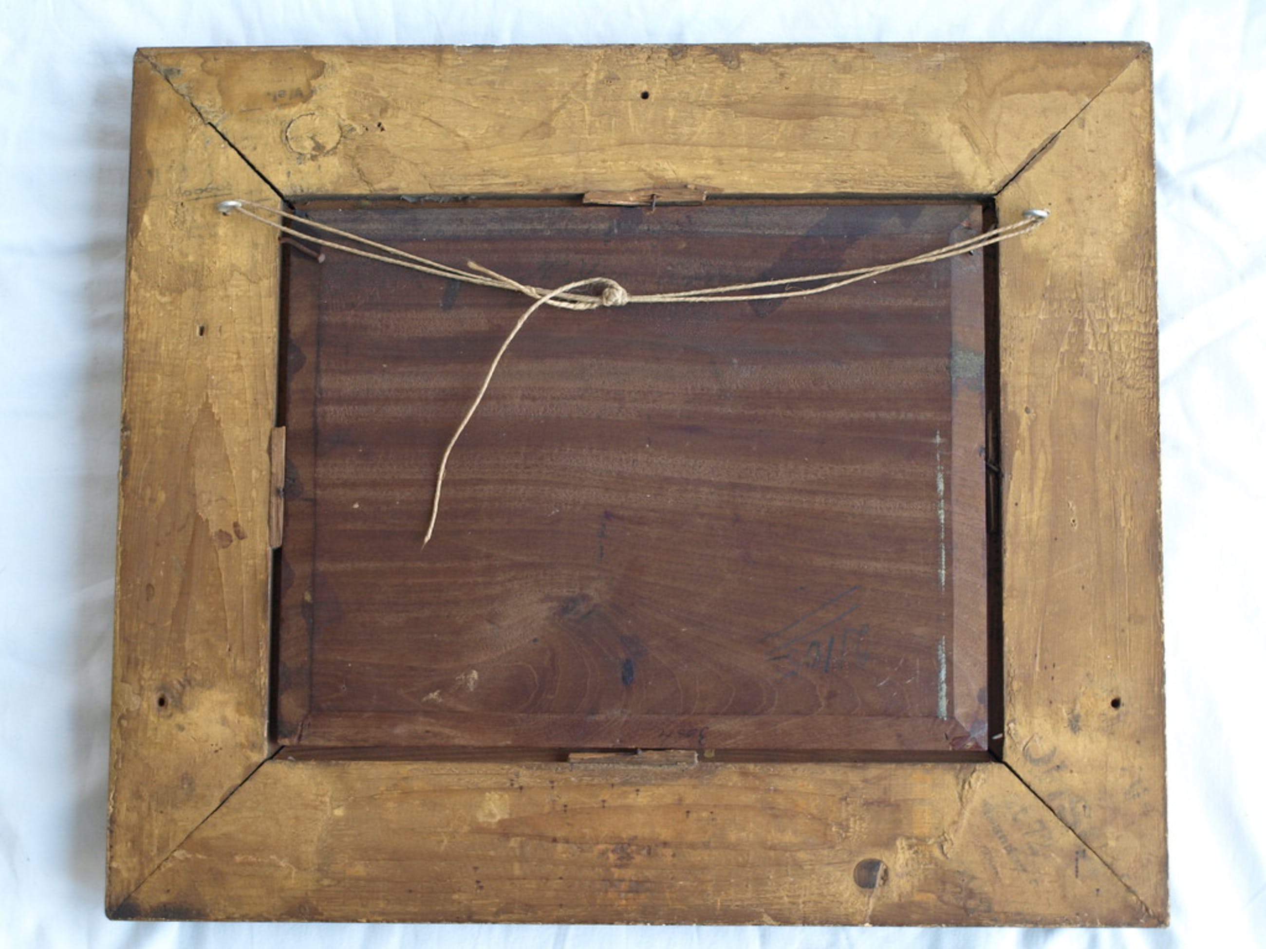 Het werk is ingelijst in de originele houten lijst met sierrand.