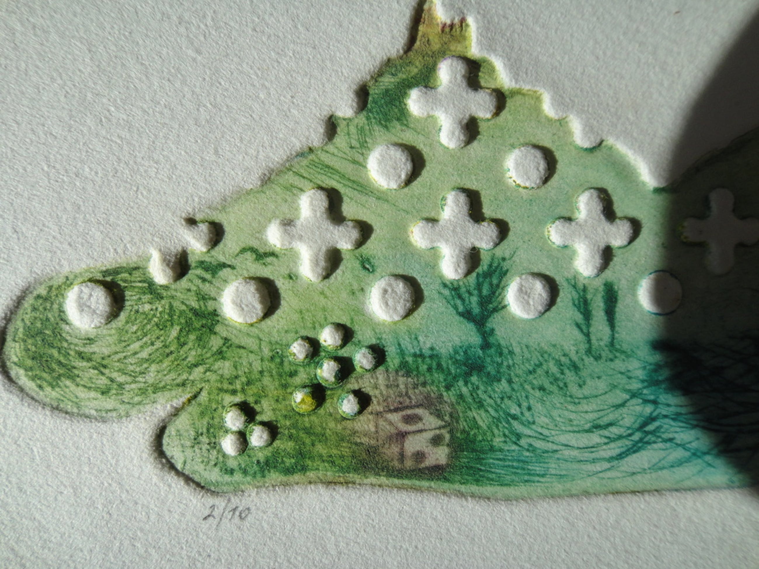 Apart kunstwerkje (bladmaat 11 bij 15 cm), dat rechtsonder (voor mij onleesbaar) gesigneerd is.