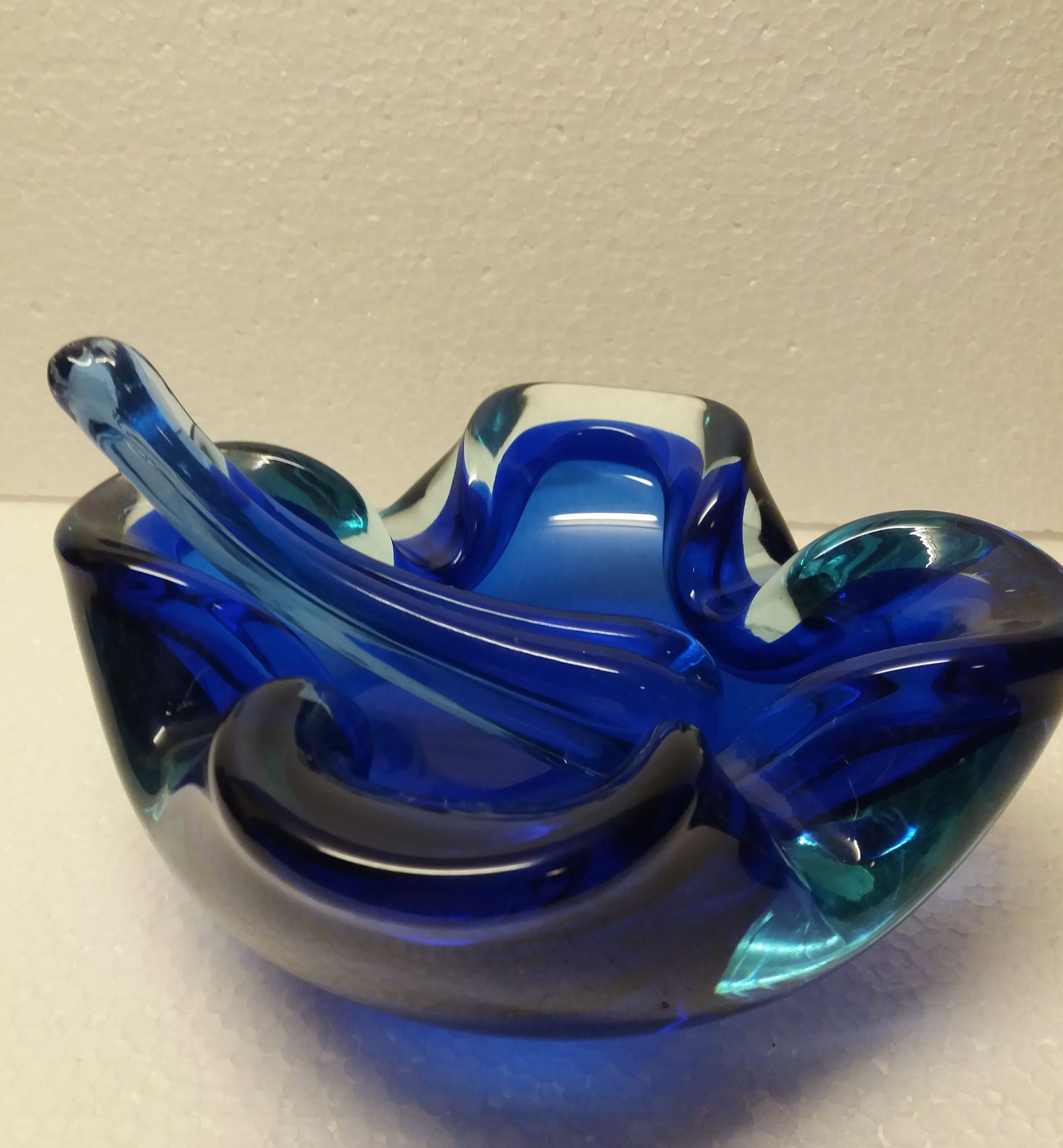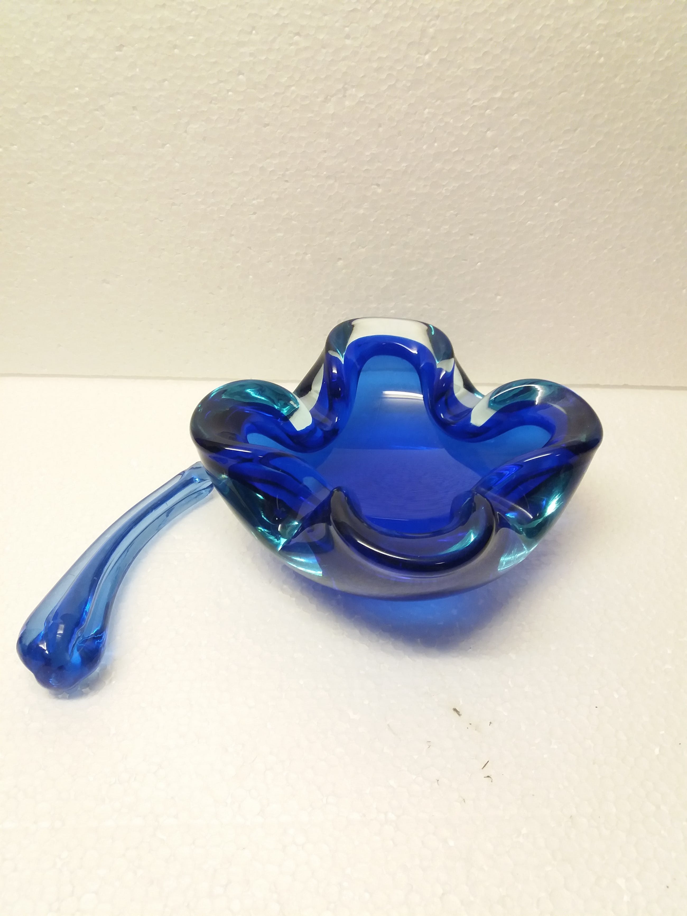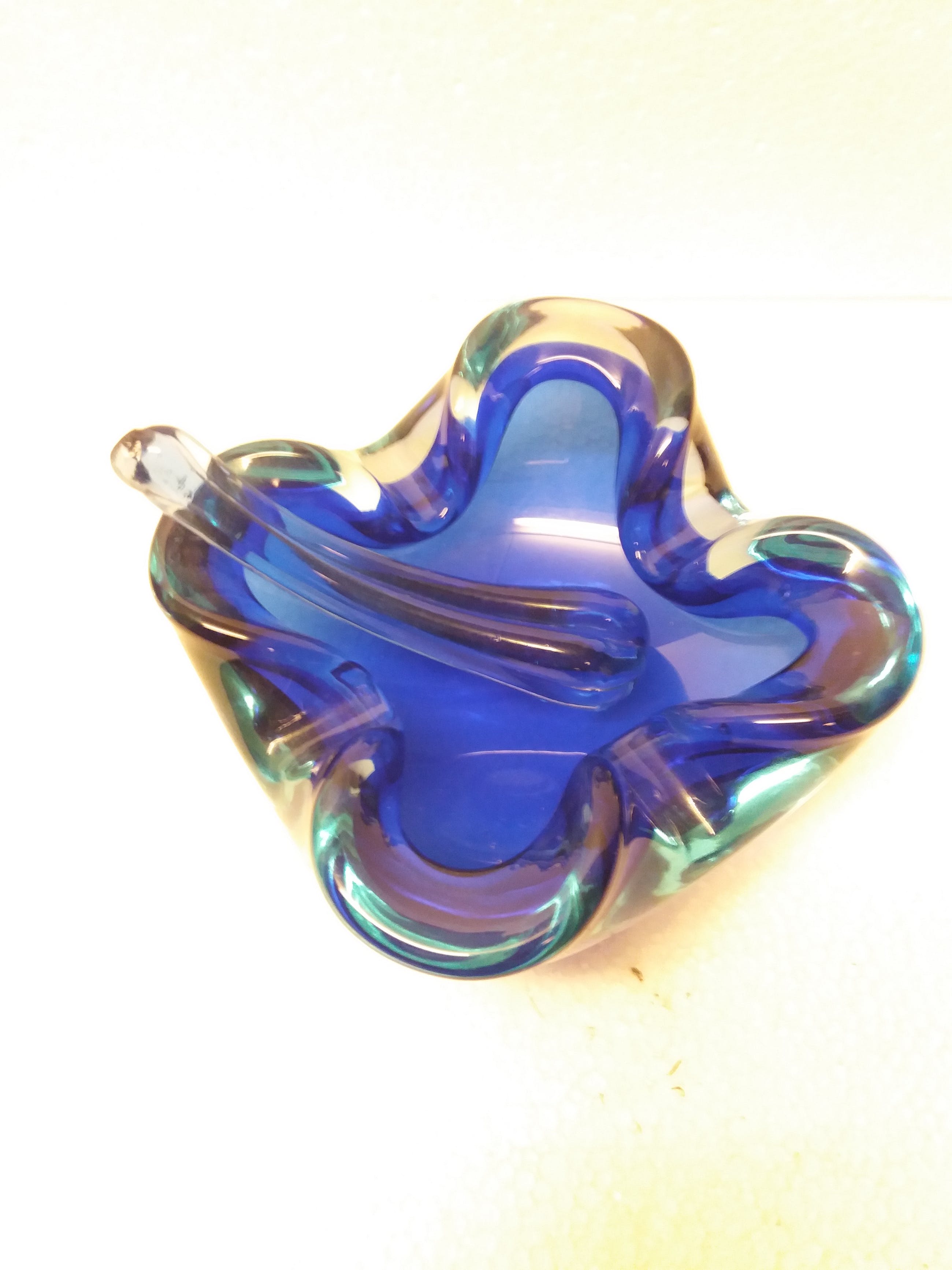 Mooie glazen asbak met stamper kobalt blauw uit jaren '60 signatuur onleesbaar wel 1964 zie je staan