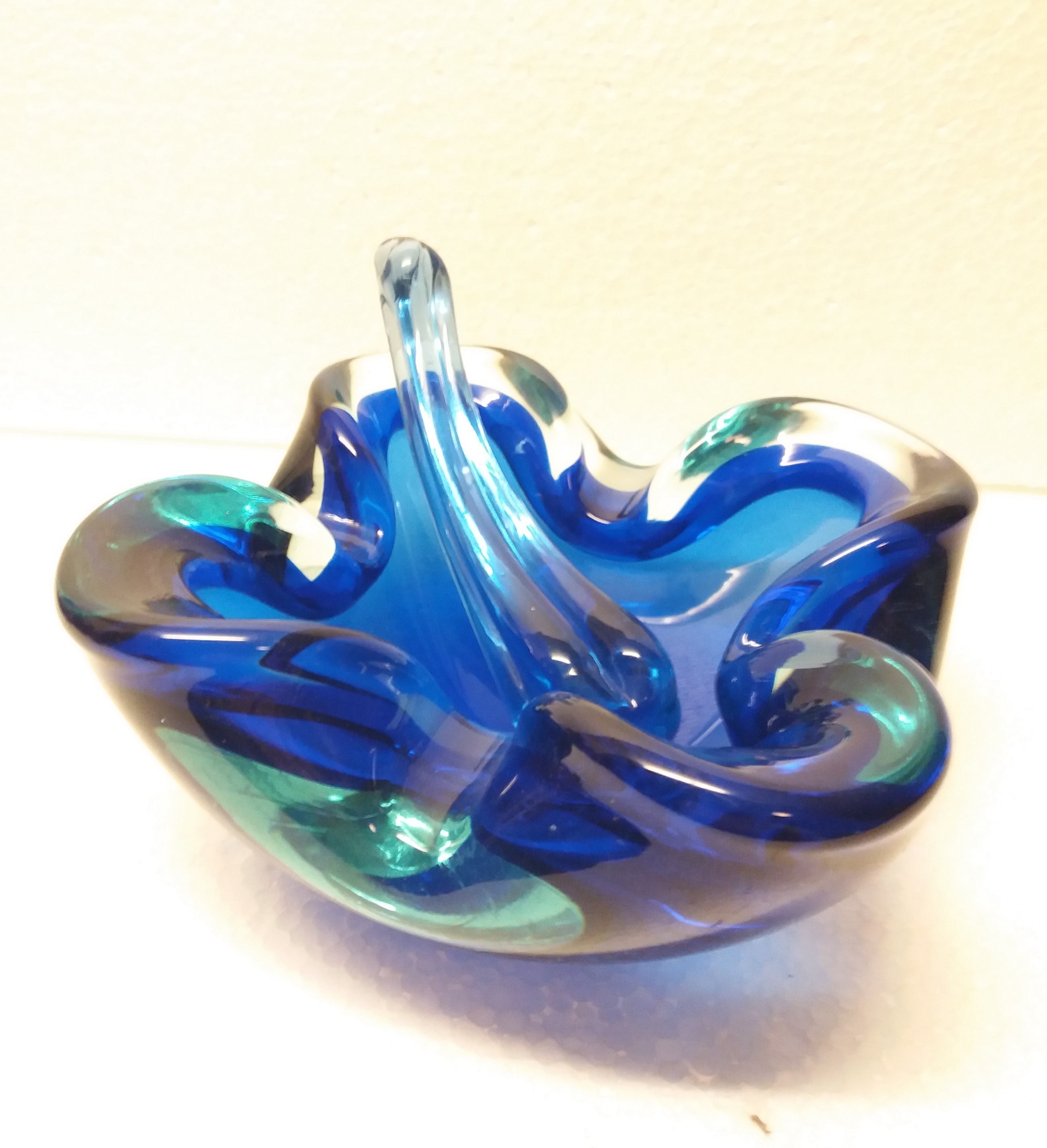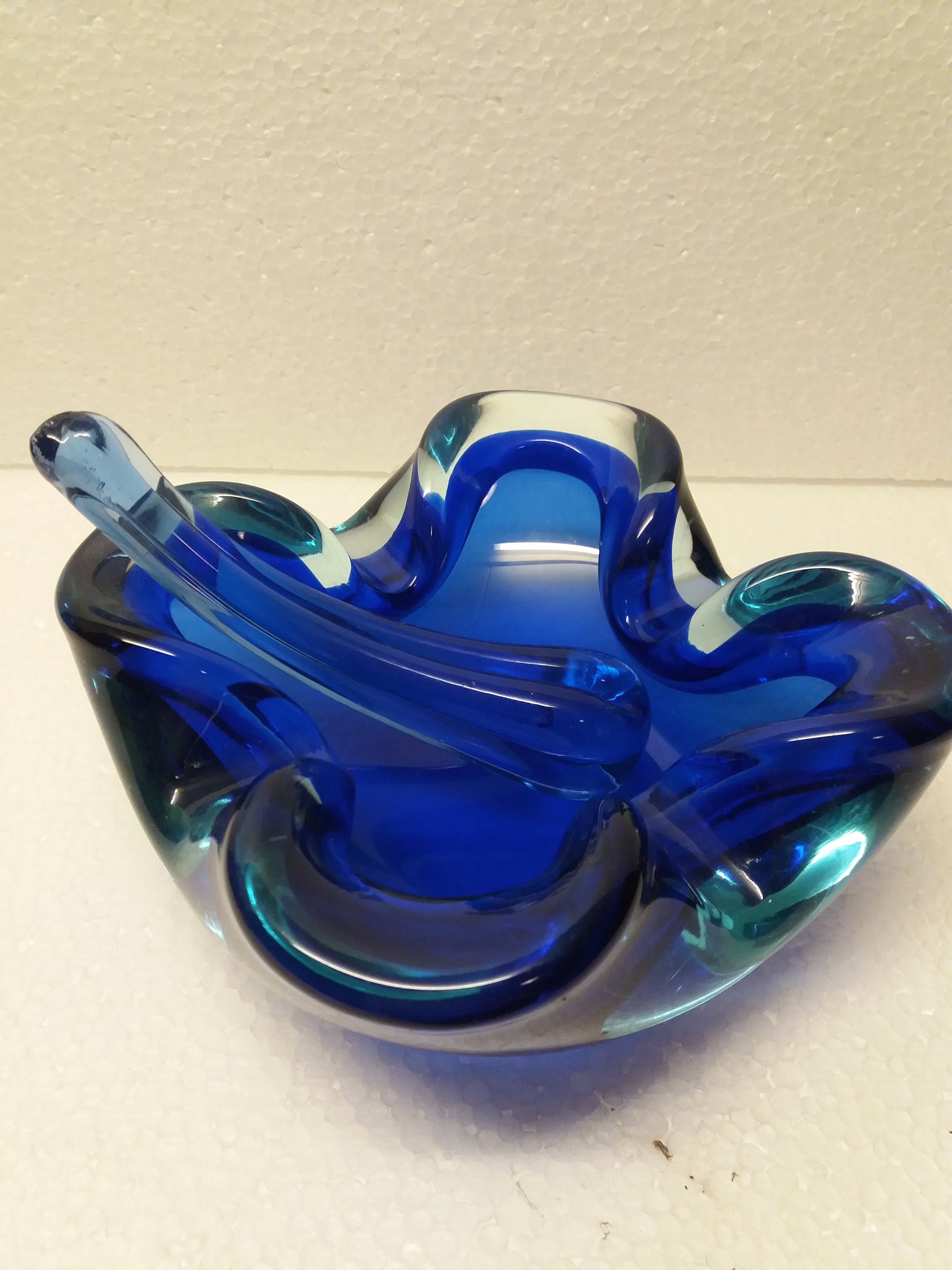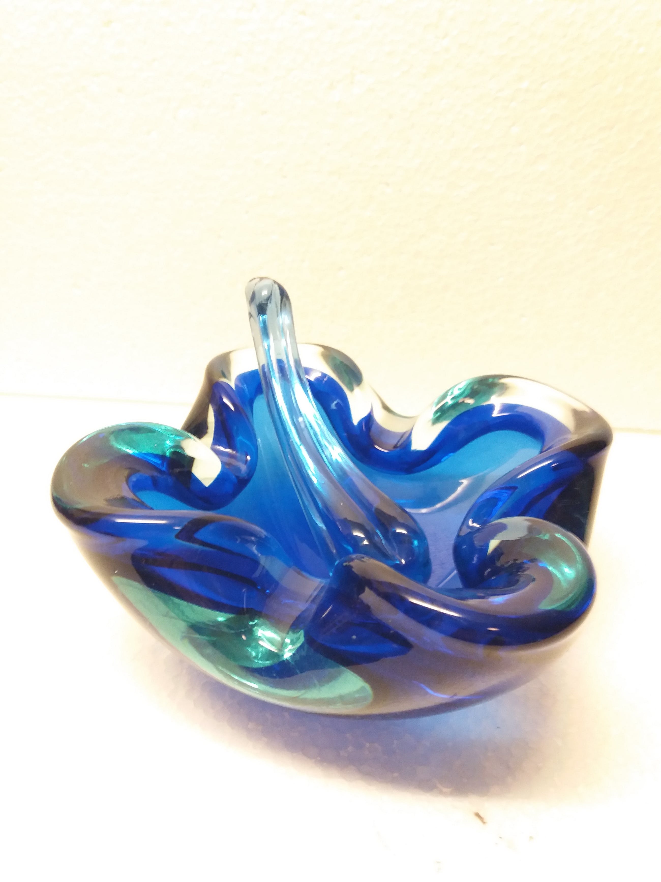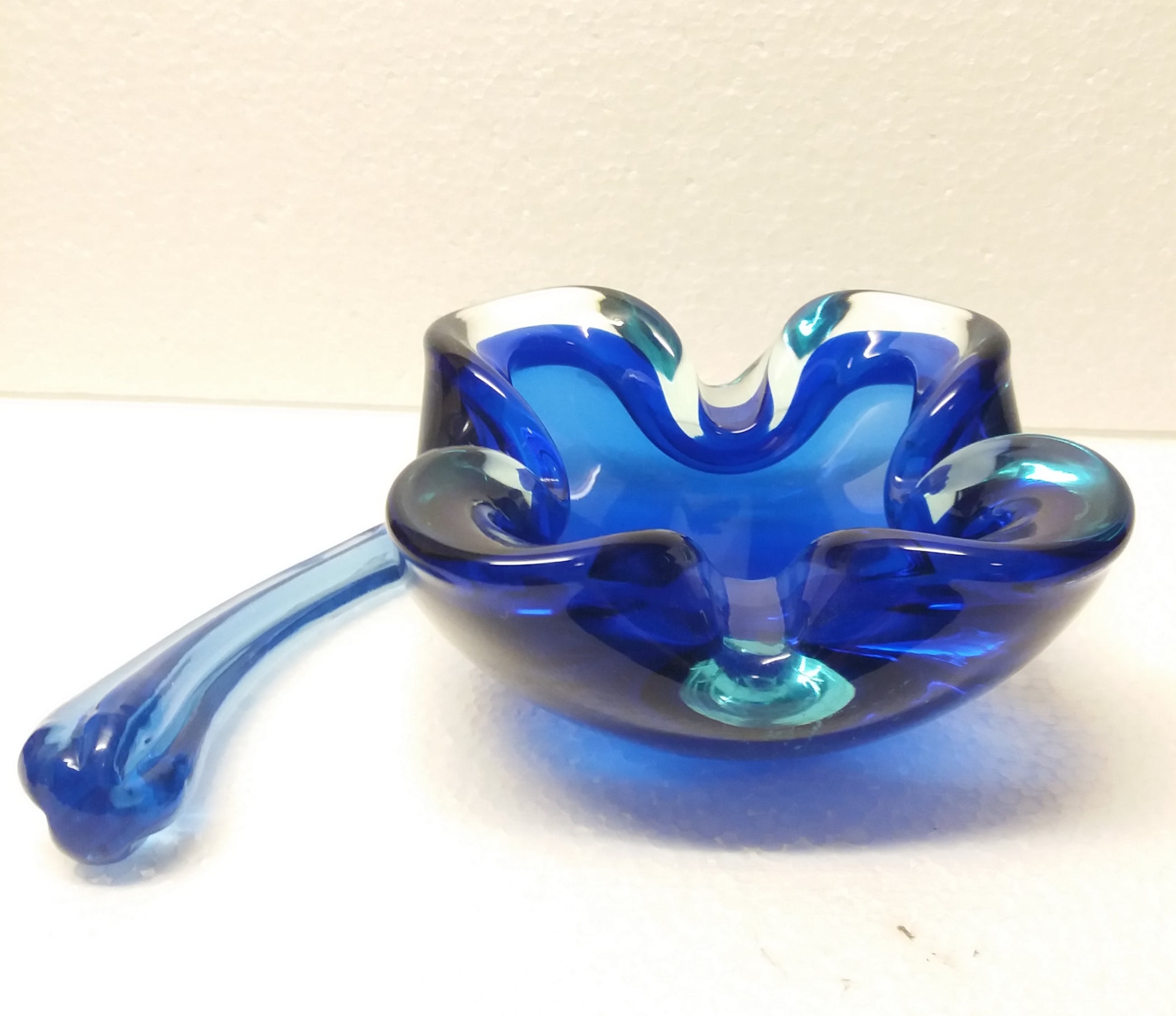 Mooie glazen asbak met stamper kobalt blauw uit jaren '60 signatuur onleesbaar wel 1964 zie je staan