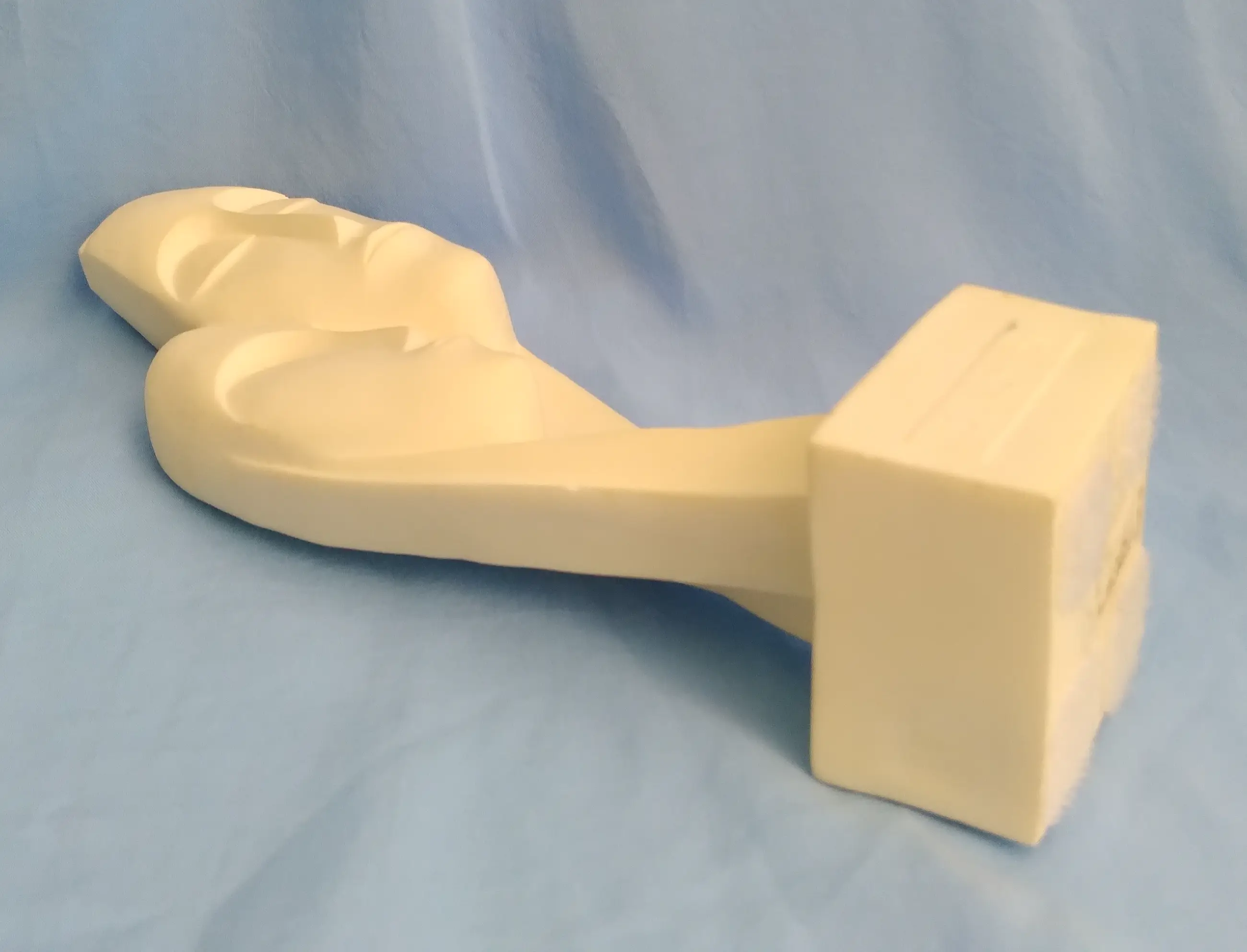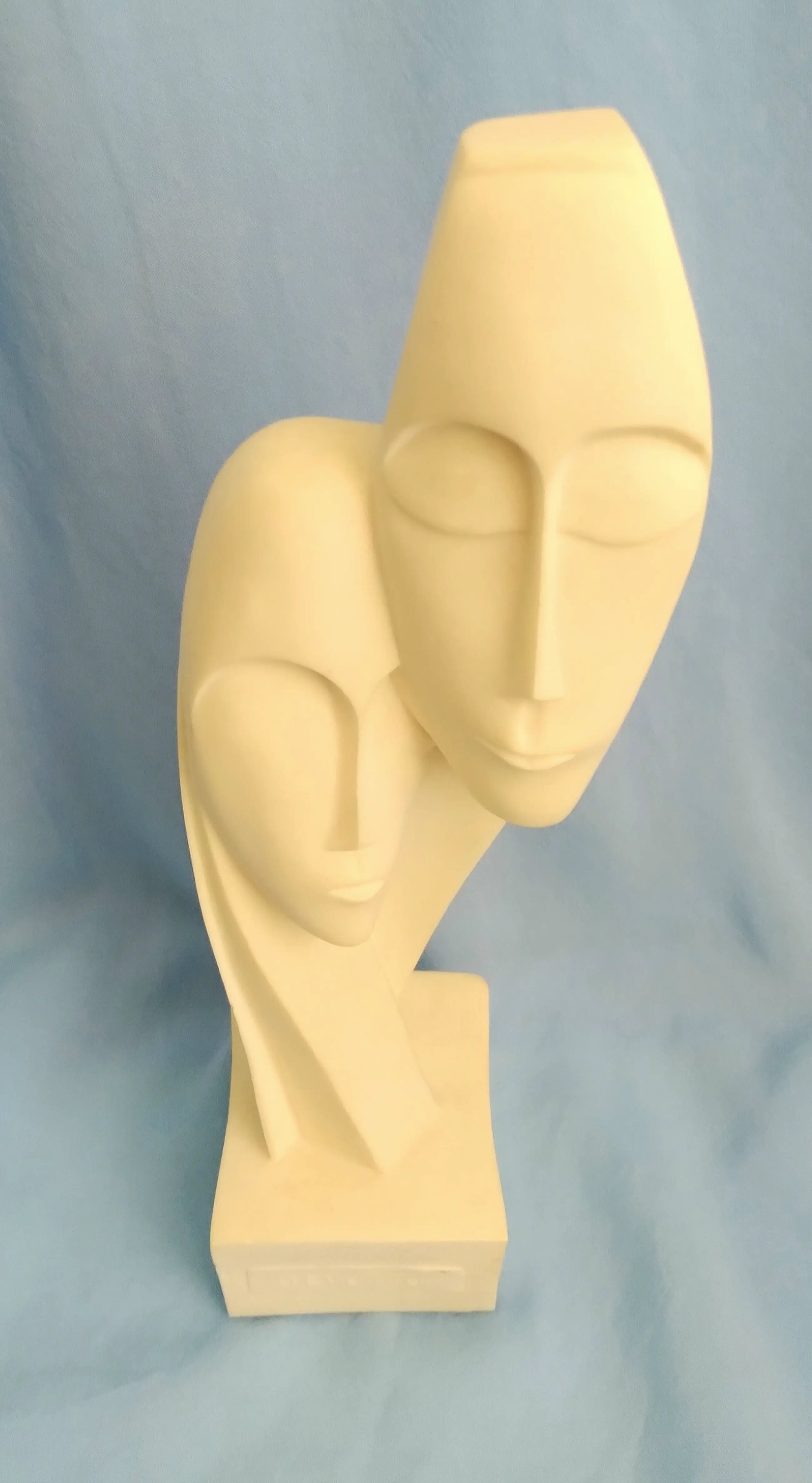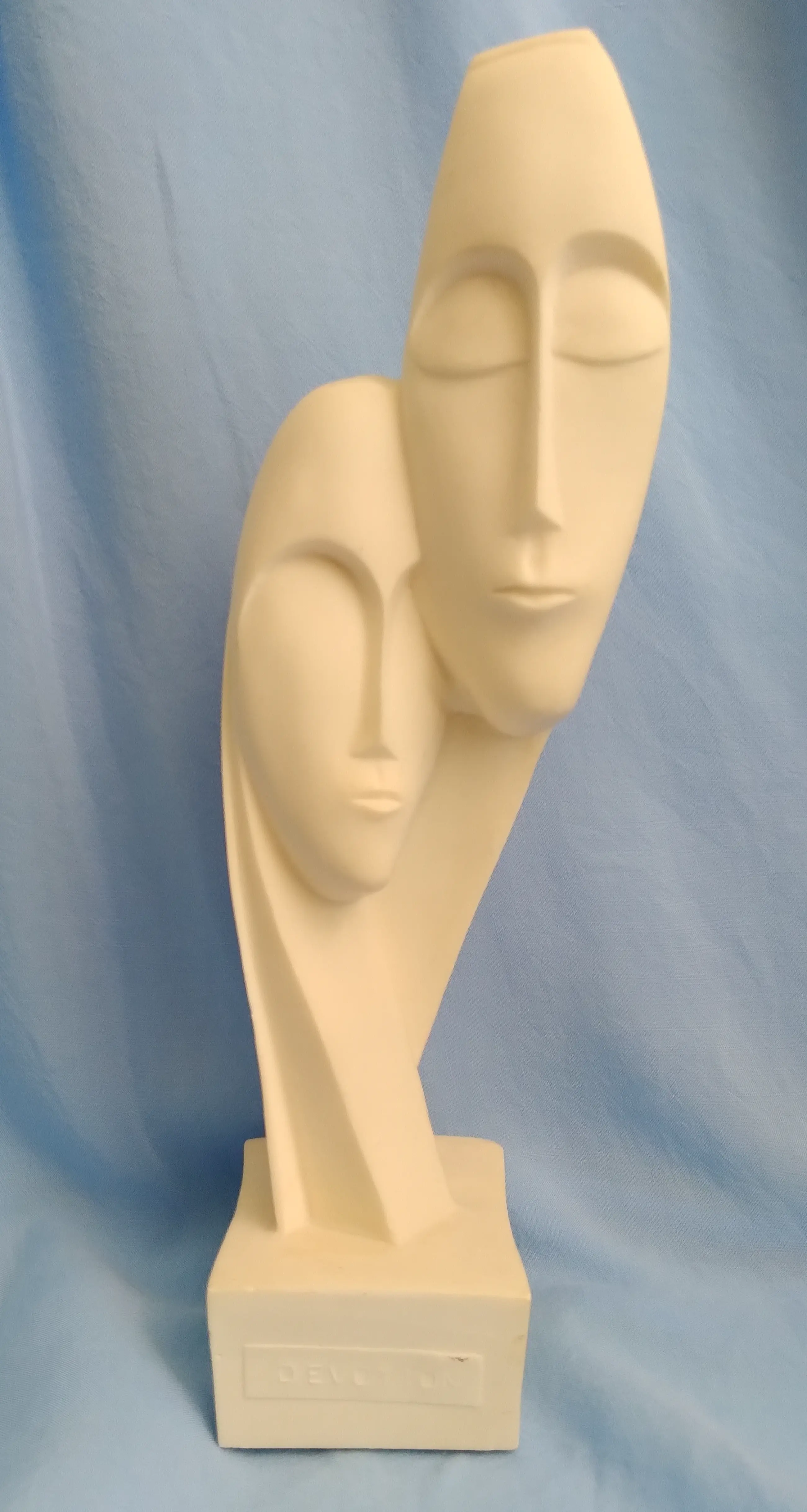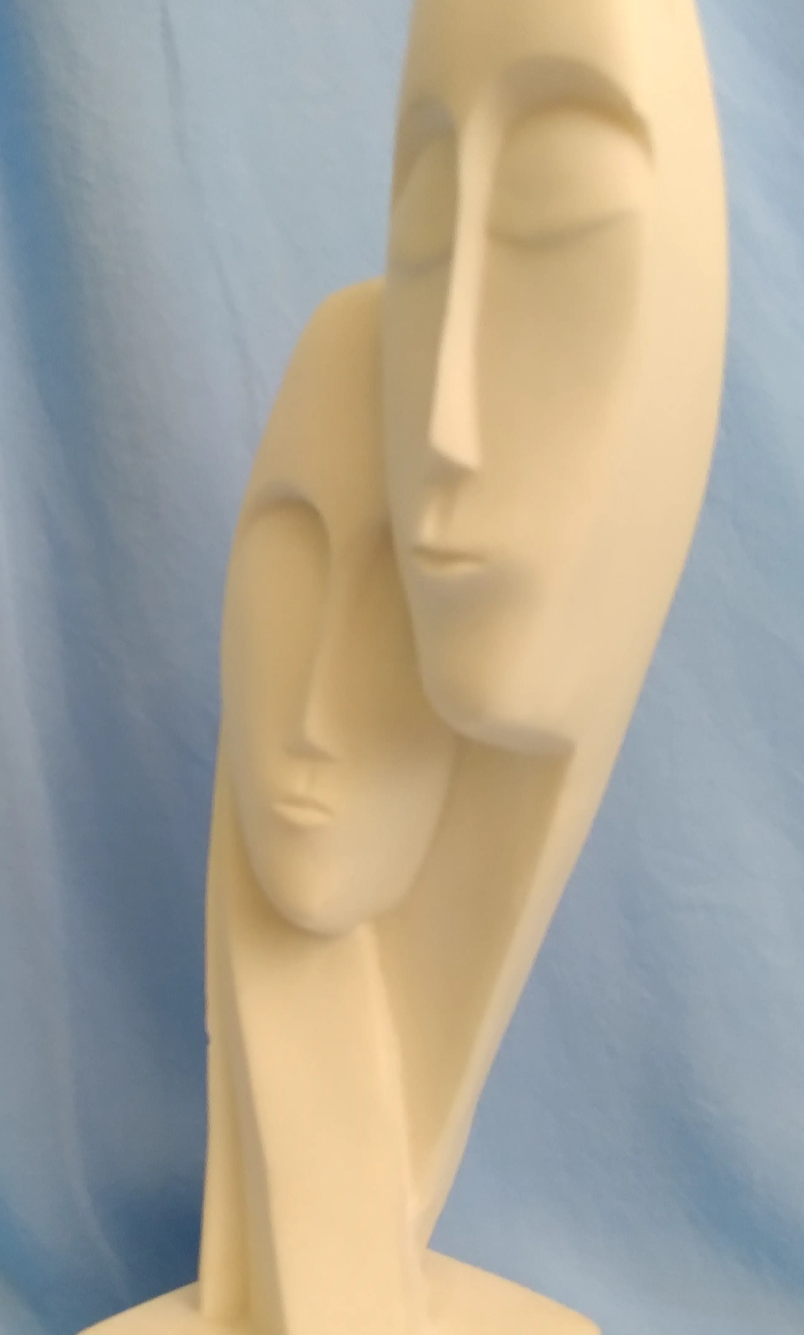 Ontroerend beeld van toewijding. Gemaakt van albast (een geelachtig wit, vrij hard marmer. Het wordt ook oriëntaalse albast genoemd omdat het al in de oudheid bewerkt werd in het Midden-Oosten).
