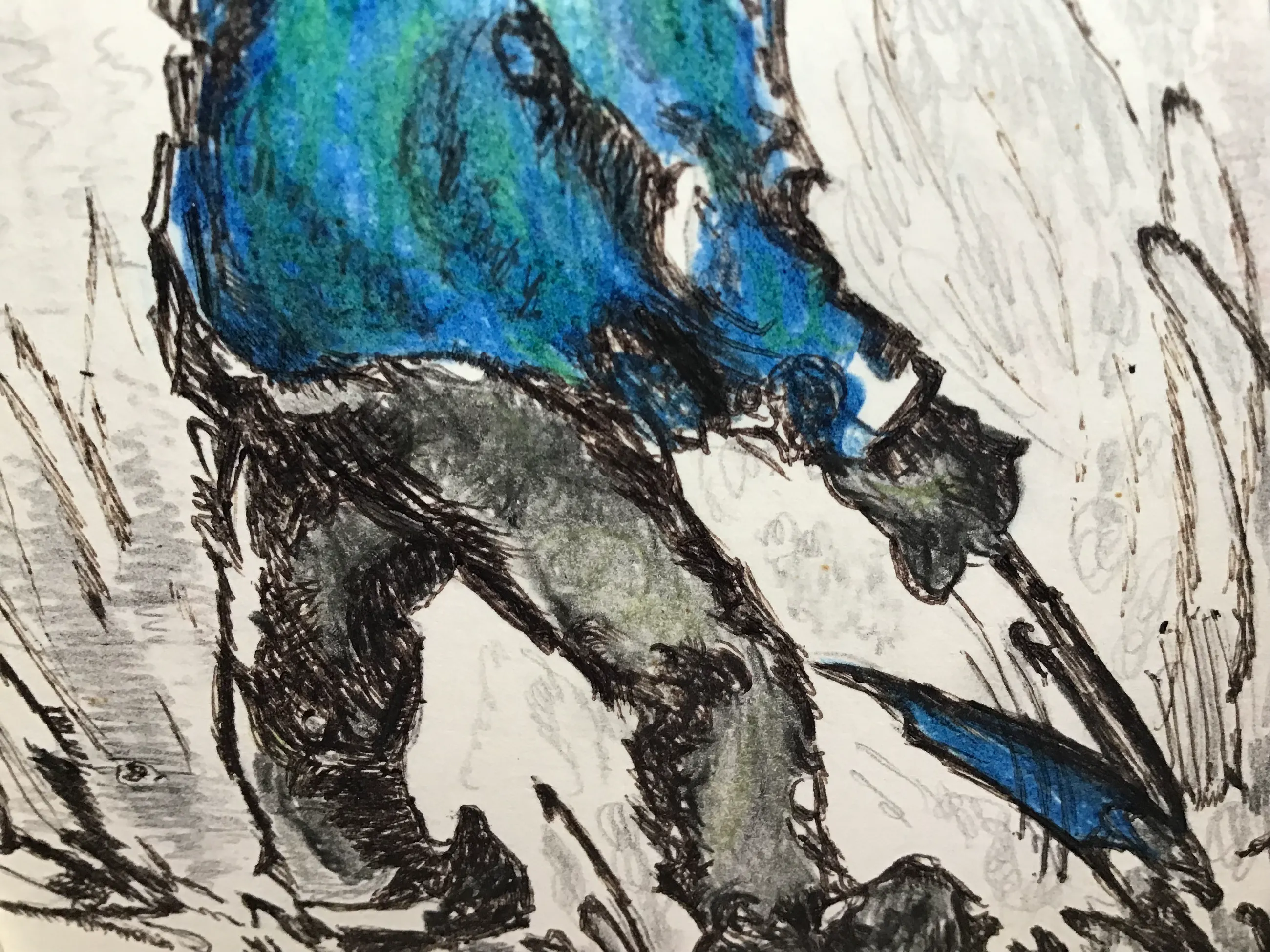 Potloodtekening. Expressief. Lijkt geïnspireerd door bv. Van Gogh.