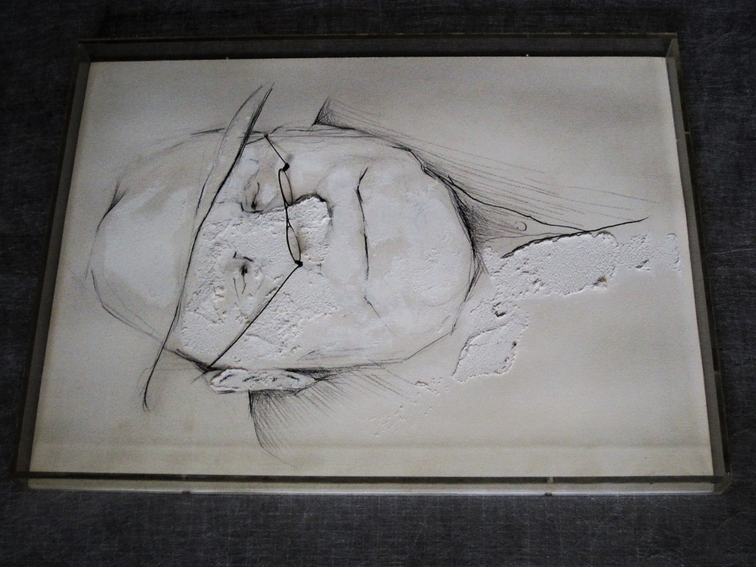 Medium / Techniek : gemengde (materie) techniek op paneel en in perspex box