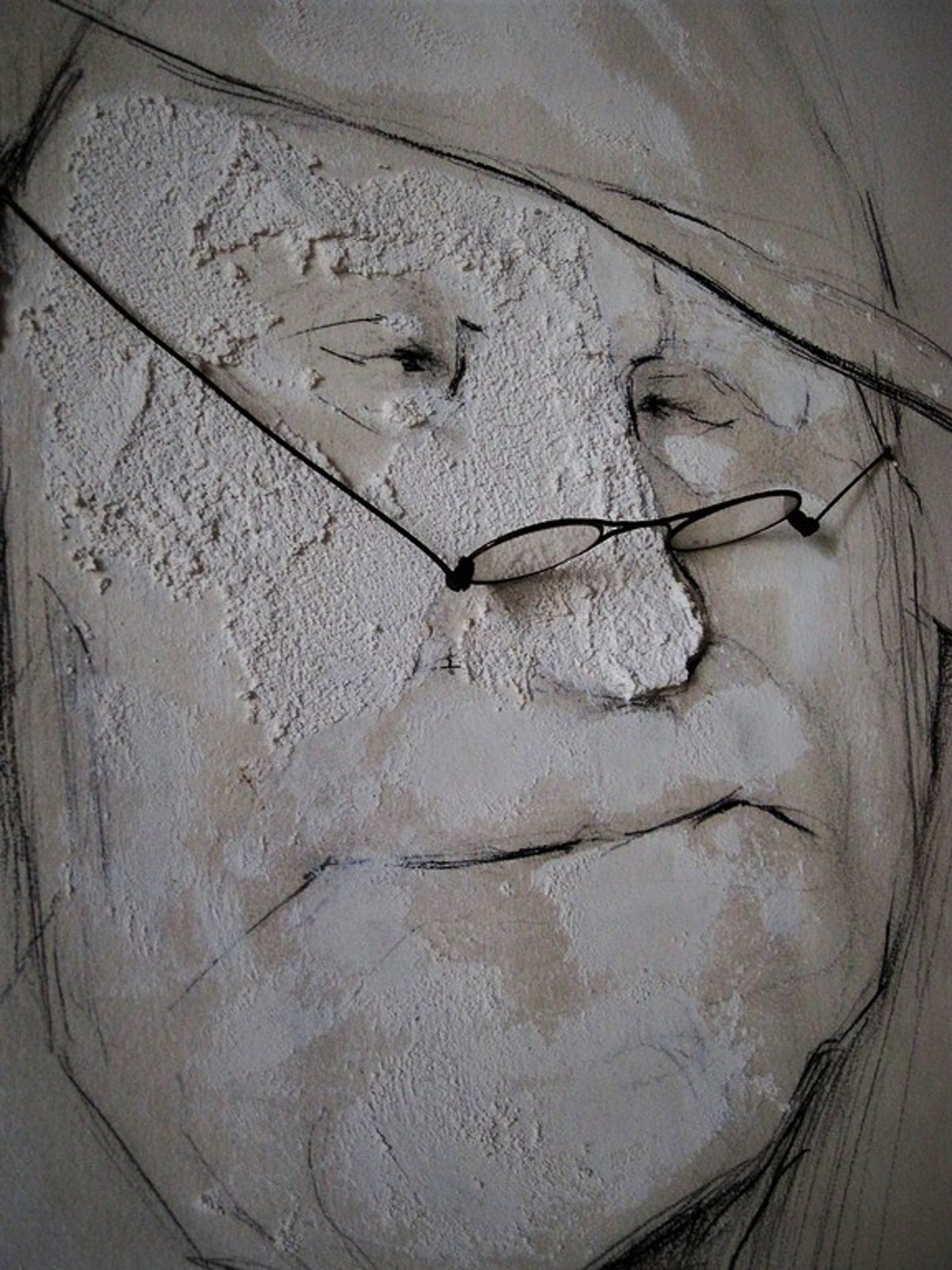 Titel/Voorstelling : " portret van oudere man met (echte) bril "