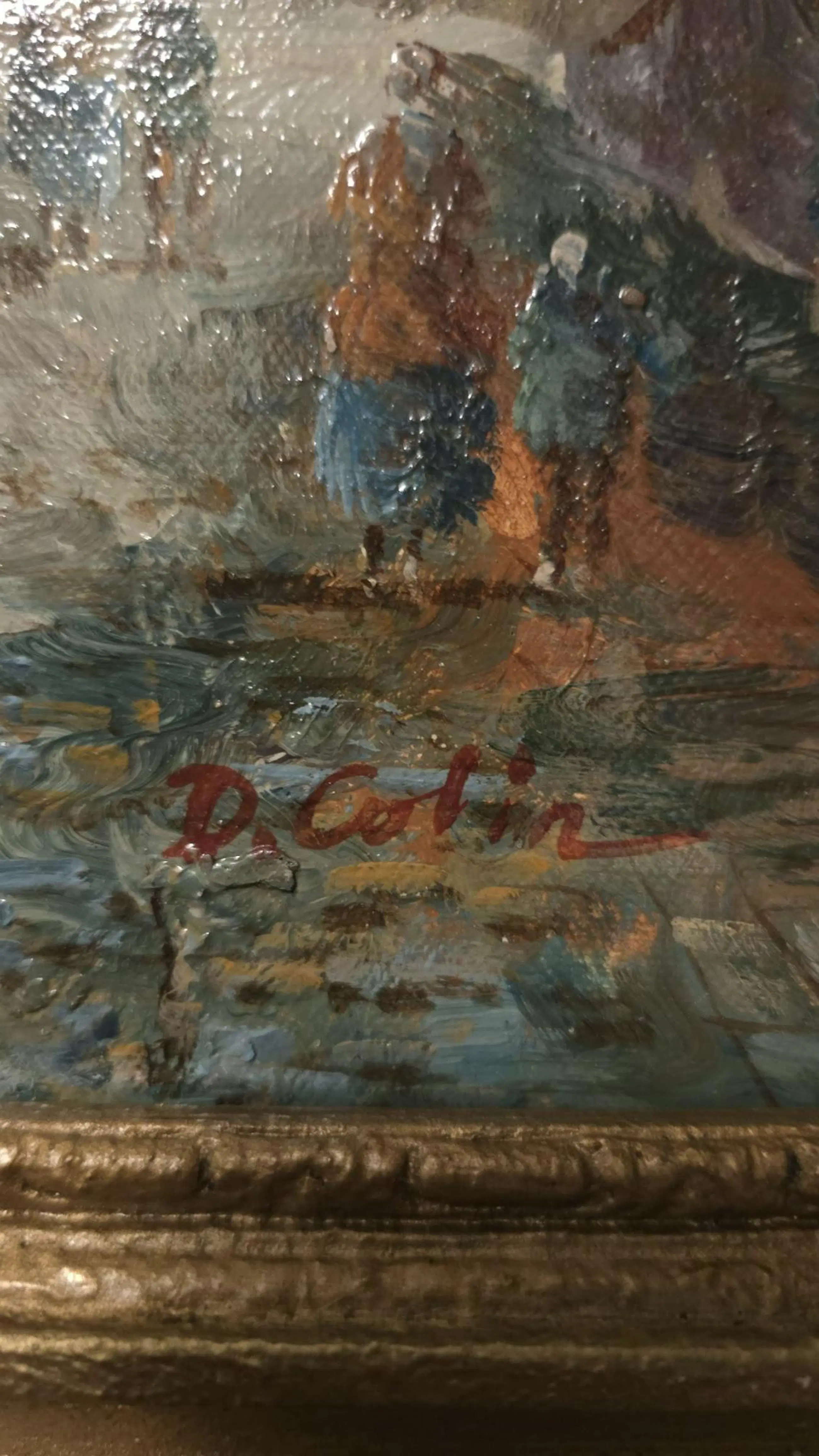Dit schilderij van D. Colin is een prachtig voorbeeld van hoe een klassiek onderwerp met een moderne, impressionistische flair kan worden geschilderd. Door het warme kleurgebruik en de levendige compositie is dit een echte blikvanger die zowel in een klassiek als in een modern interieur tot zijn recht komt.