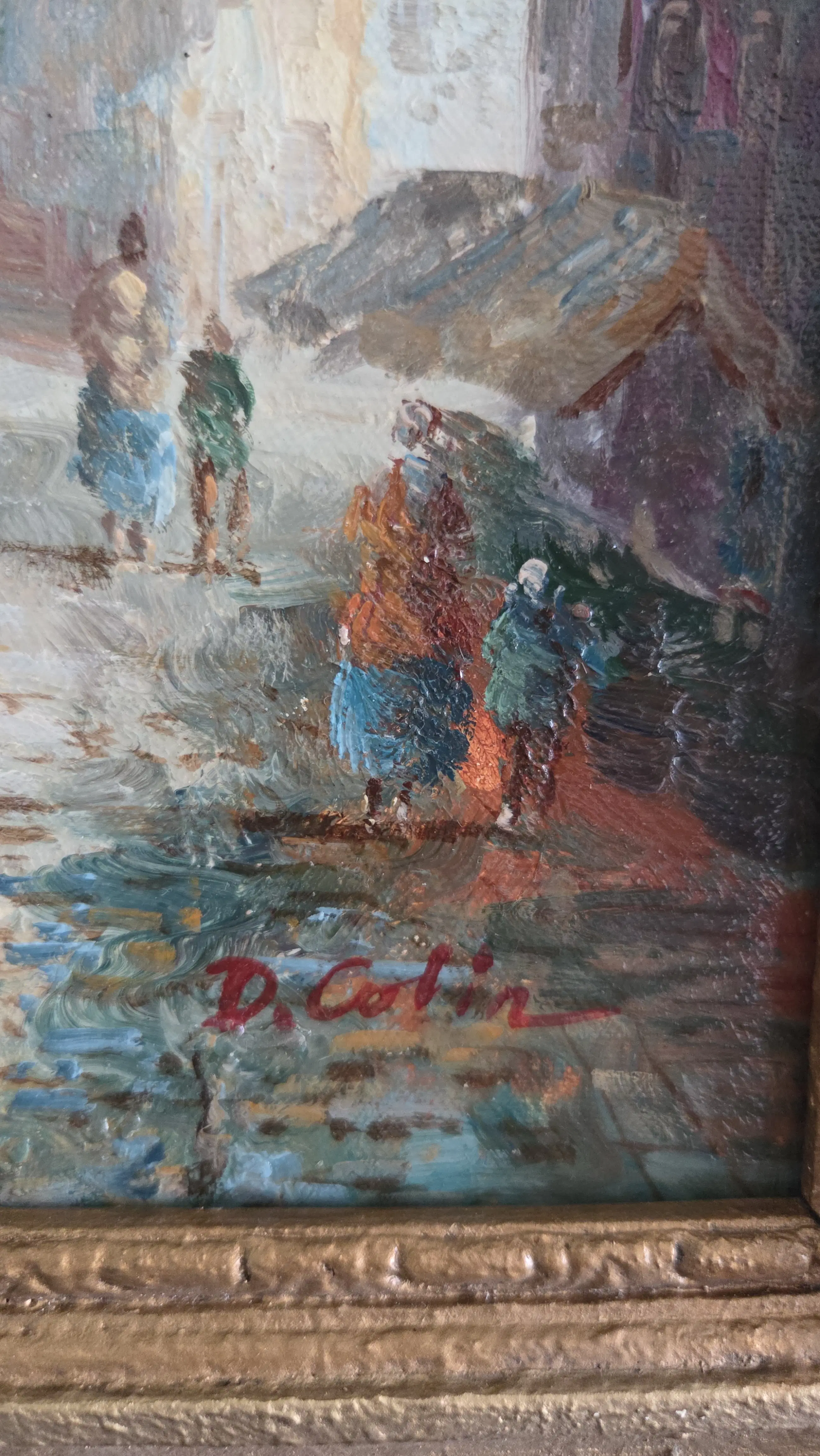 Levendig Impressionistisch Straatbeeld – D. Colin – Olieverf op paneel