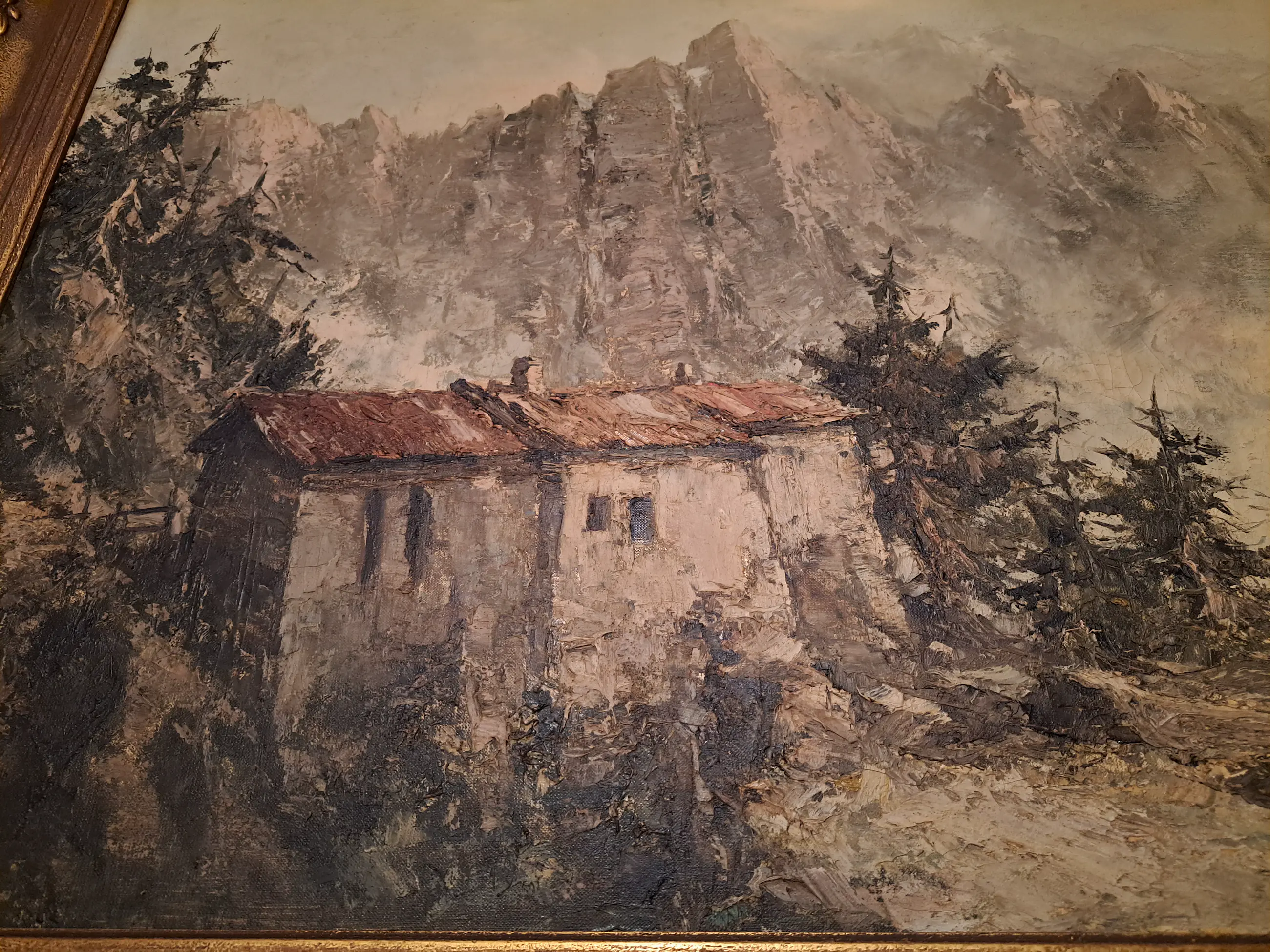 Mooie weergave van een oud huis met bergen op de achtergrond