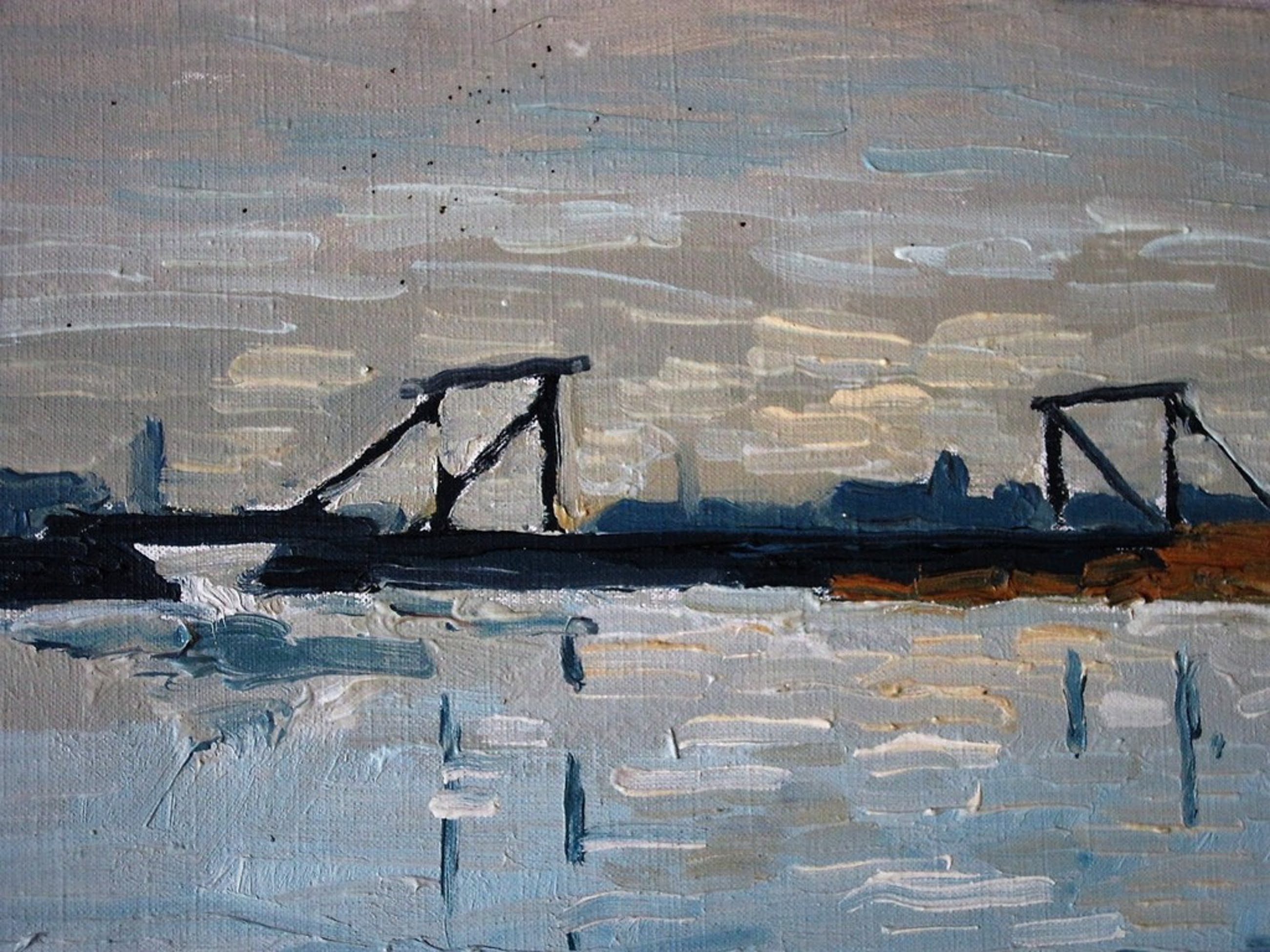 Titel/Voorstelling: " Spoorlijn over rivierenlandschap "