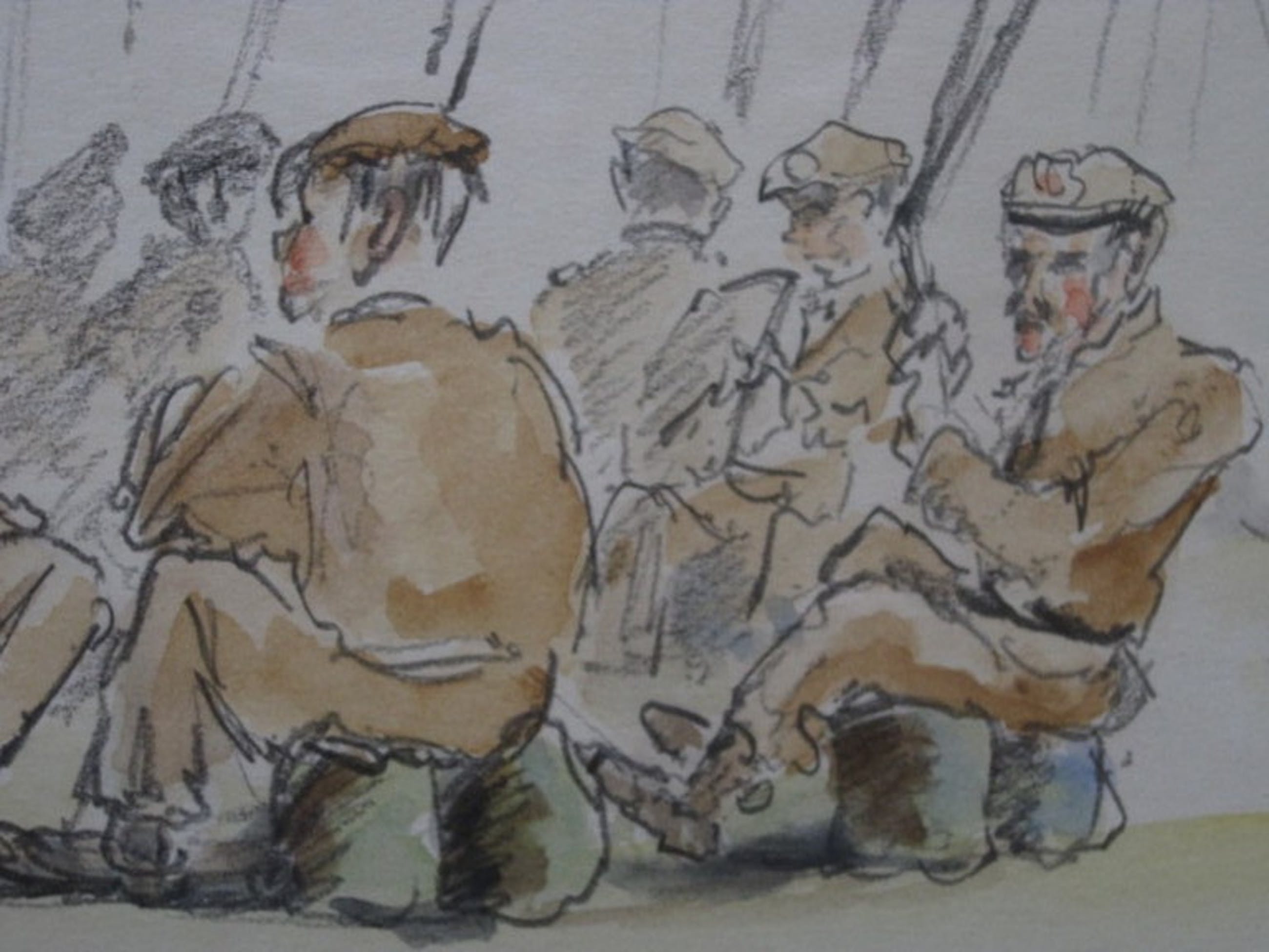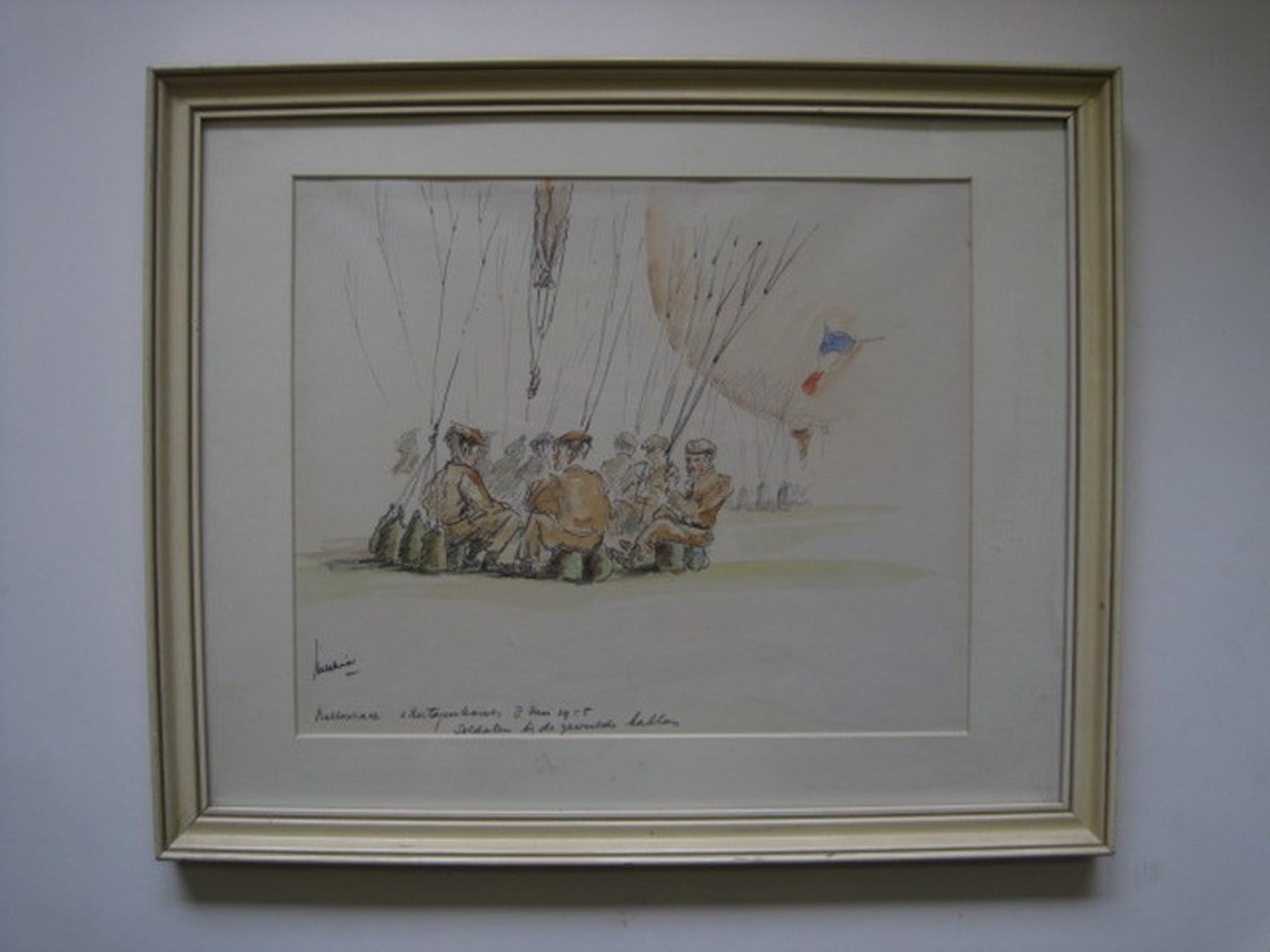 Onbekend - oude pasteltekening "Balonrace 's Hertogenbosch 8 mei 1955"onduidelijk gesigneer - Verkocht