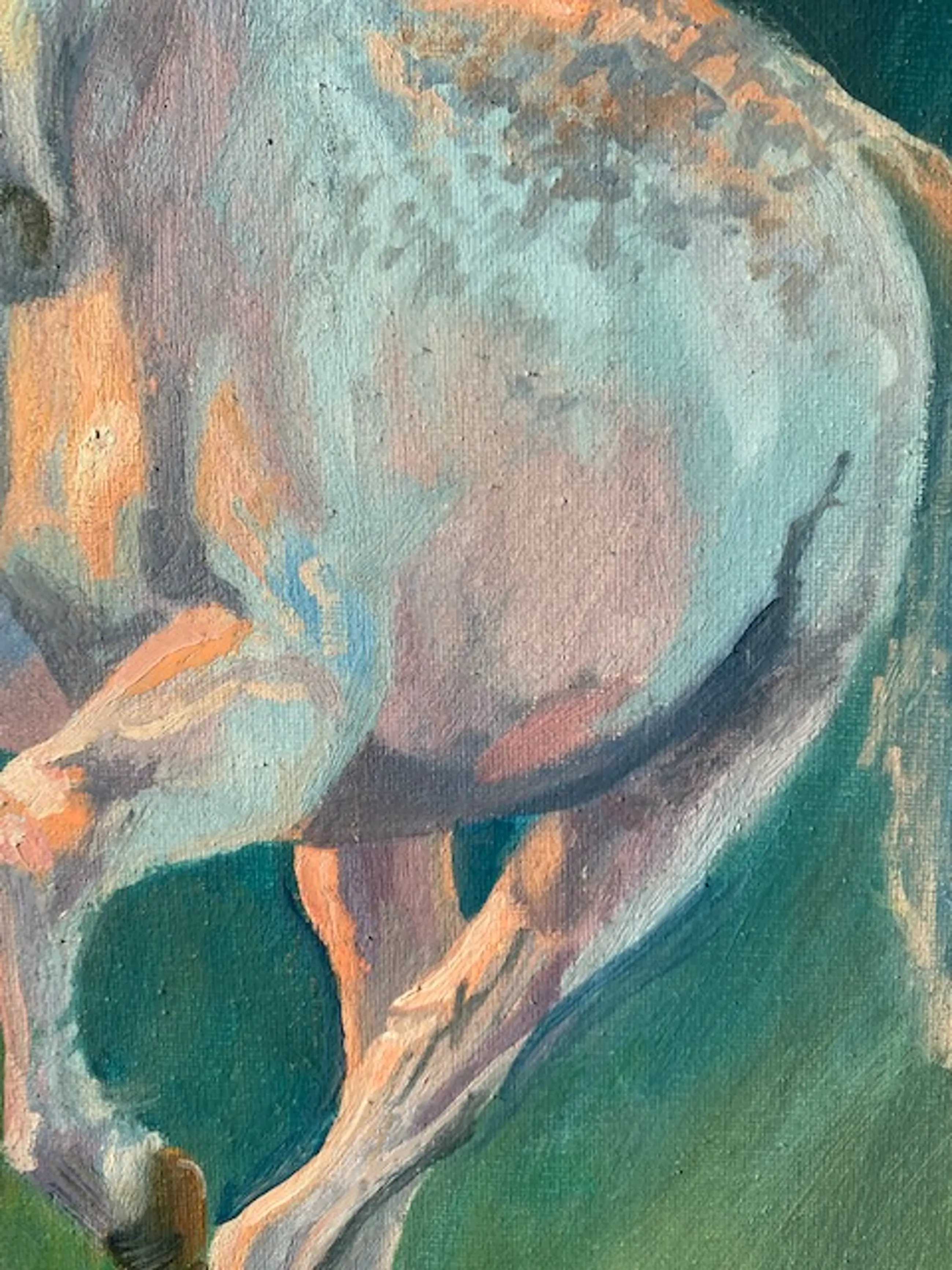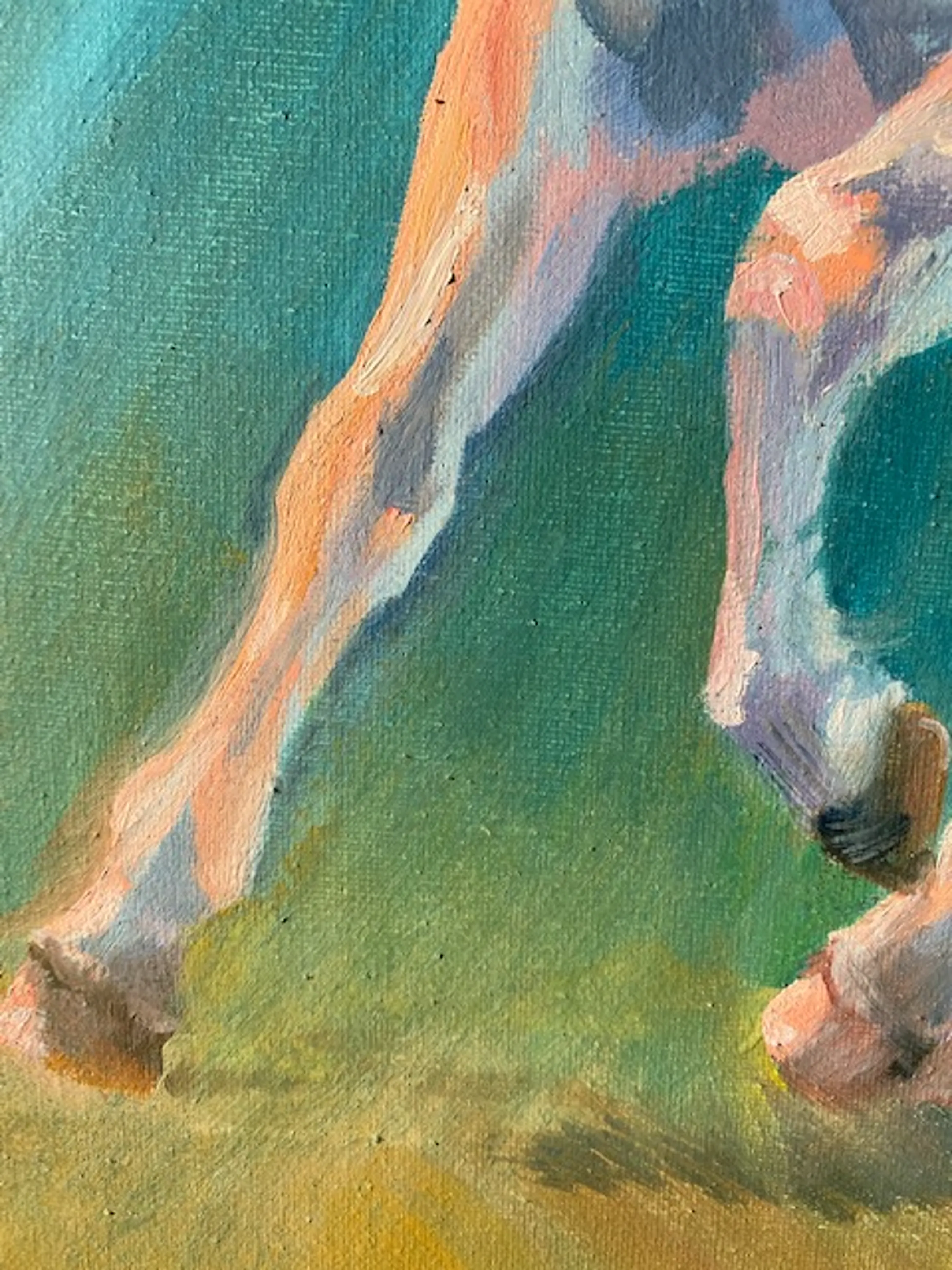 Het opgespannen doek (spieraam) toont als bijna nieuw. Het schilderij is niet ingelijst