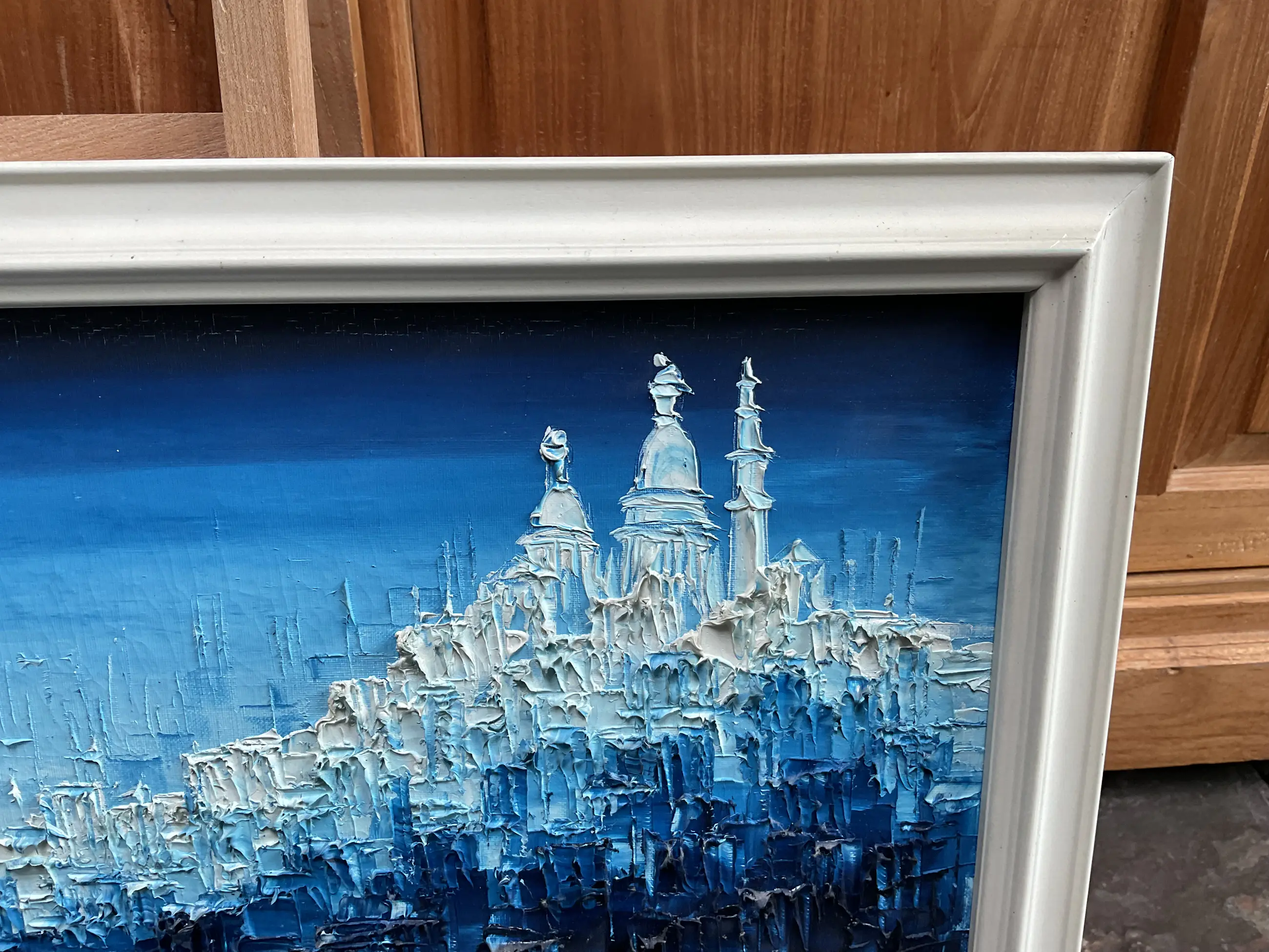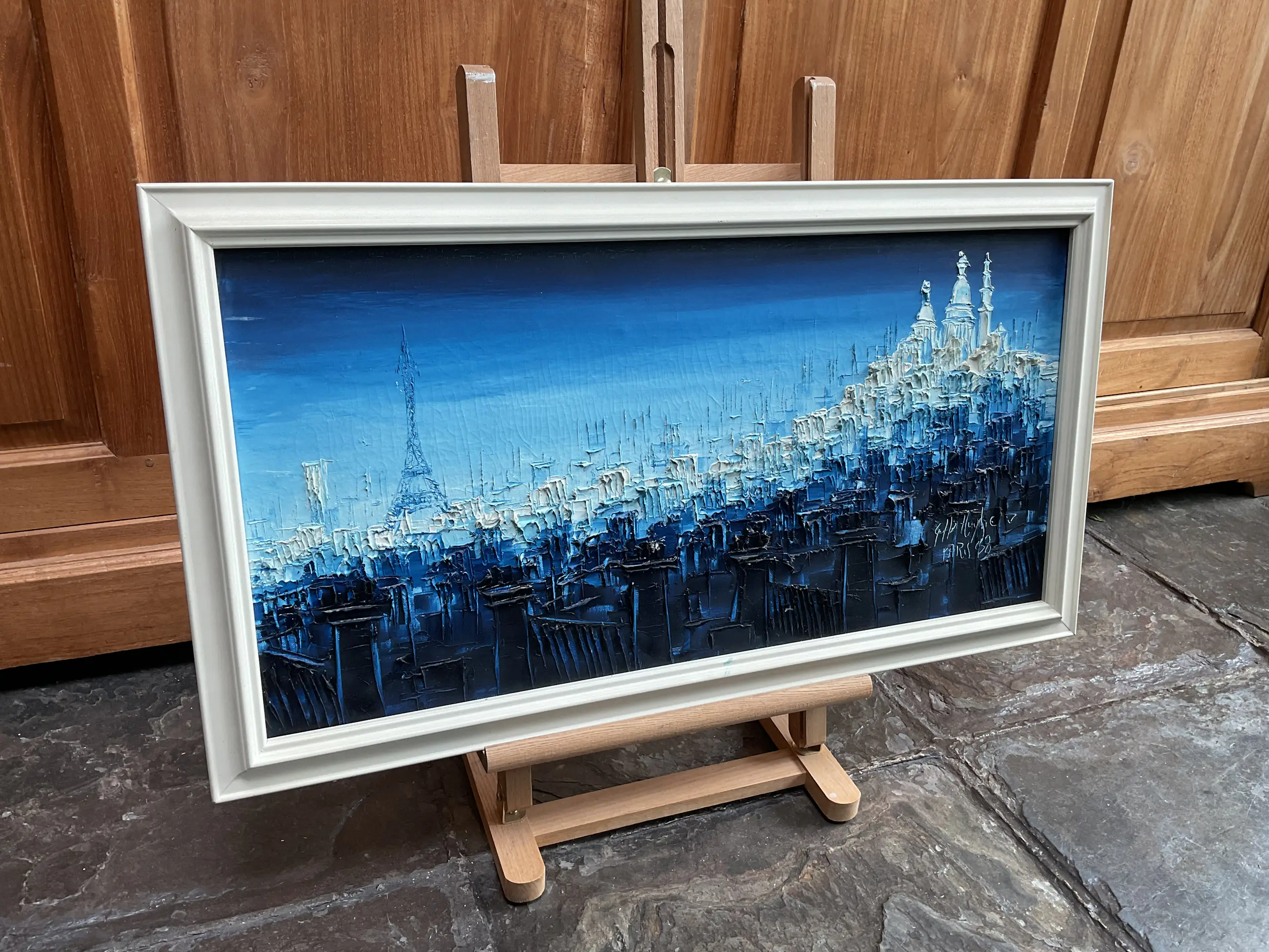 Zeer pasteus werk van de skyline van Parijs met enkele karakteristieke punten.