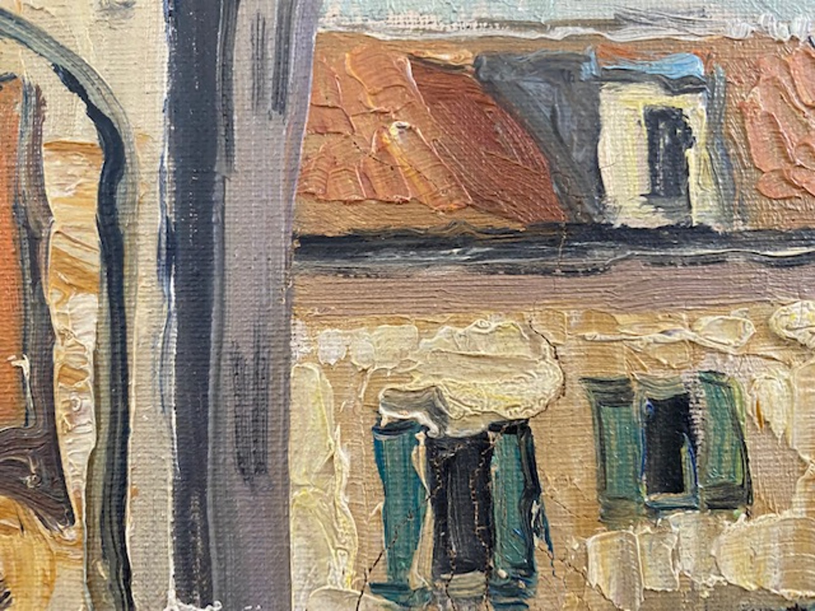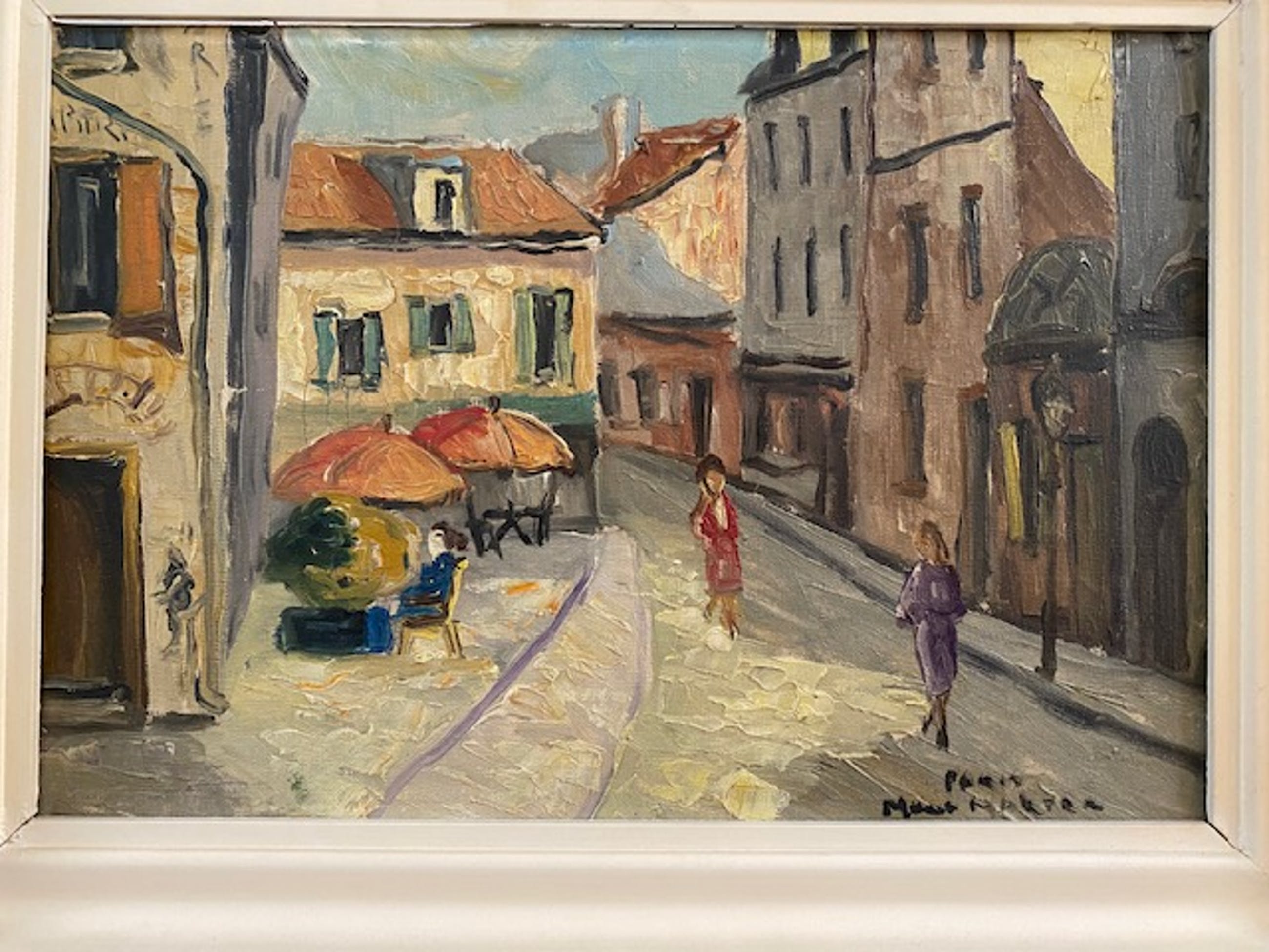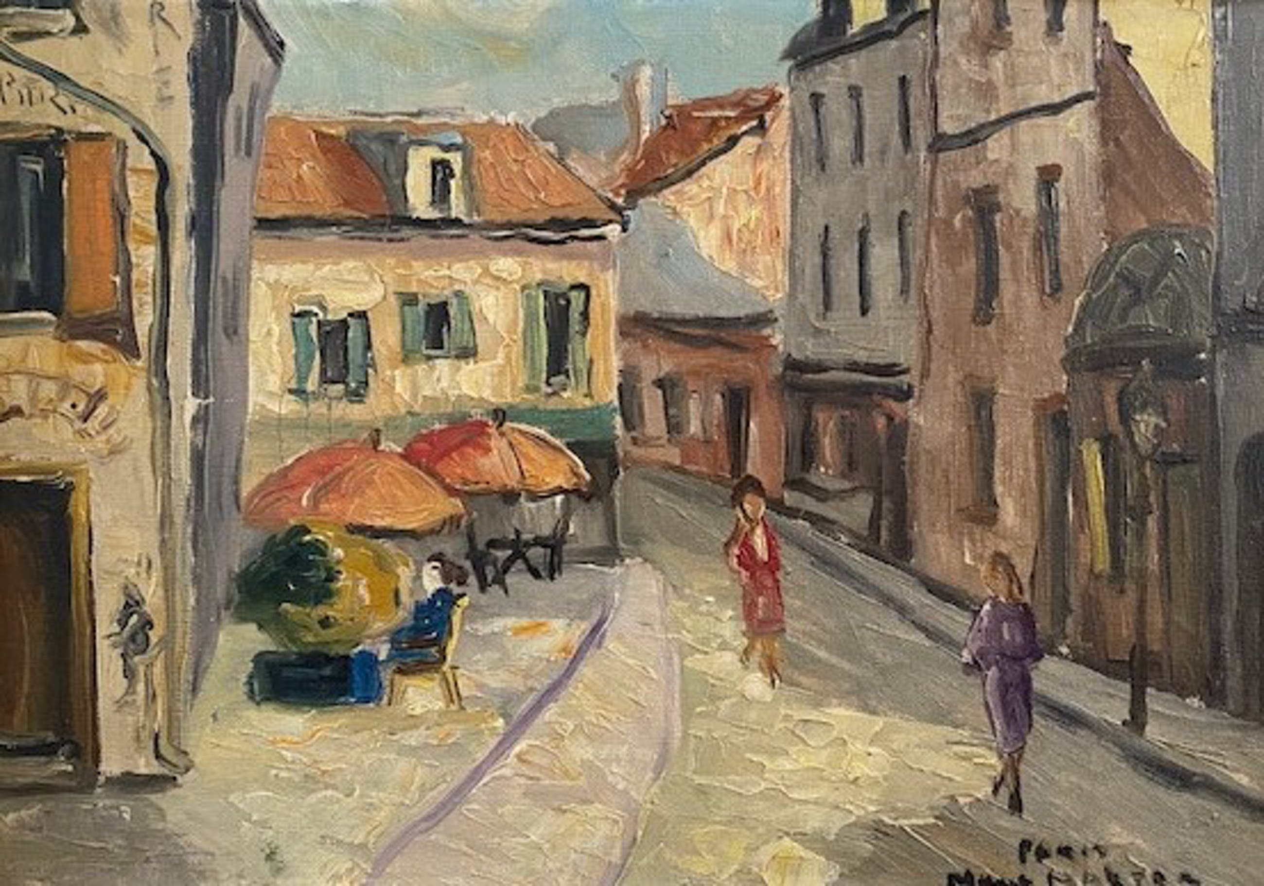 Het schilderij is gemaakt op een zeer bekend punt op een hoek van "Place du Tertre" in Parijs met een inkijk in Rue Norvins. Waarschijnlijk in de vijftiger jaren van de vorige eeuw toen ook dit heden ten dage door kunstenaars en toeristen geliefde pleintje nabij de sacre coeur nog zijn authenticiteit verraadde.