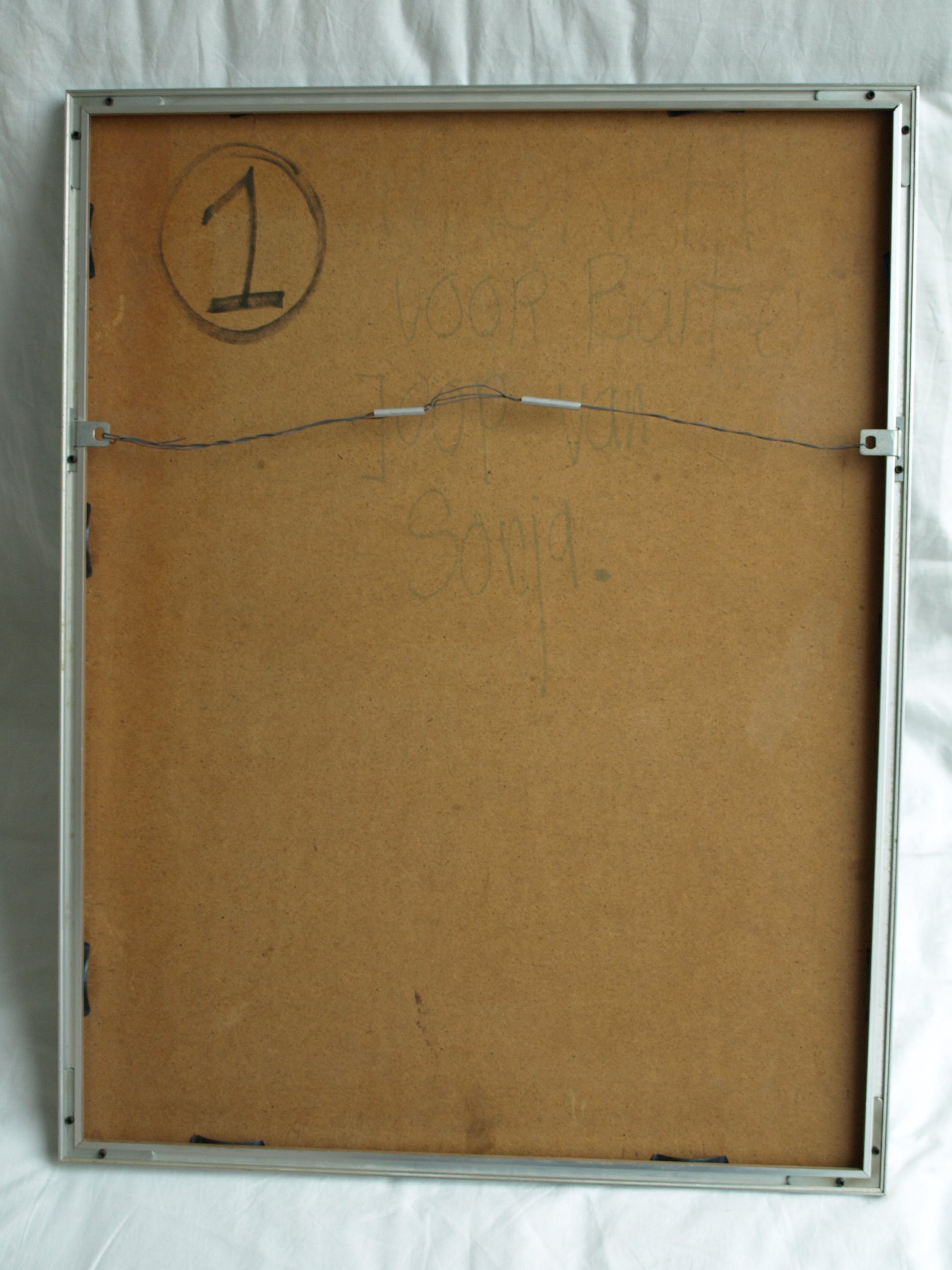 -Niet gesigneerd. Op de achterkant staat geschreven: "Voor Bart en Joop, van Sonja".