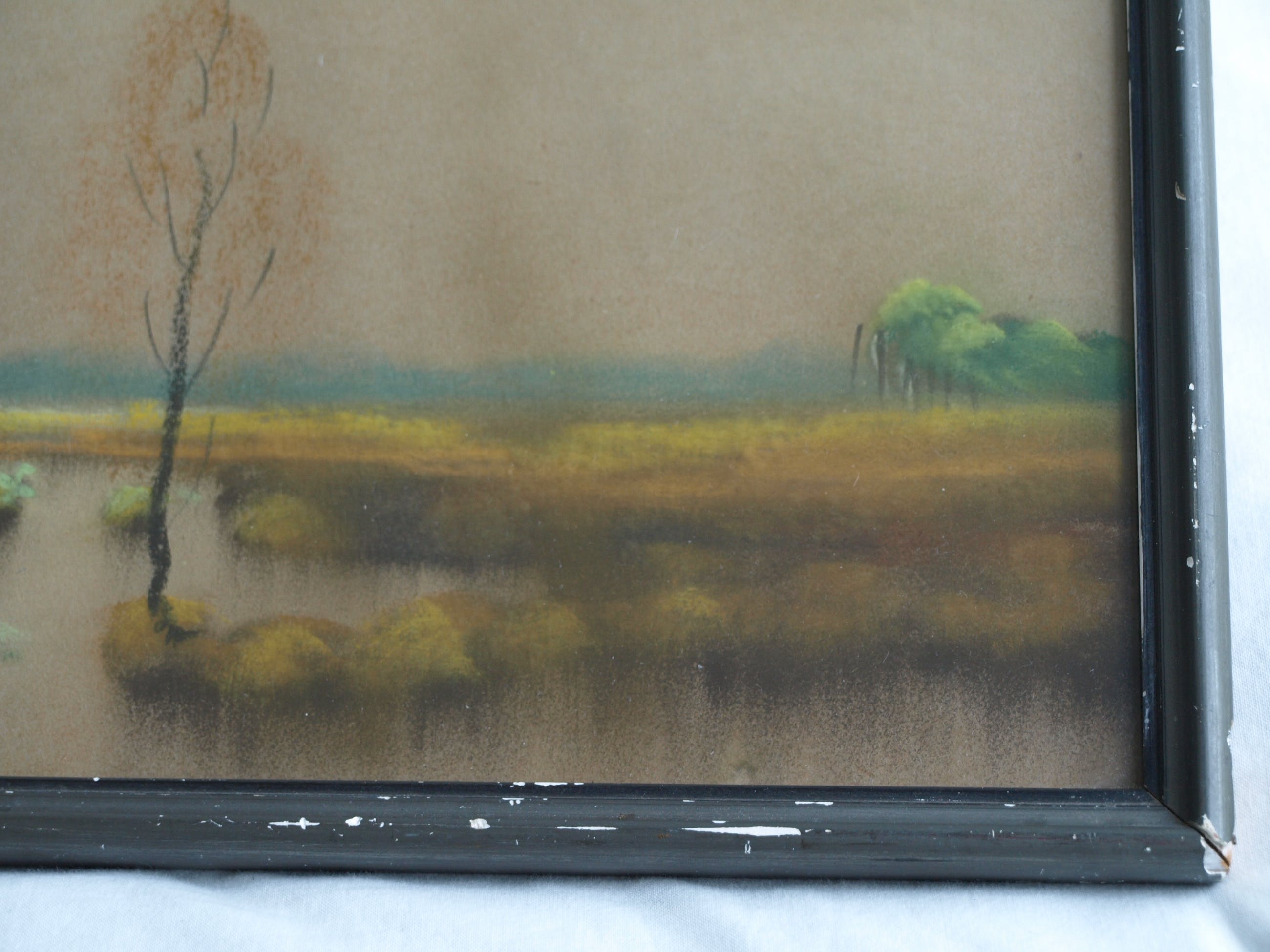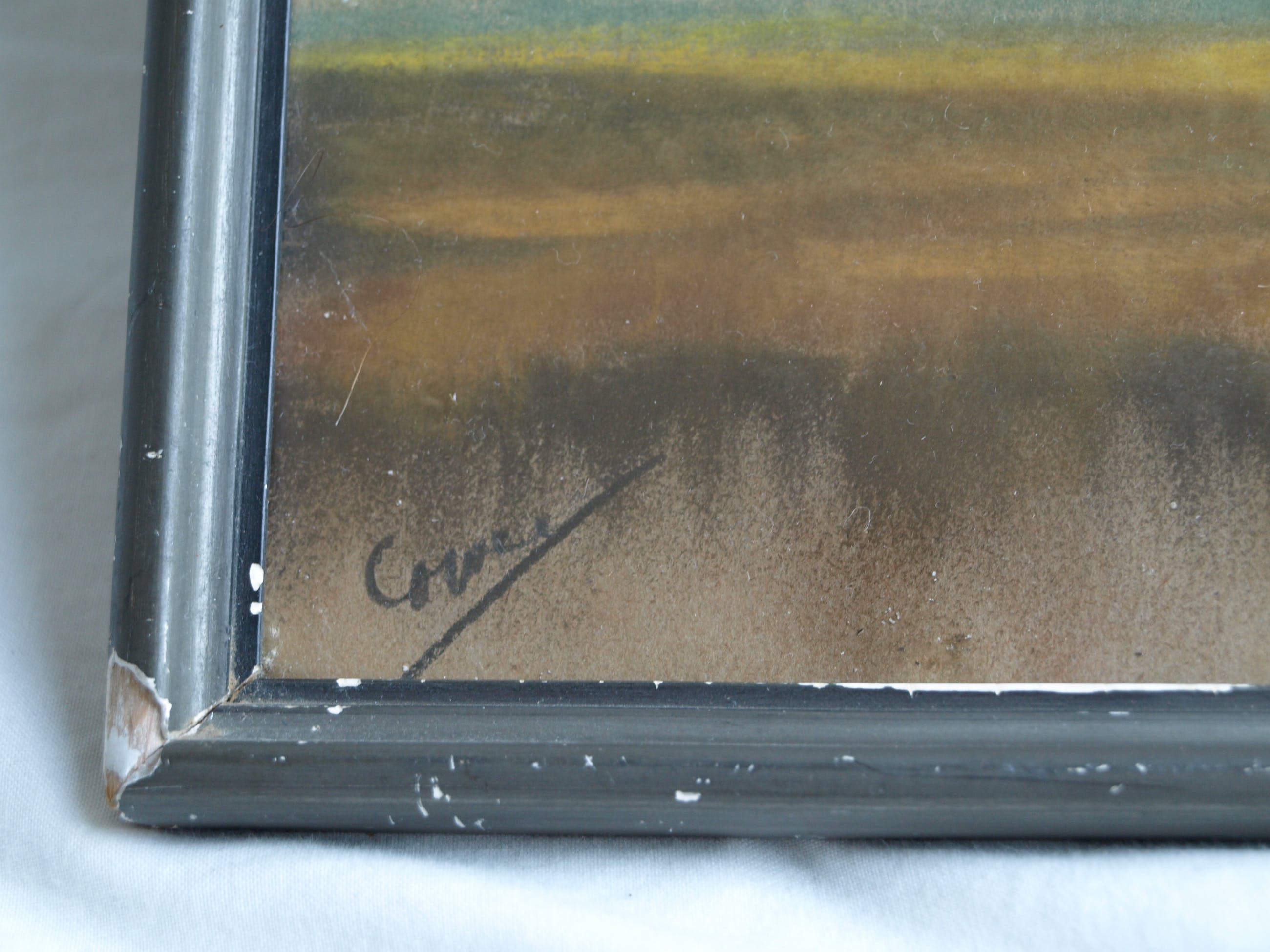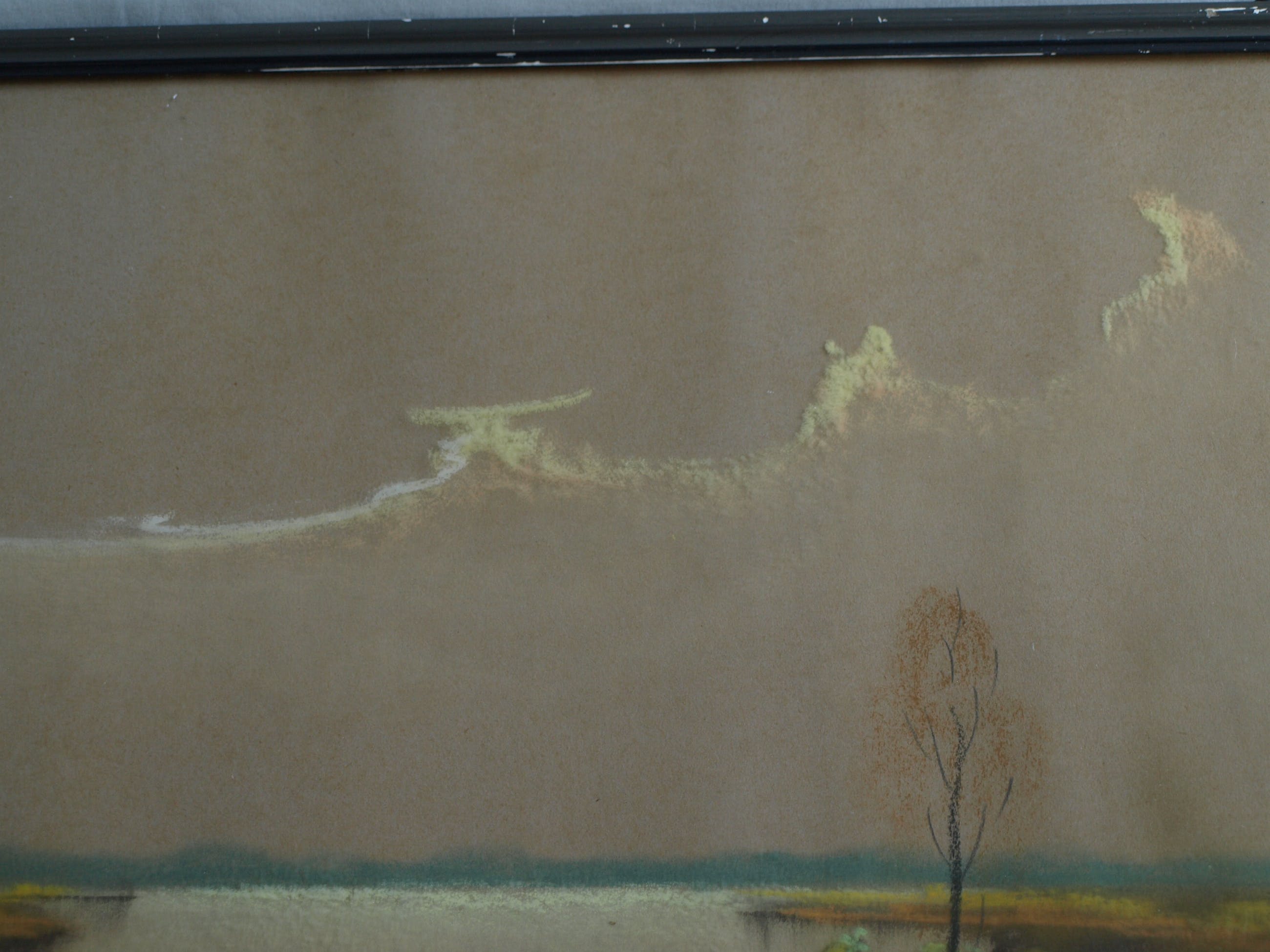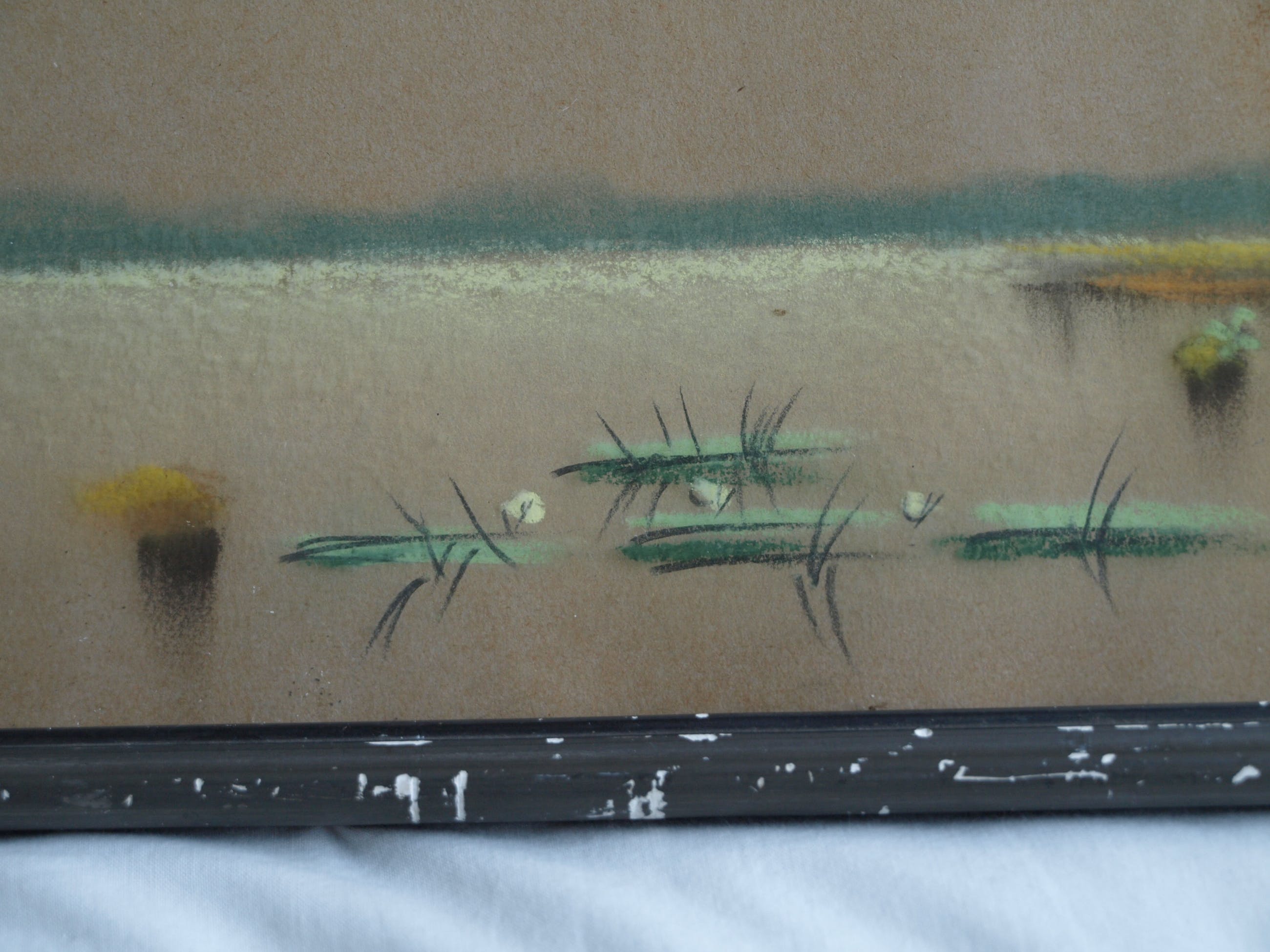 -Conditie: De pasteltekening is in redelijk goede staat. De lijst heeft beschadigingen
