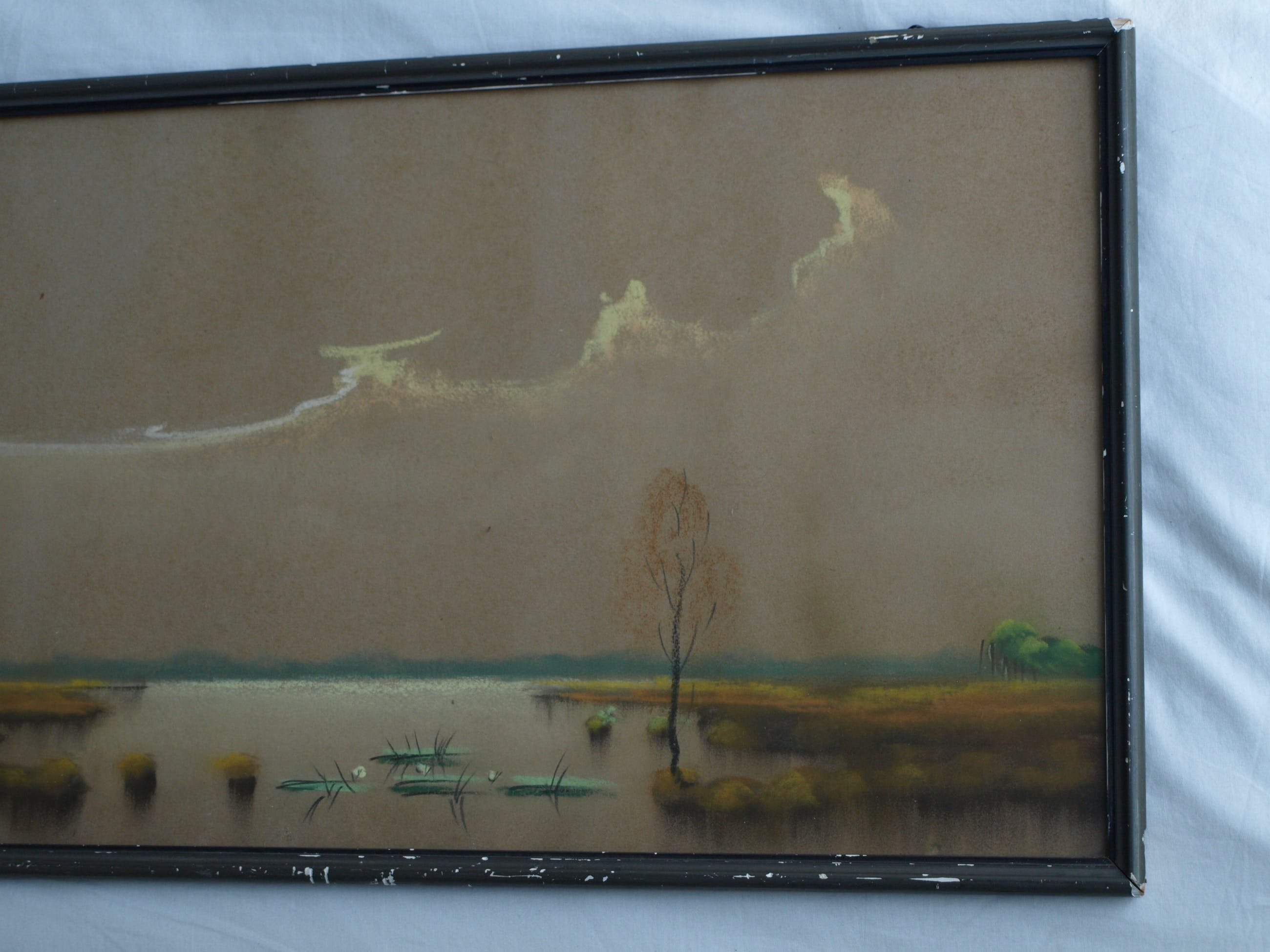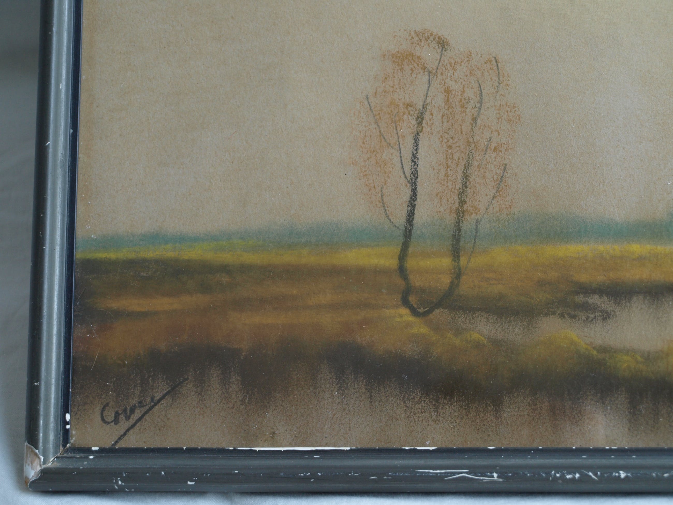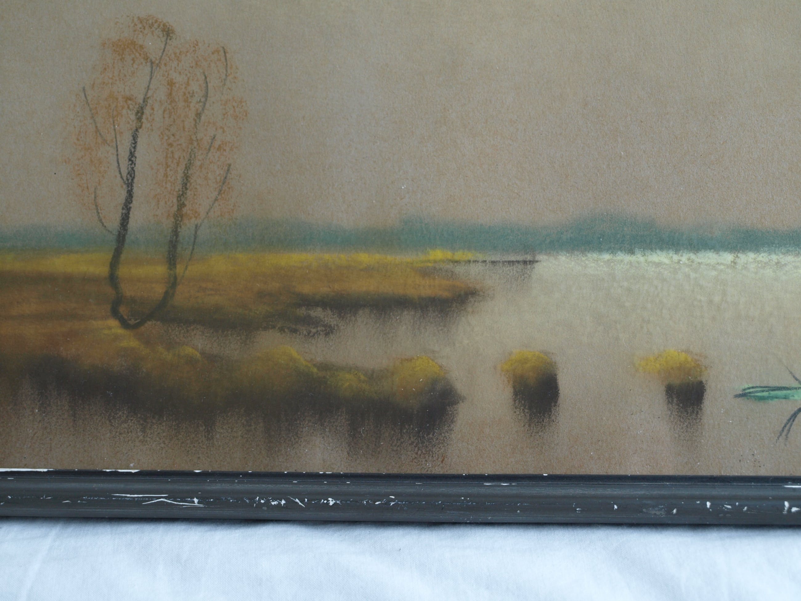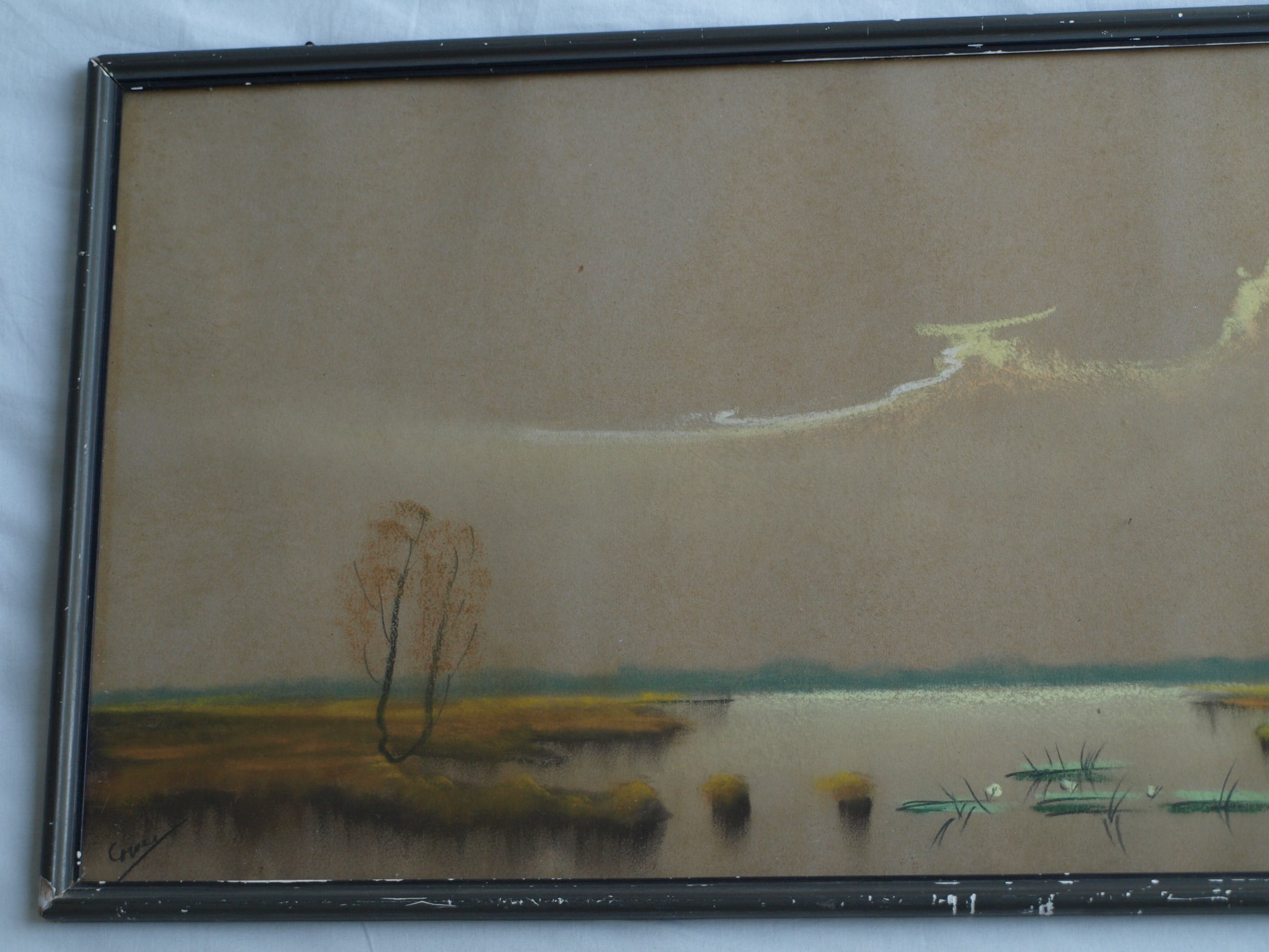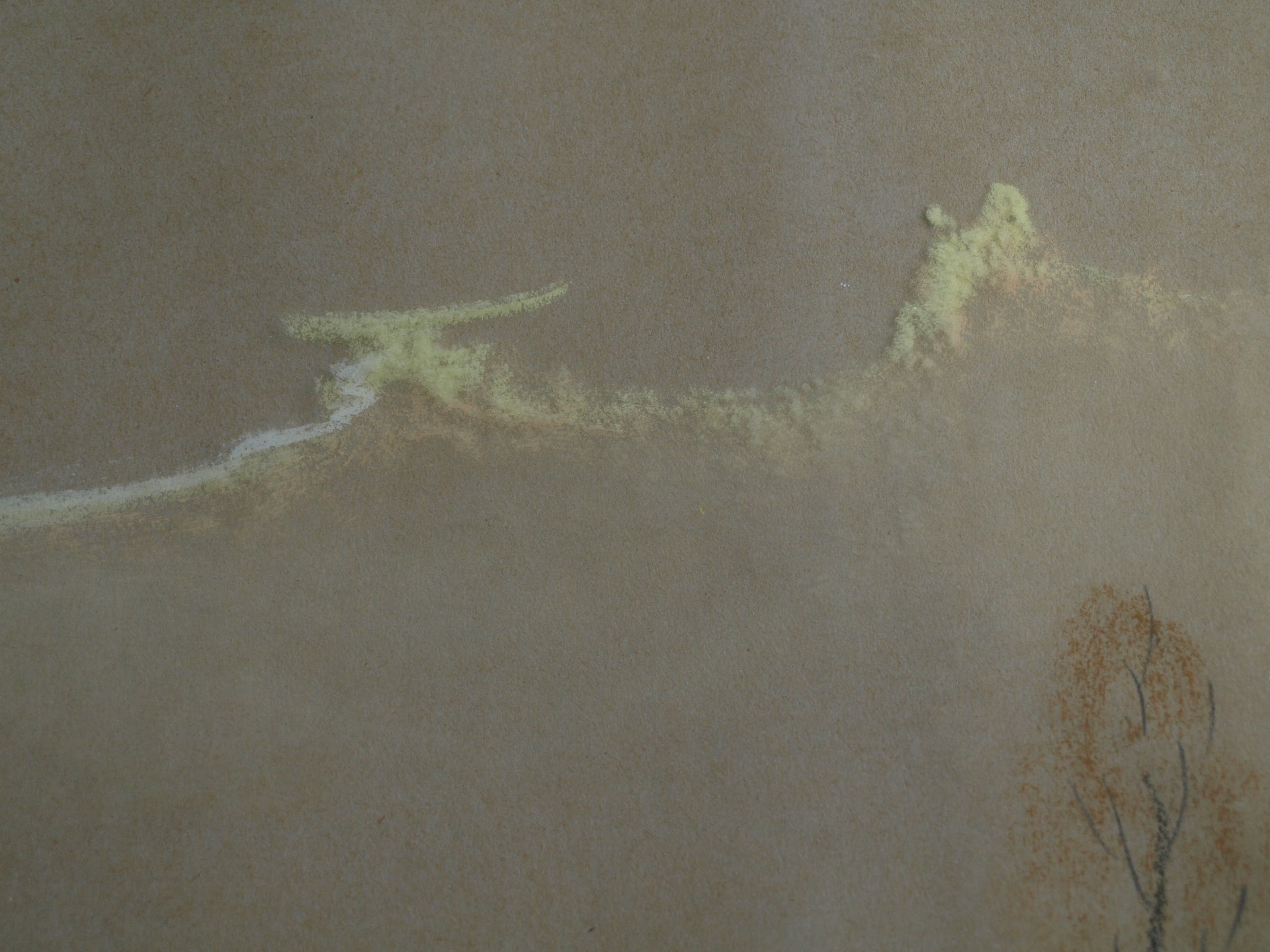 -Conditie: De pasteltekening is in redelijk goede staat. De lijst heeft beschadigingen