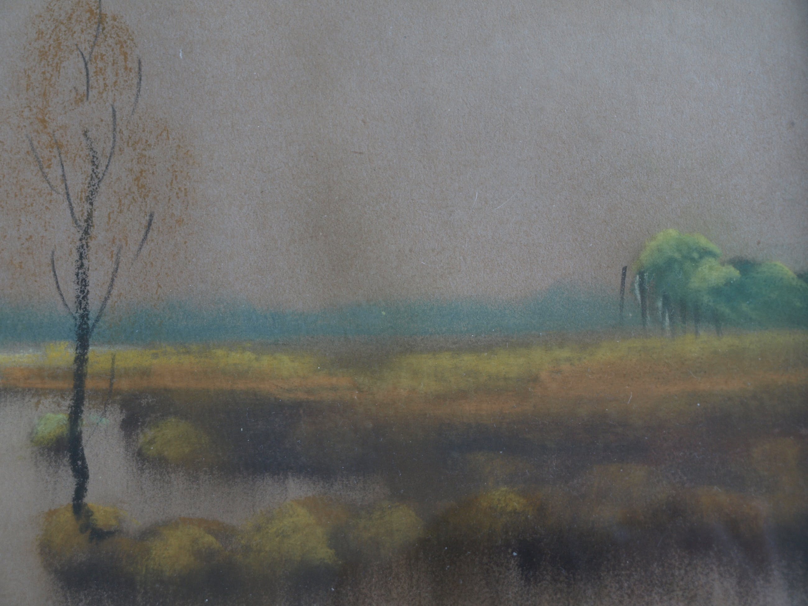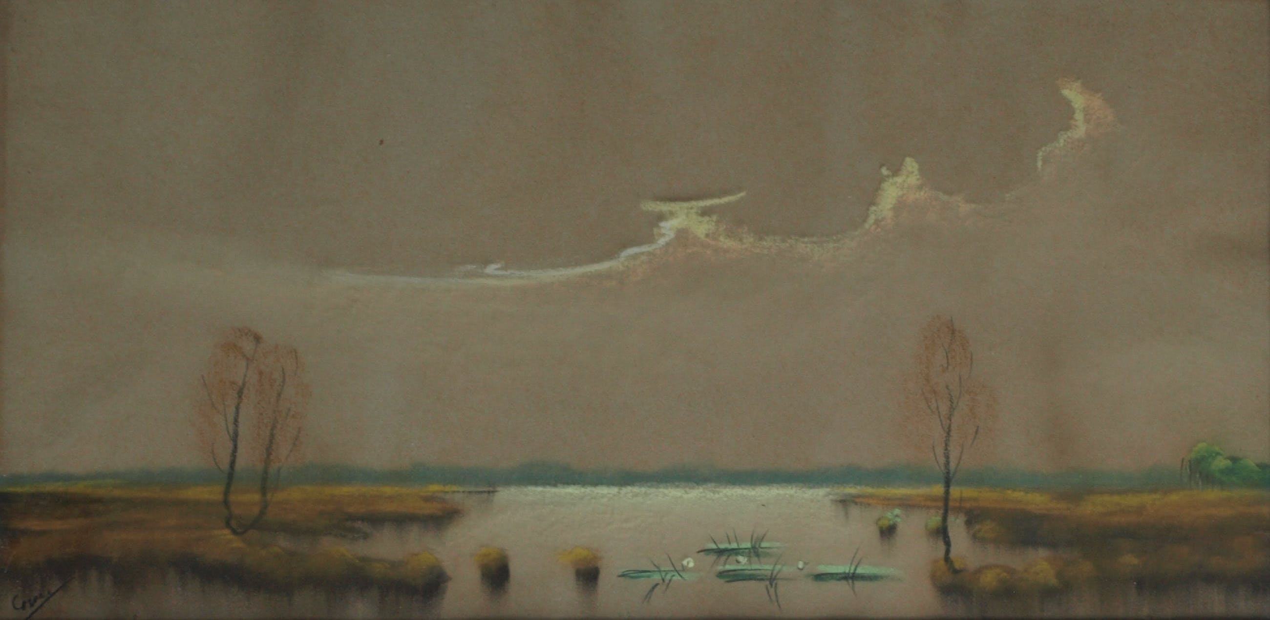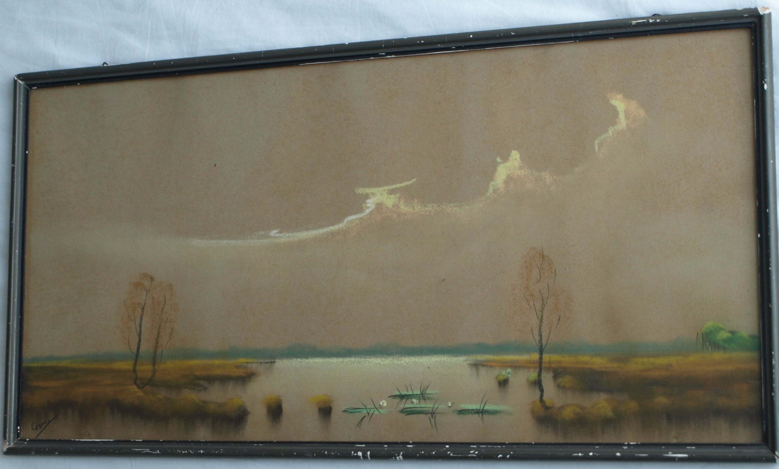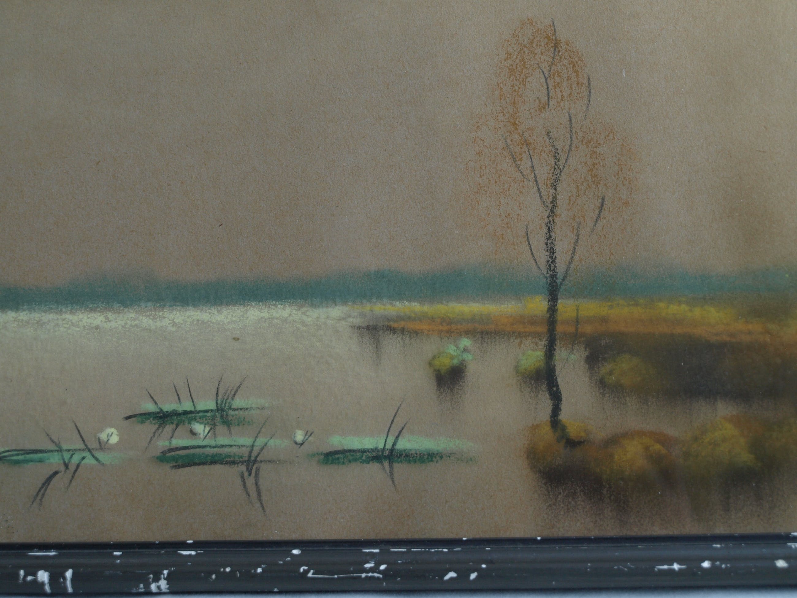 -Conditie: De pasteltekening is in redelijk goede staat. De lijst heeft beschadigingen