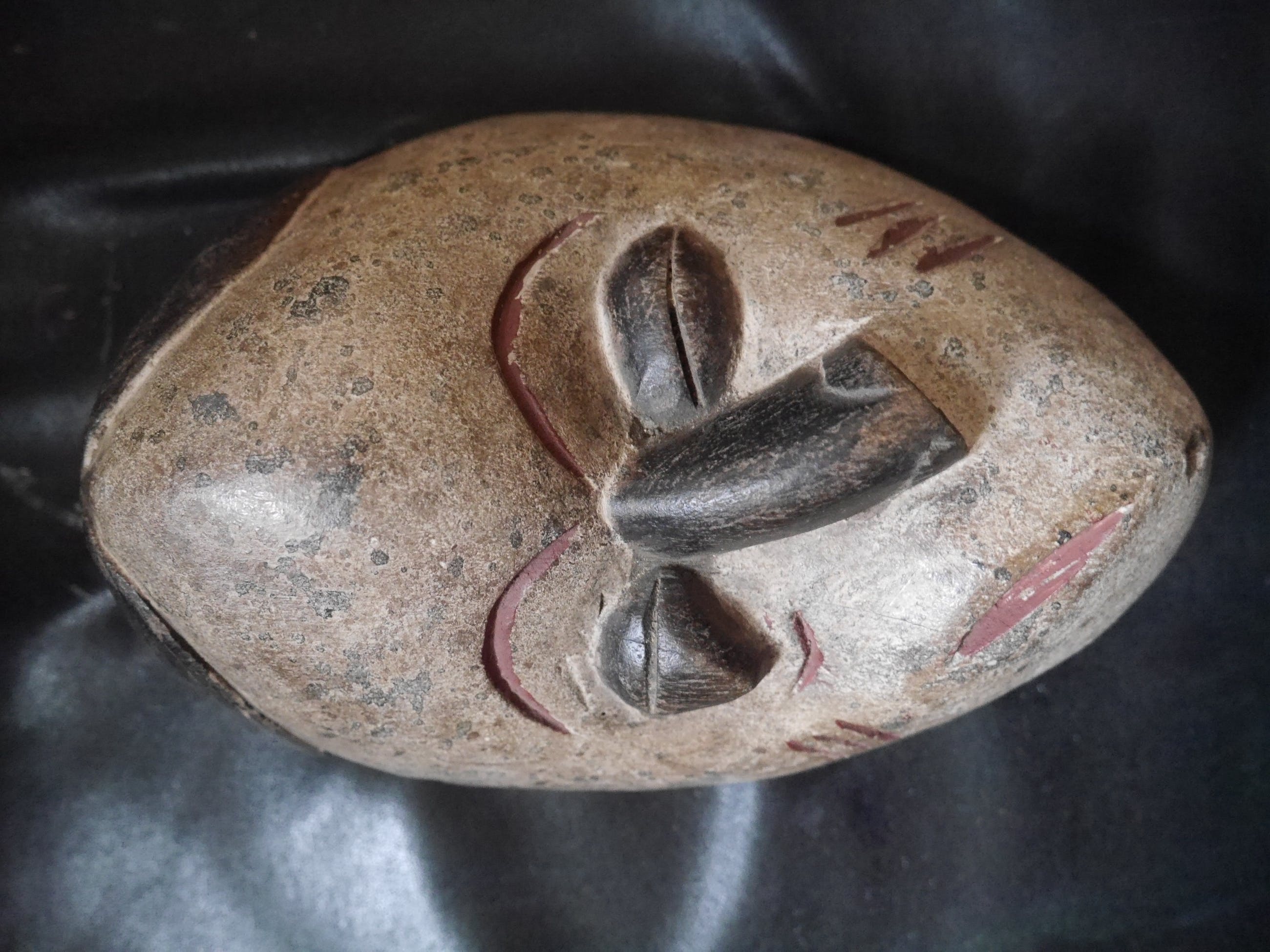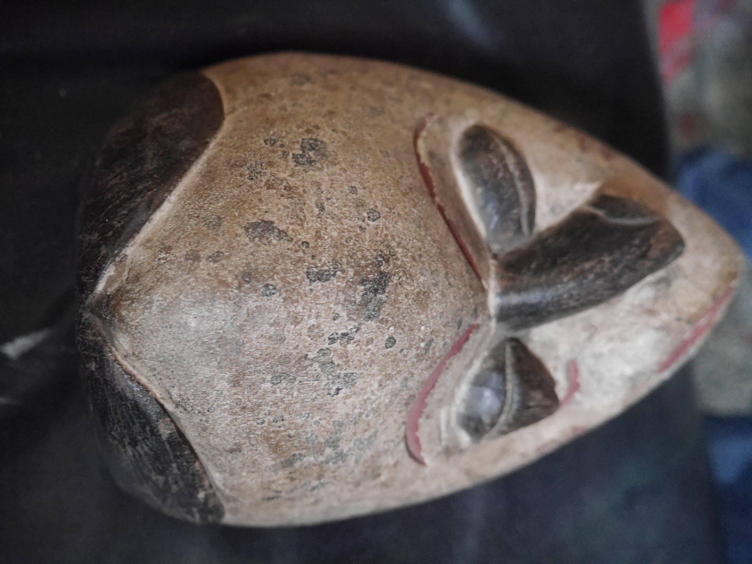Fraai Malade Masker wat in DR Congo word gebruikt om boze geesten te verdrijven en genezing af te roepen over de zieke spasticus of epilepticus. de asymmetrische vormen van het masker refereren aan het gezicht van de zieke, verzamelobject