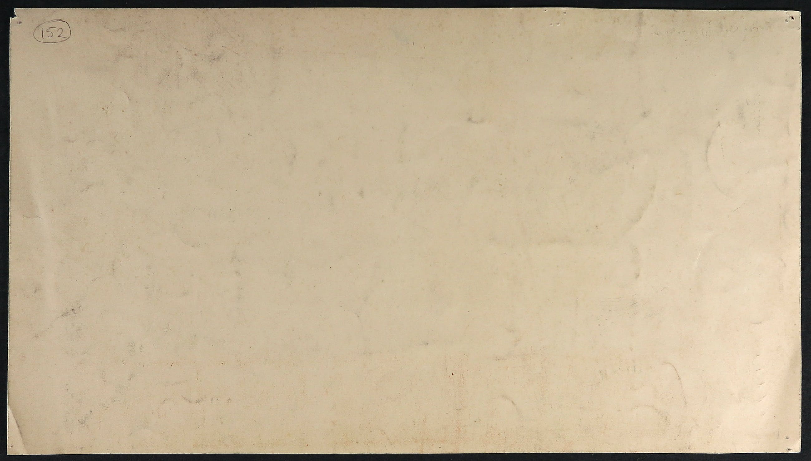 In de hoeken van het blad zitten punaise gaten. Een hoekje is daardoor afgescheurd. Dit is echter makkelijk weg te werken met een passe-partout. Er zitten een aantal lichte vlekken en vegen op het glanzende papier. | |||||||