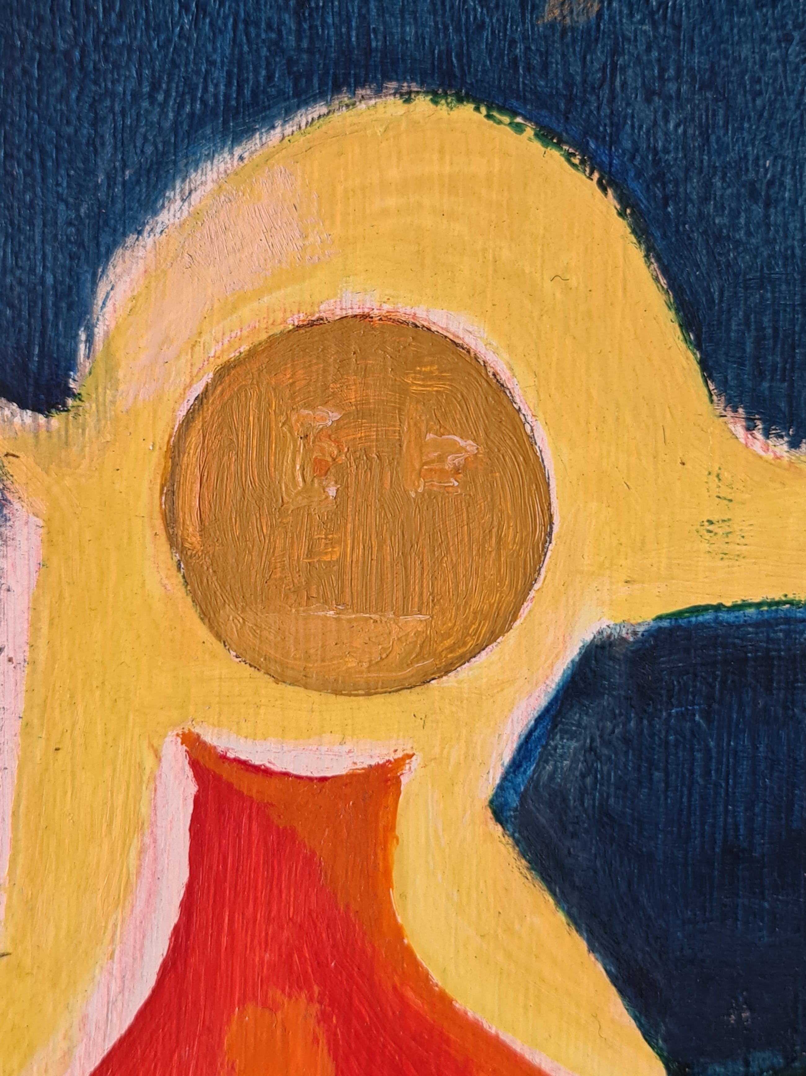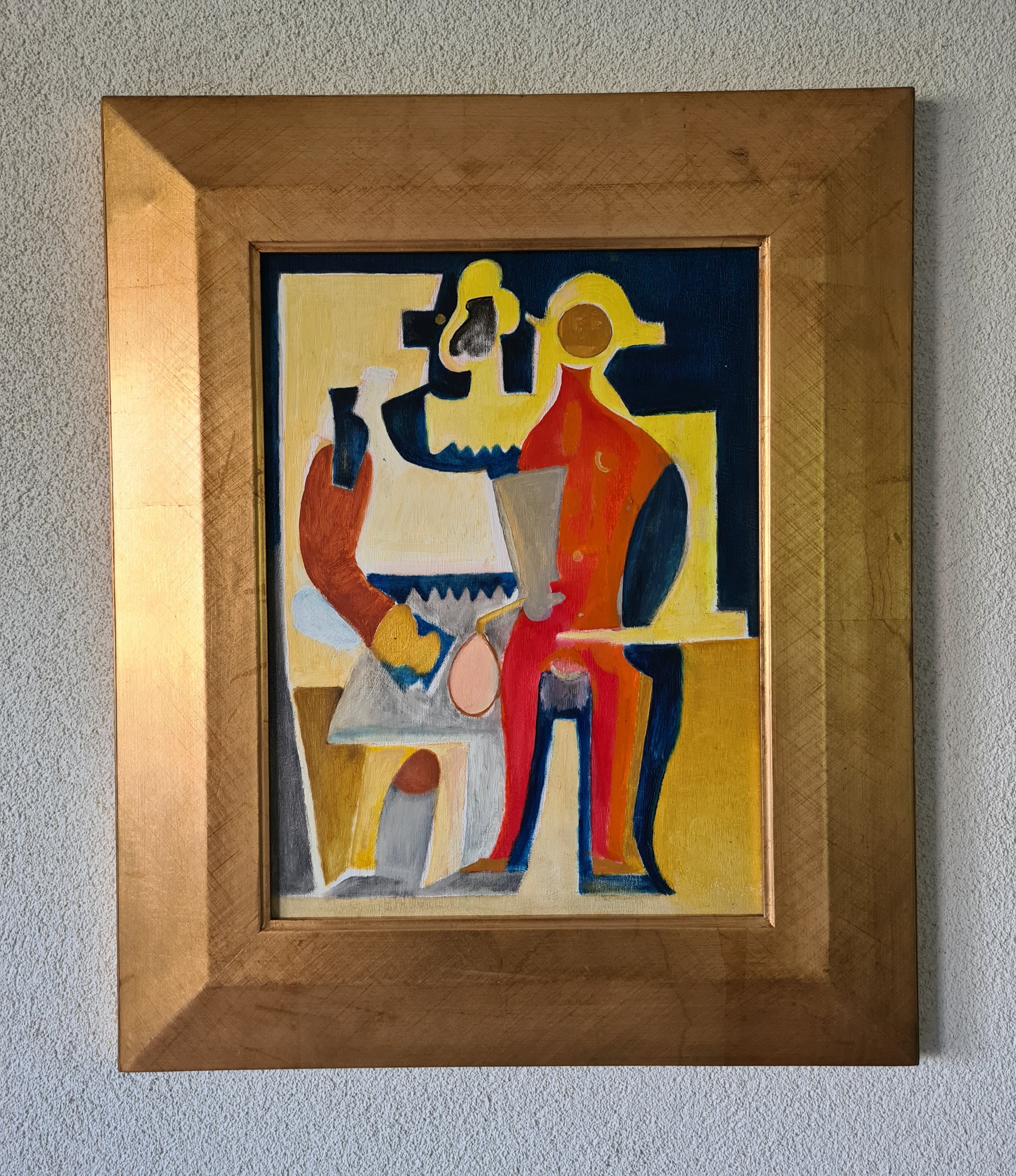 Interessant werk, nieuw lijstje. Niet gesigneerd, heeft wel iets weg van werkjes van Picasso. Denk ergens jaren 60 dat dit werk is gemaakt. Ik kom er niet uit wie het is helaas. Wellicht een mooi koopje voor u!