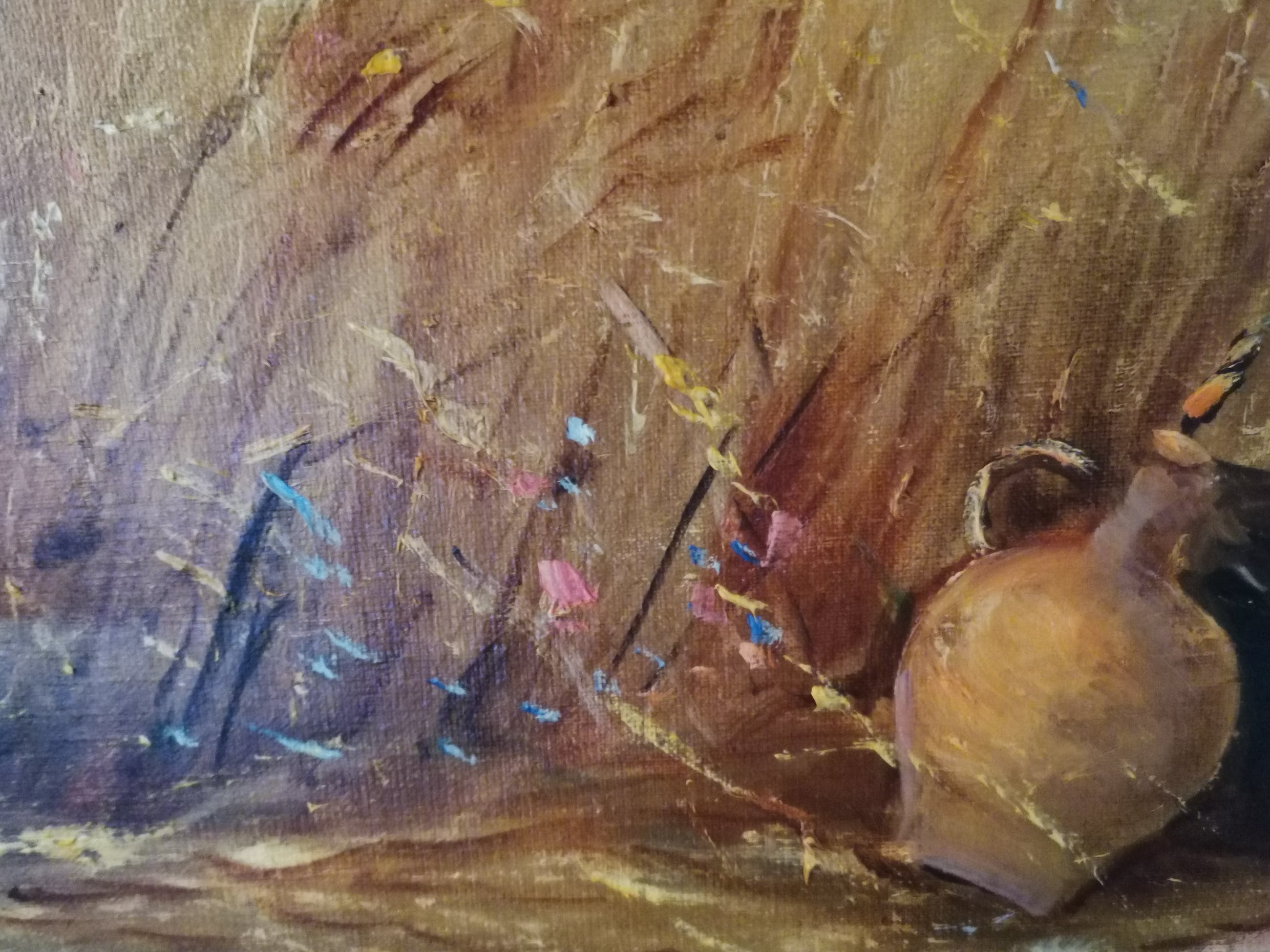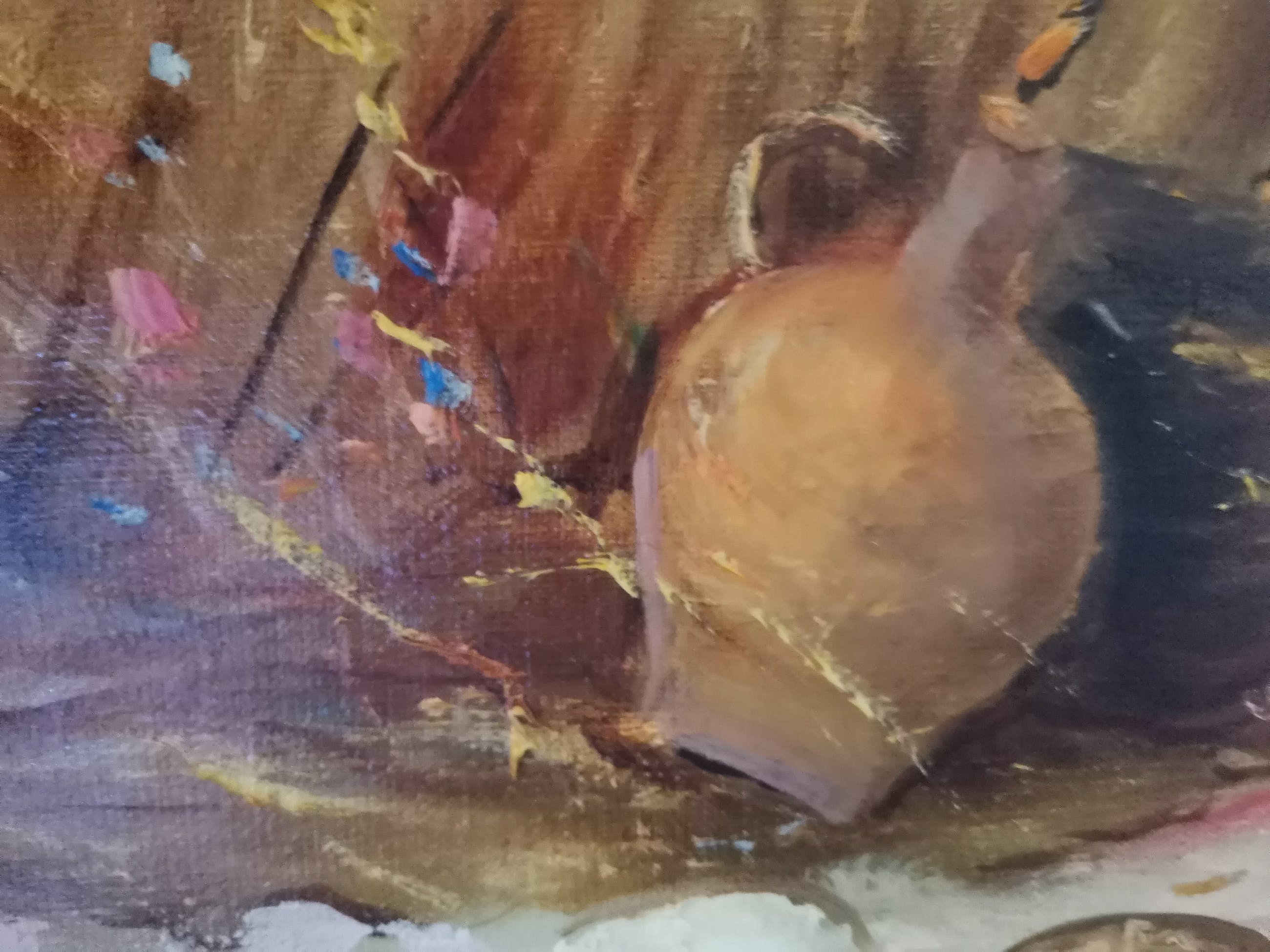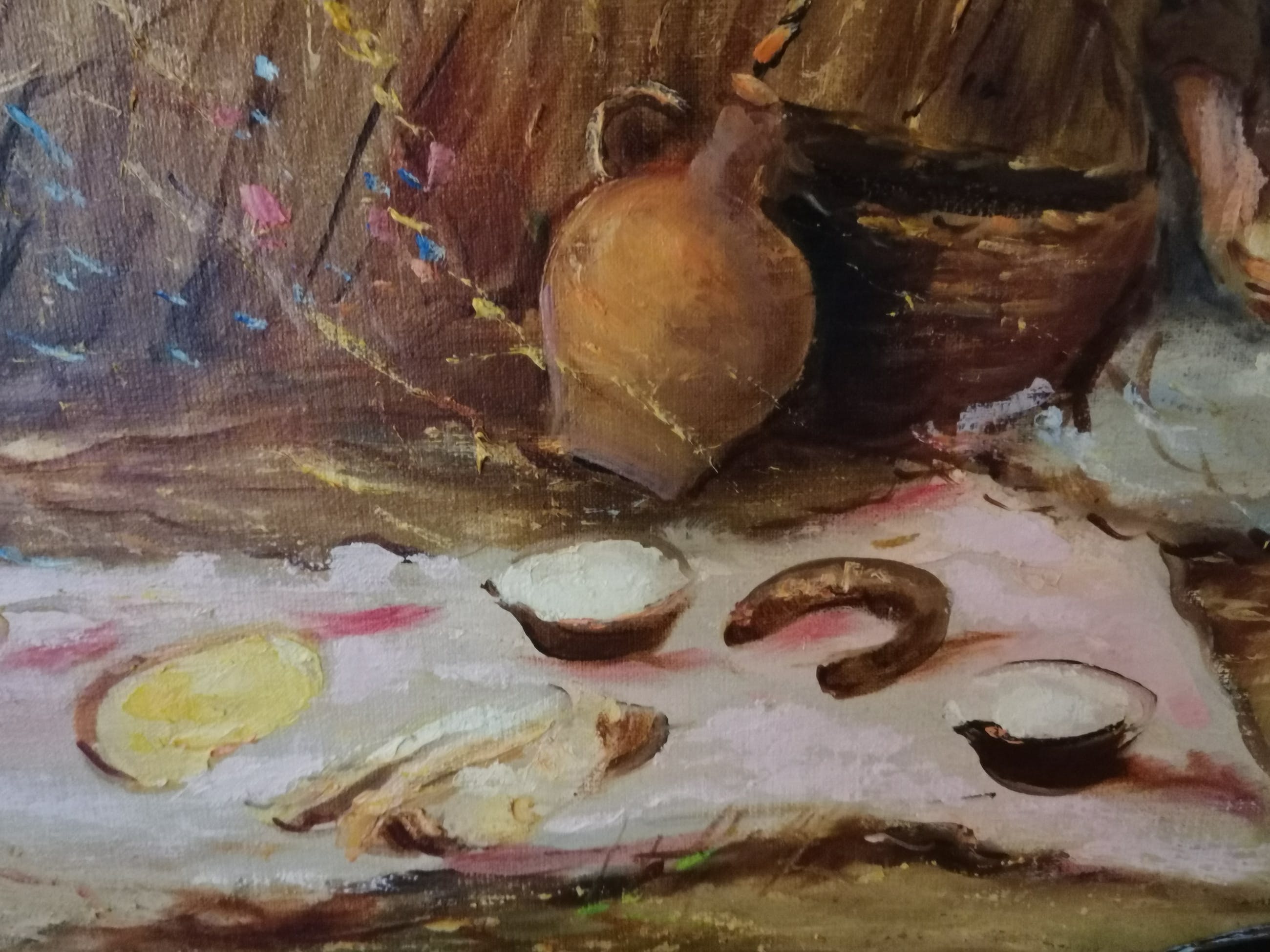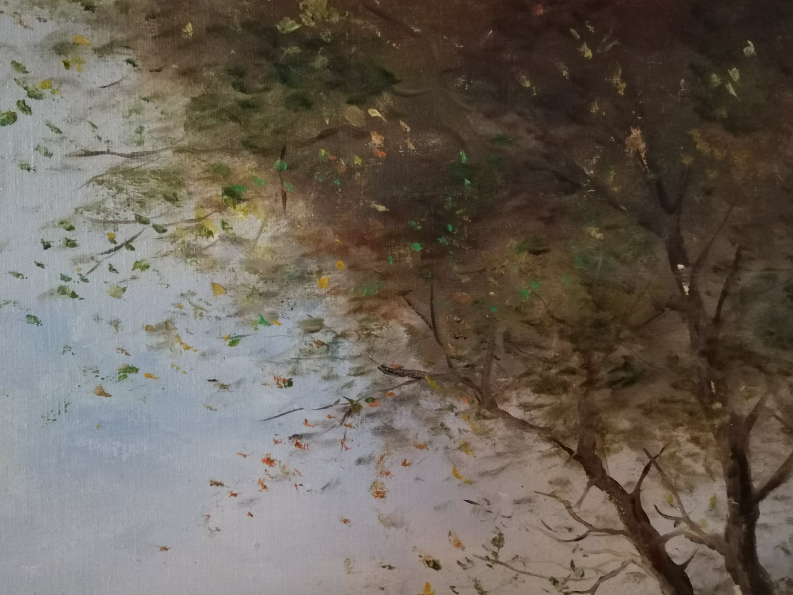 dit prachtige schilderij is 70 cm hoog, en 80 cm breed zonder de kader,