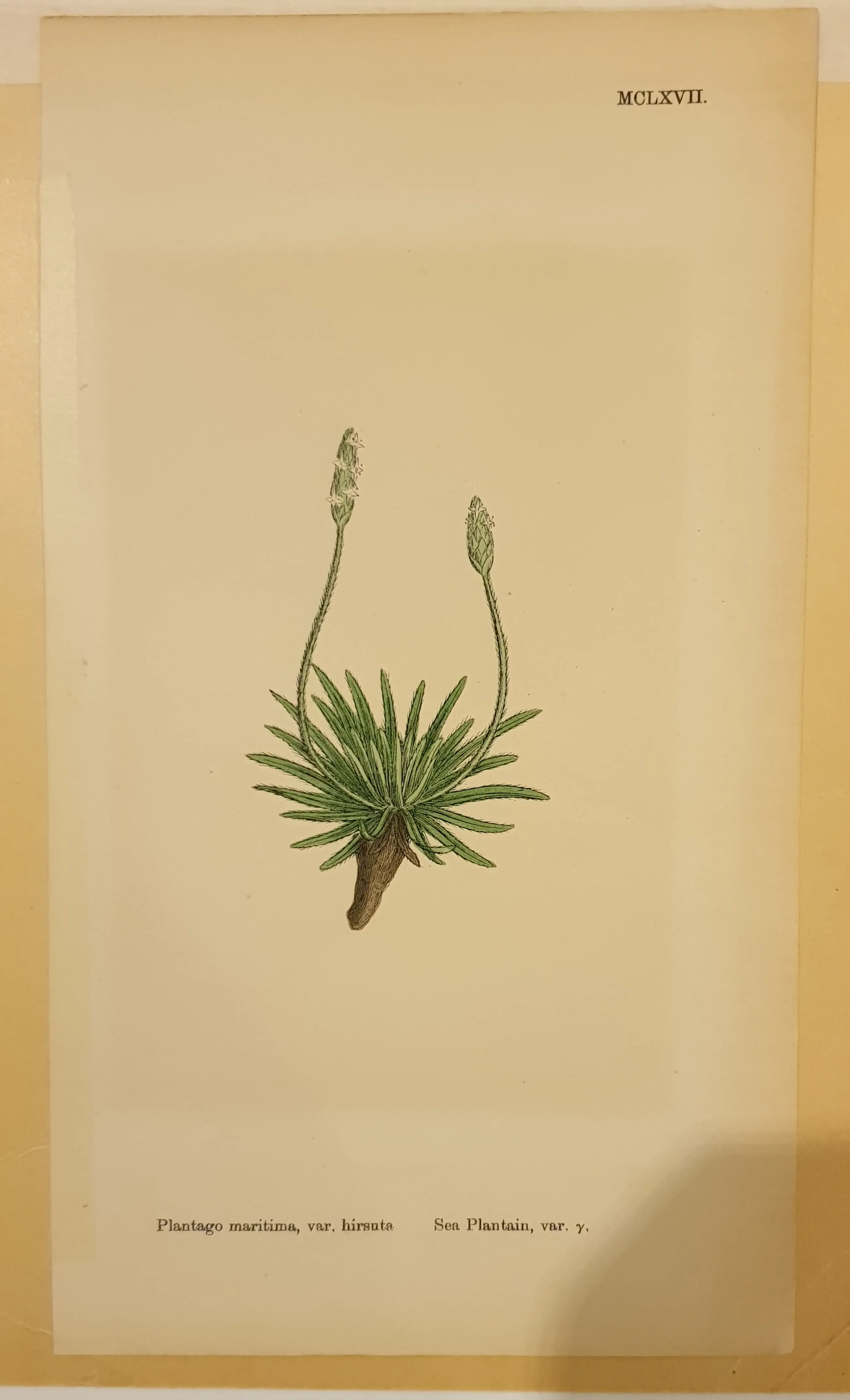 Engelse litho handgekleurd van 1865: plantago maritima var. hirsuta MCLXVII opgegeven maten incl. passepartout origineel blad: 25 x 14