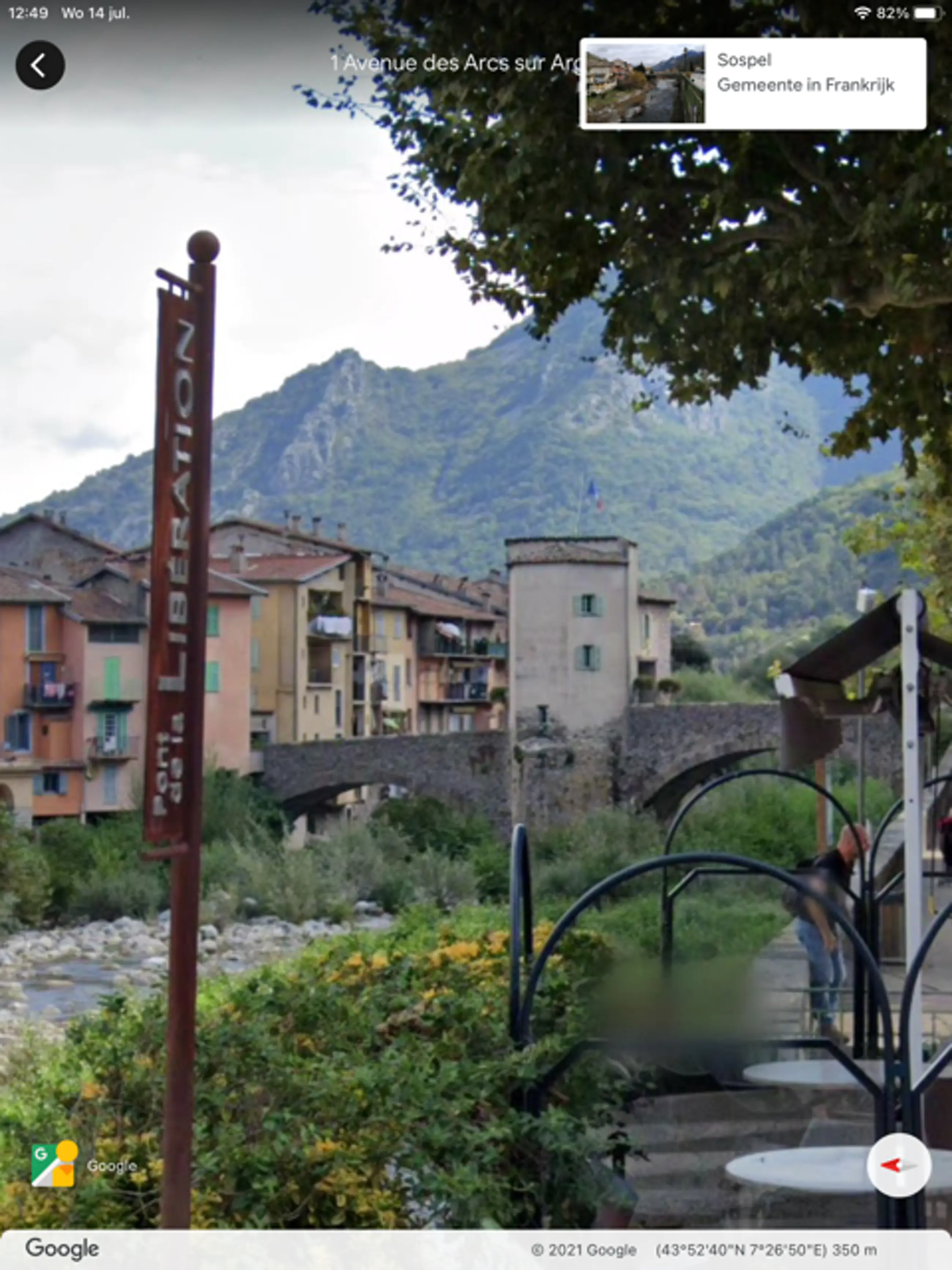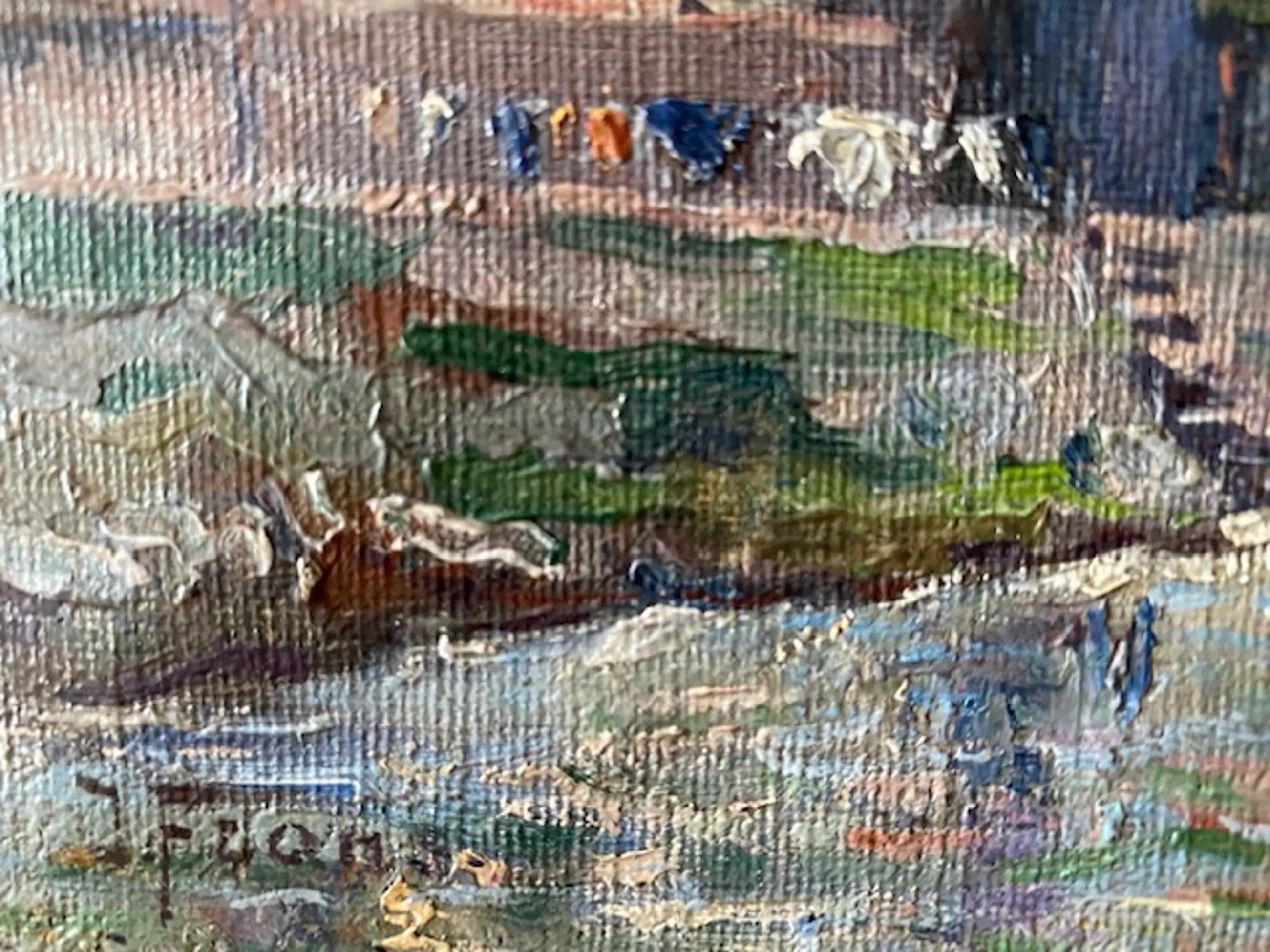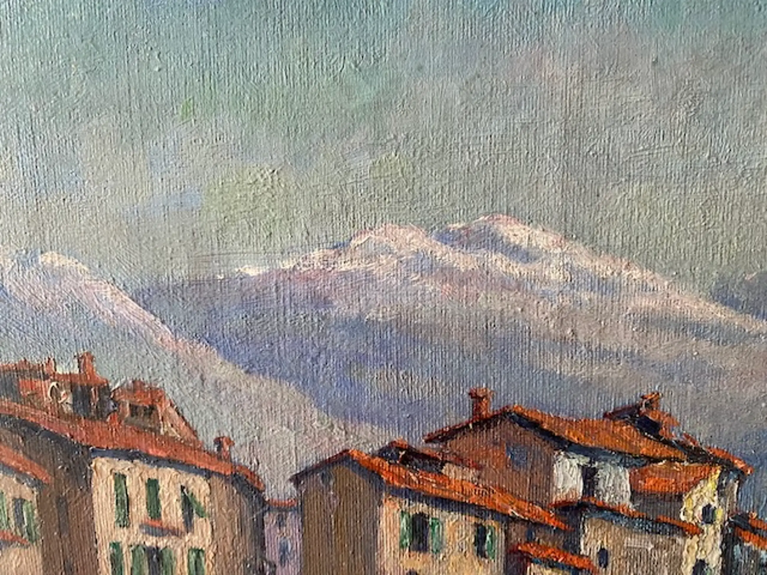 Op doek geschilderde impressie van de brug over de Bévéra. Sospel is een gemeente in het Franse departement Alpes-Maritimes (regio Provence-Alpes-Côte d'Azur) en de plaats maakt deel uit van het arrondissement Nice. Opgezet in fraaie pasteltinten