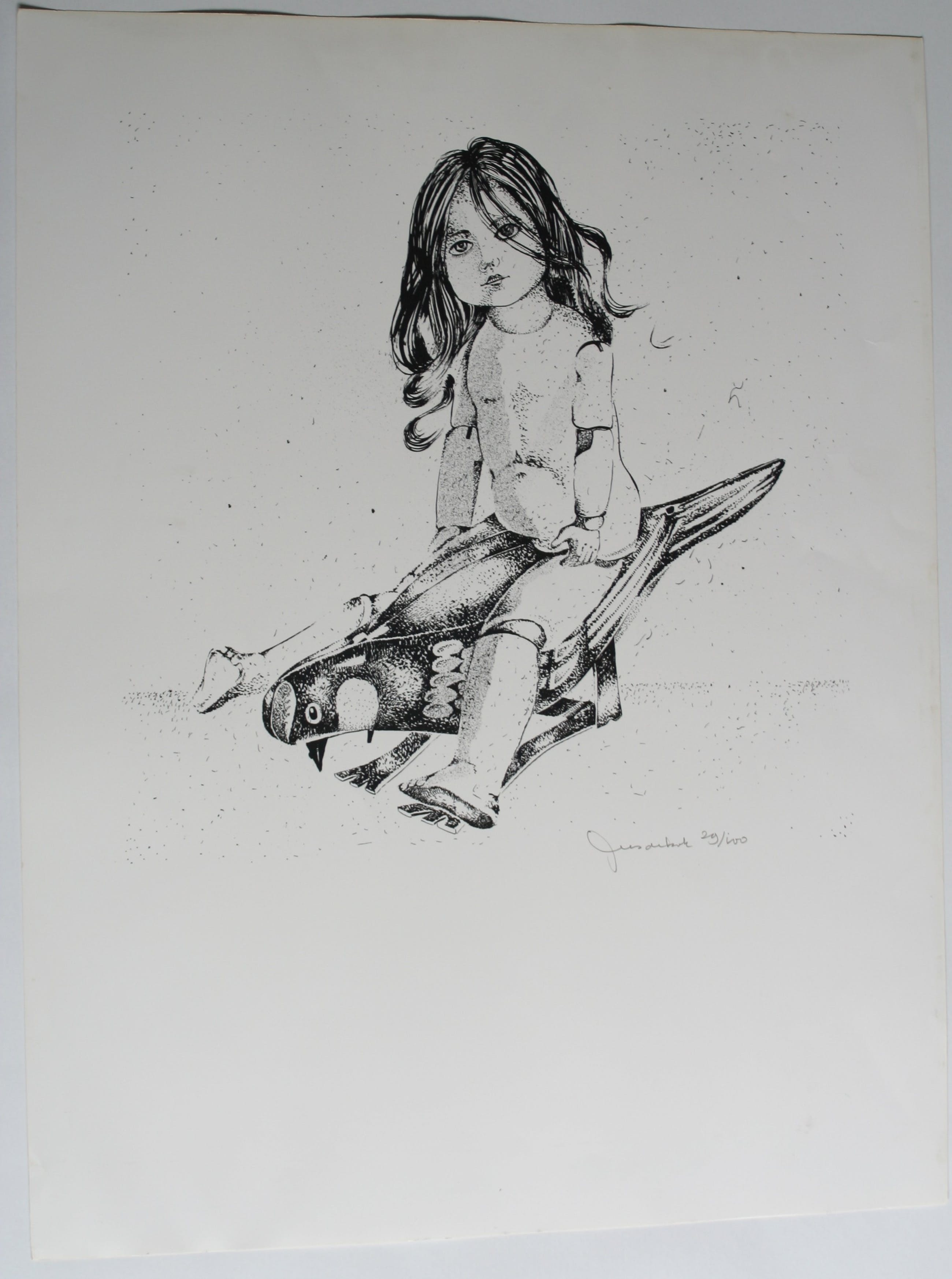 Zwart witte zeefdruk van onbekende kunstenaar. Wel gesigneerd maar niet leesbaar. Het zeefdruk deel is 45 x 45 het blad is 65 x 50. Genummerd 29/100. Wordt plat verzonden tussen platen.