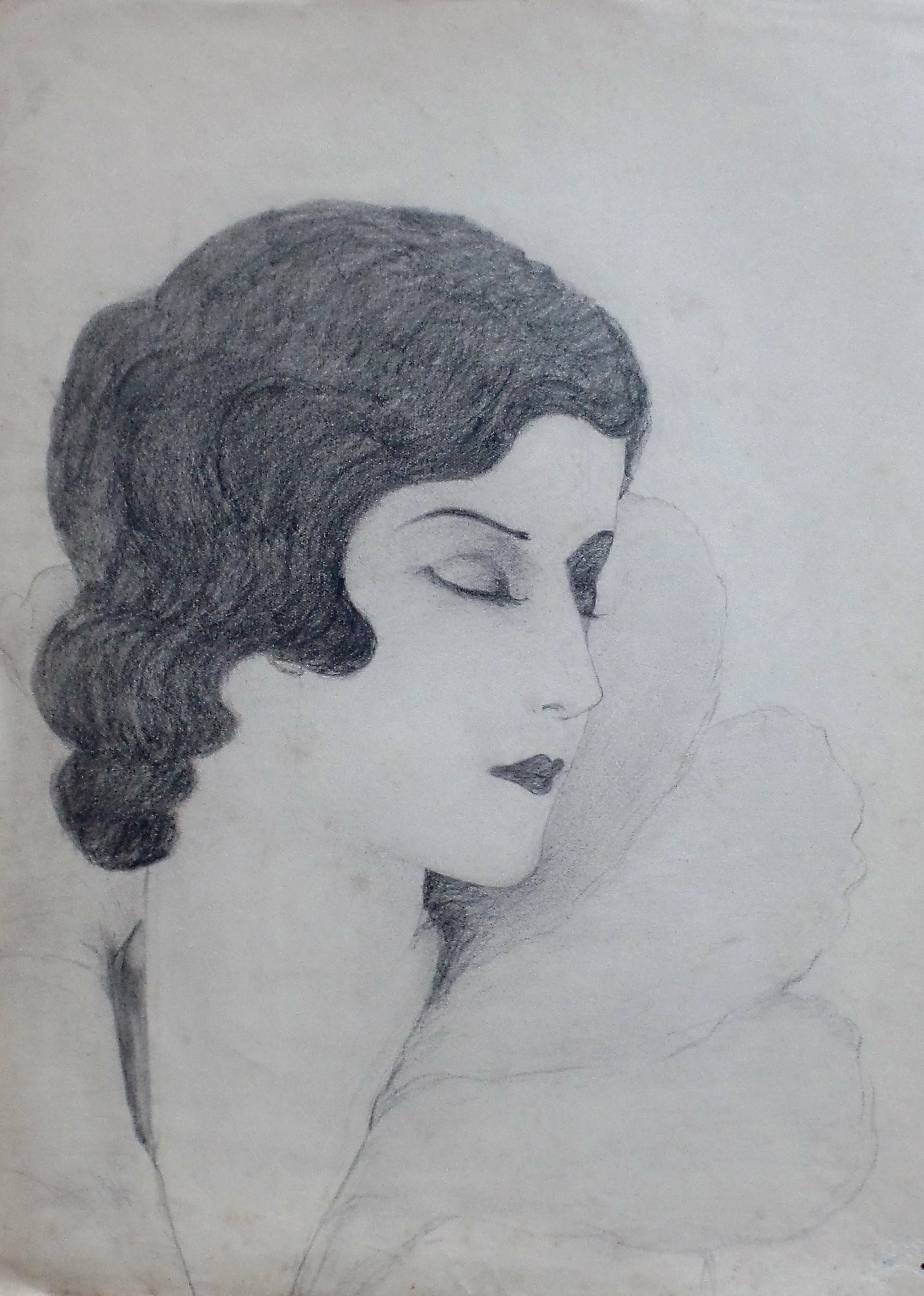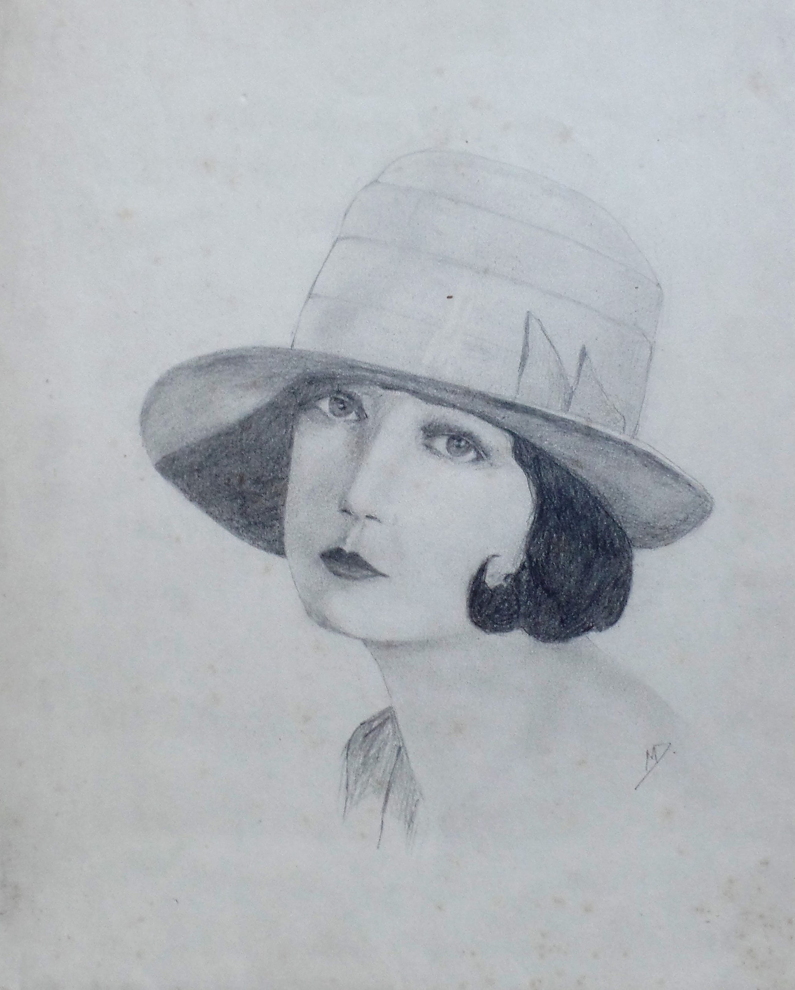Twee mooie portret tekeningen jaren 20 Een gesigneerd met monogram MD