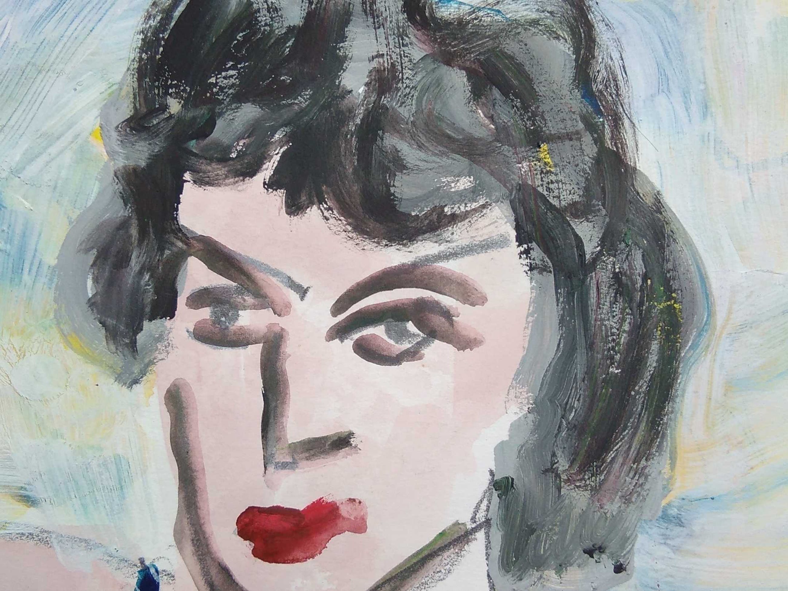 Onbekende kunstenaar gouache. Portret van een vrouw circa 1990. Zeer redelijke staat met diverse ouderdomsverschijnselen.