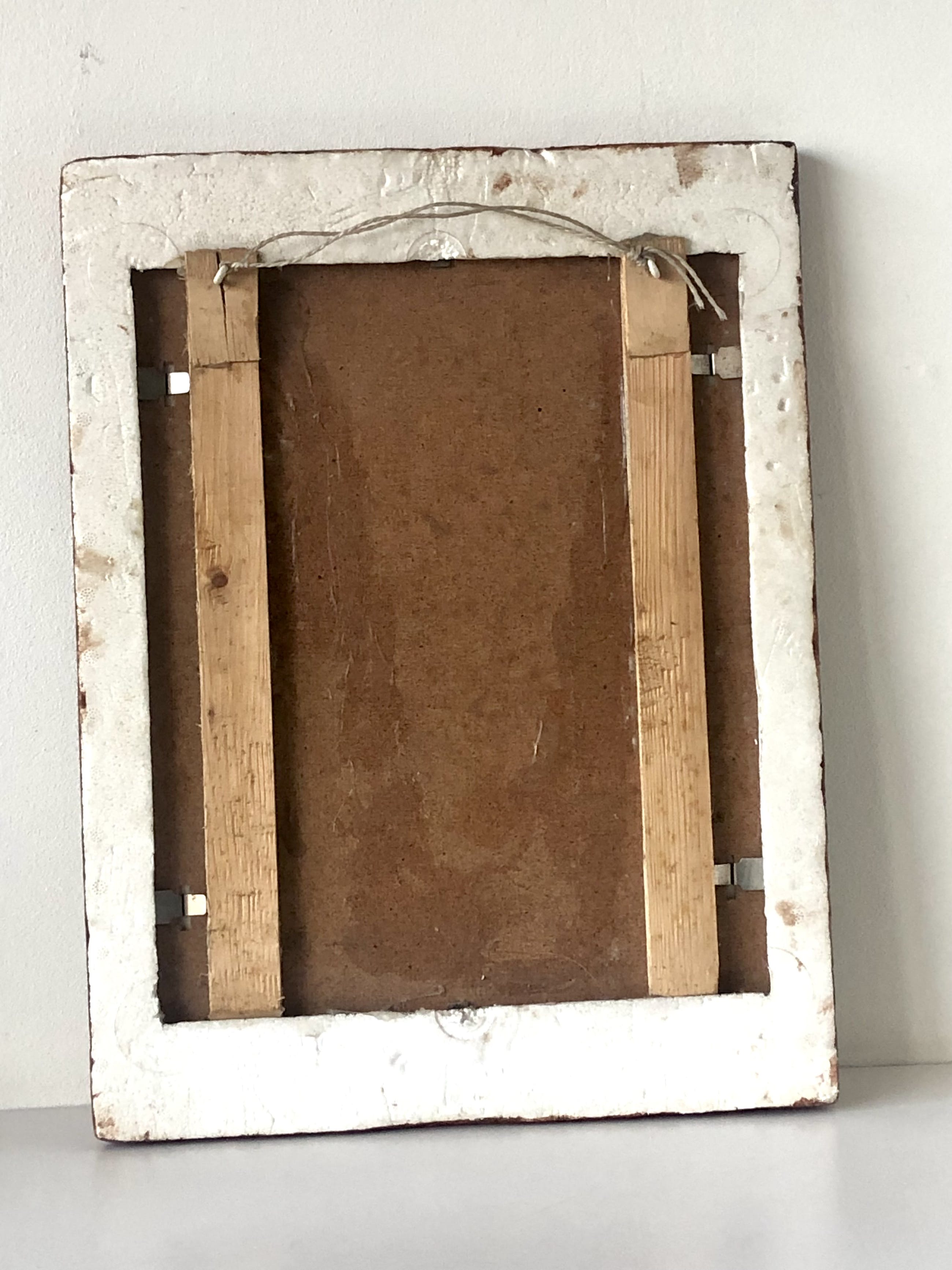 Kleine chip in het glas links onder, lijst van polystyreen (piepschuim).