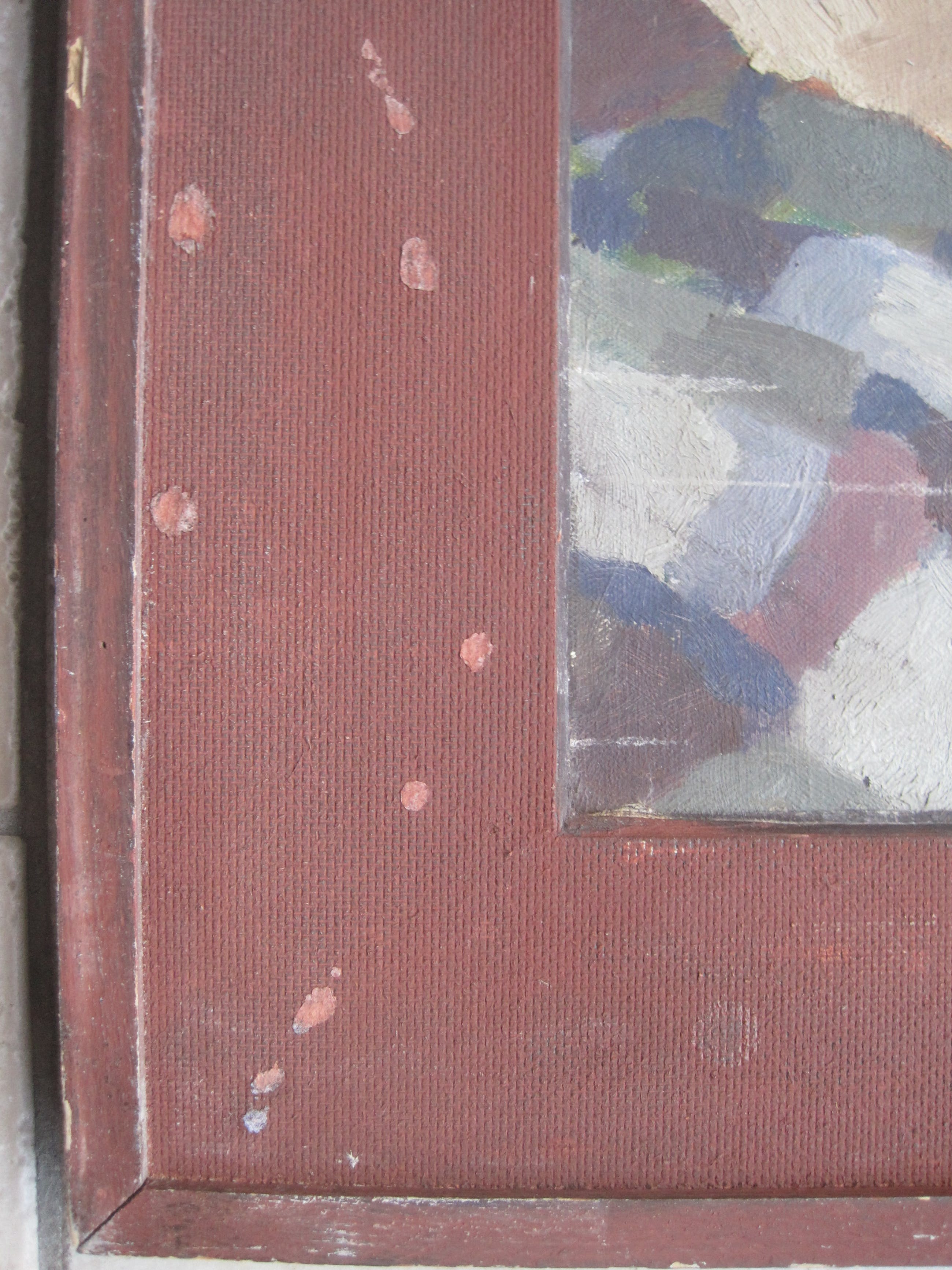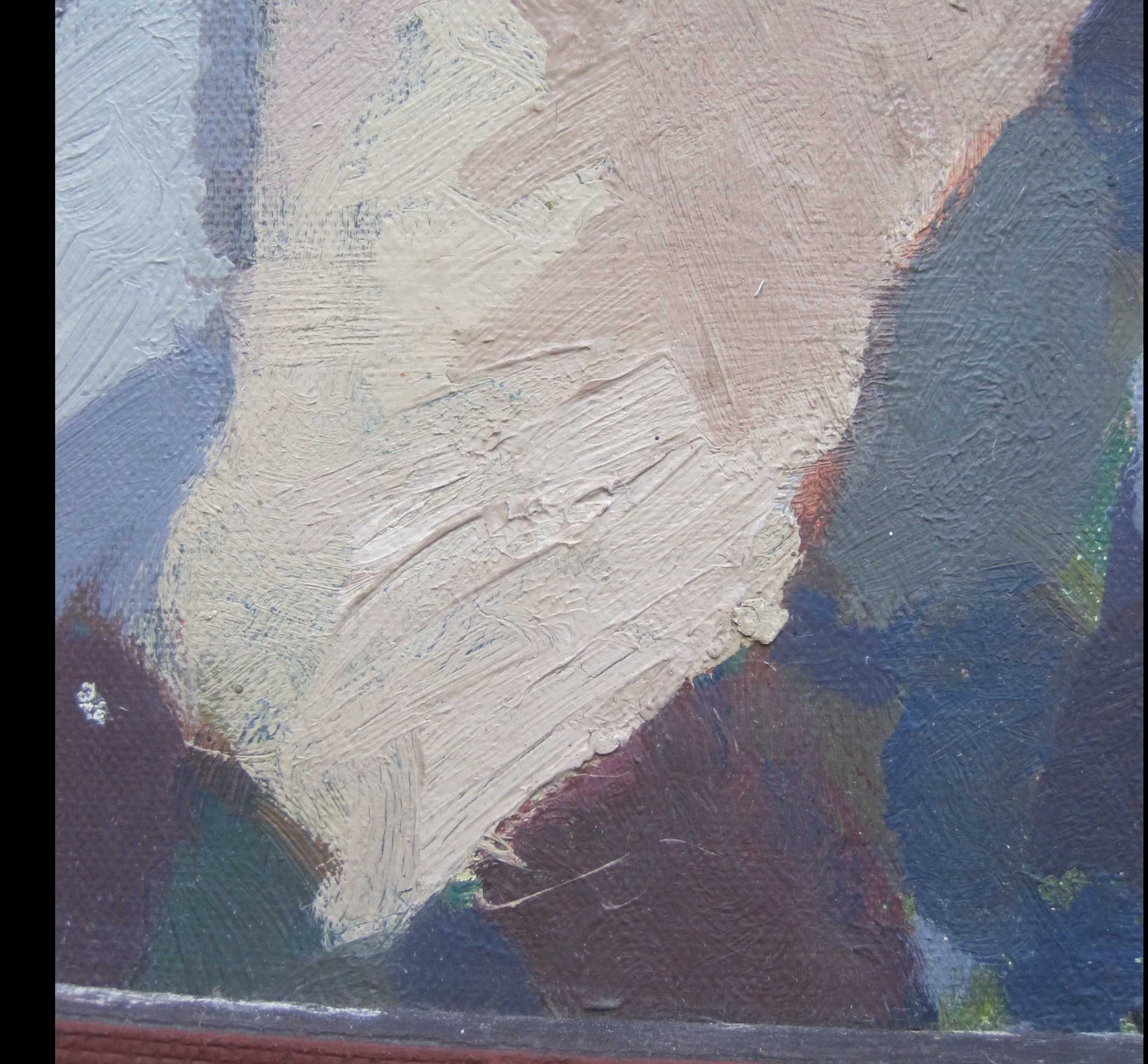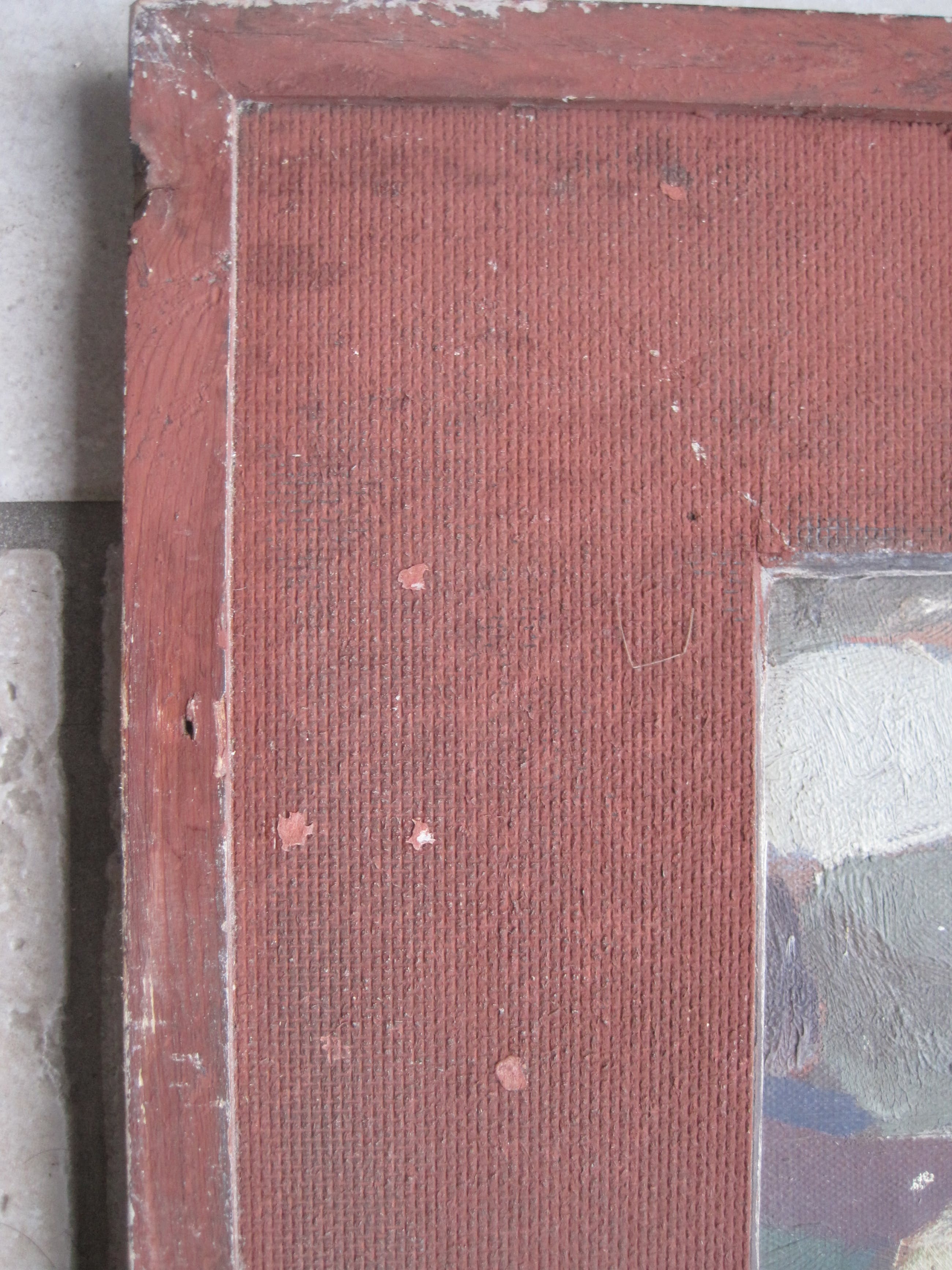 Heel aantrekkelijk schilderij van een jonge vrouw in een vlotte stijl. Geschilderd op hardboard. De lijst heeft flinke sporen van de tand des tijds, maar dit maakt het schilderij naar mijn mening nog aantrekkelijker. De lijst is vrij eenvoudig bij te werken.