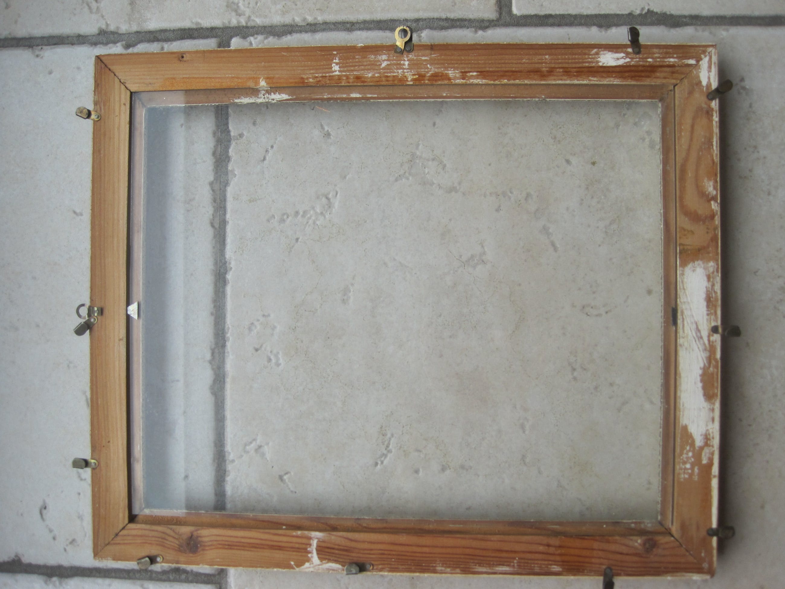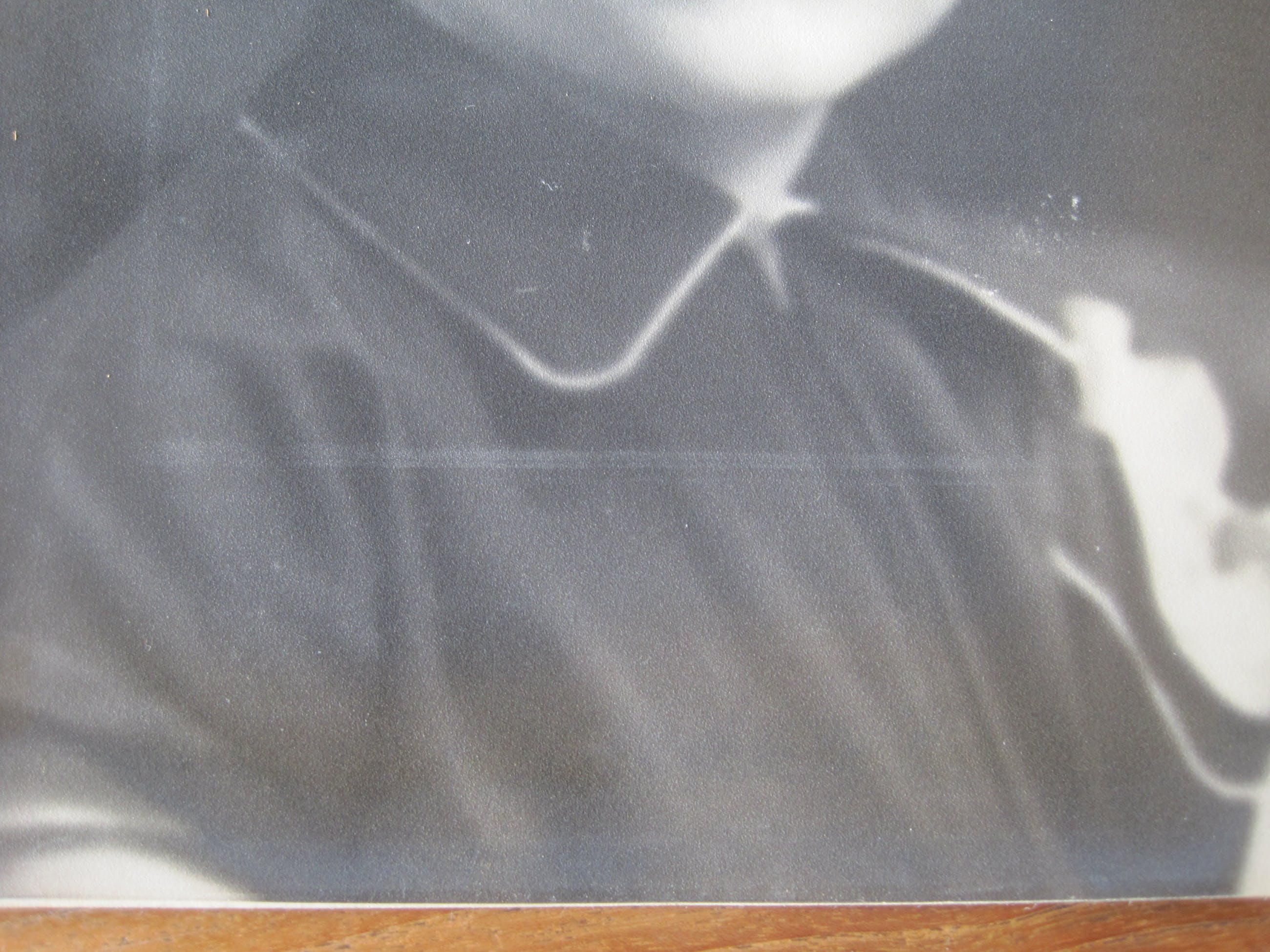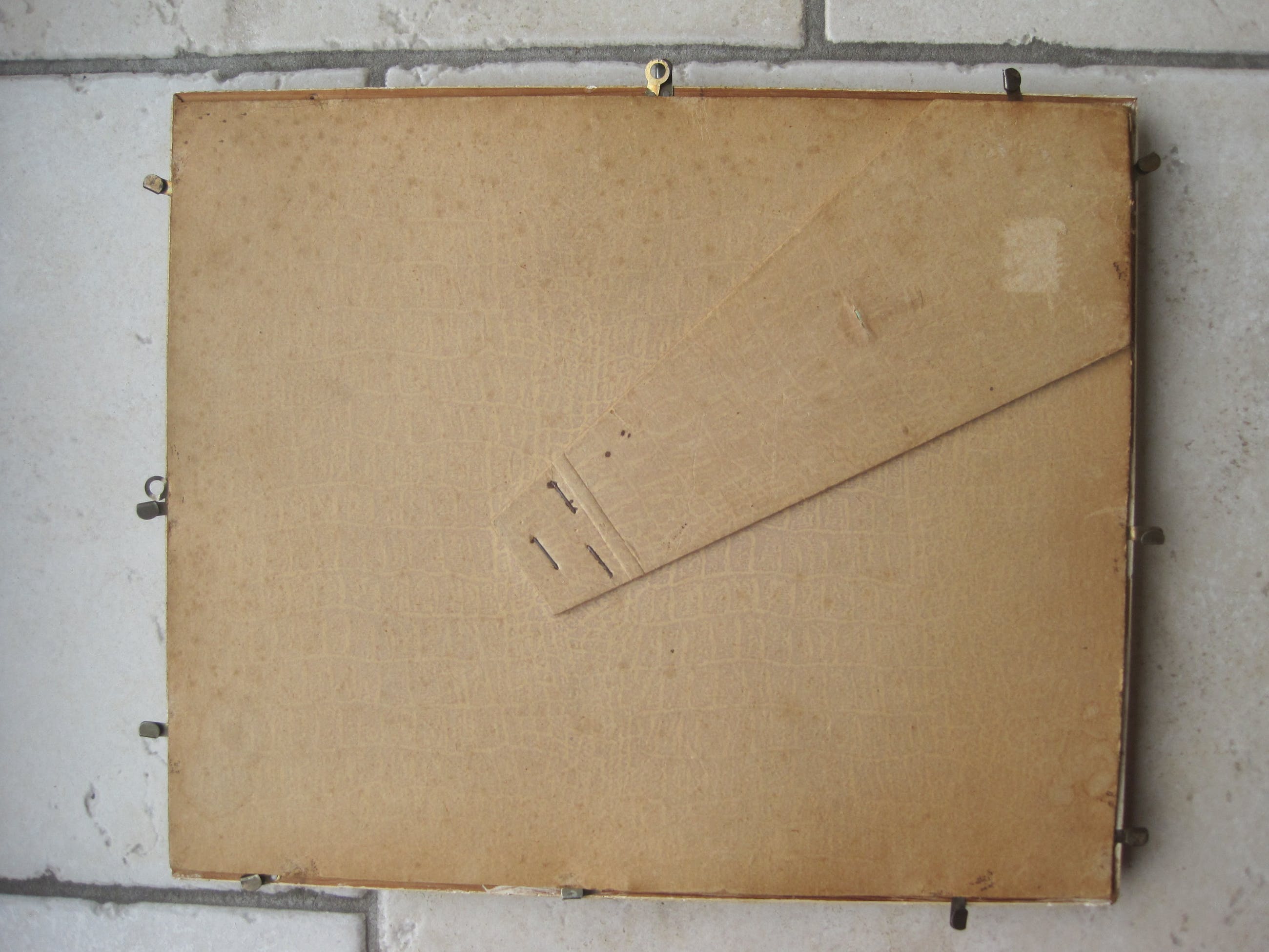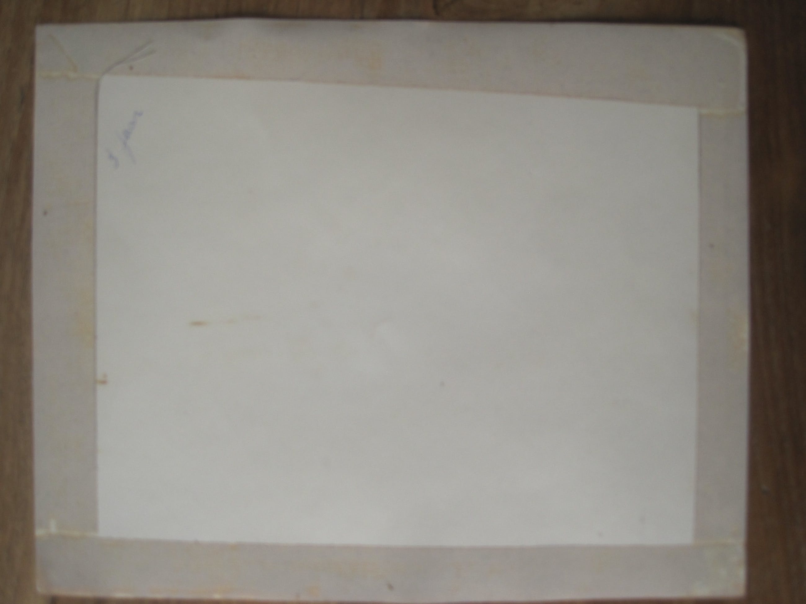 De foto was met tape aan de lijst bevestigd.. De lijmresten zijn nog zichtbaar.