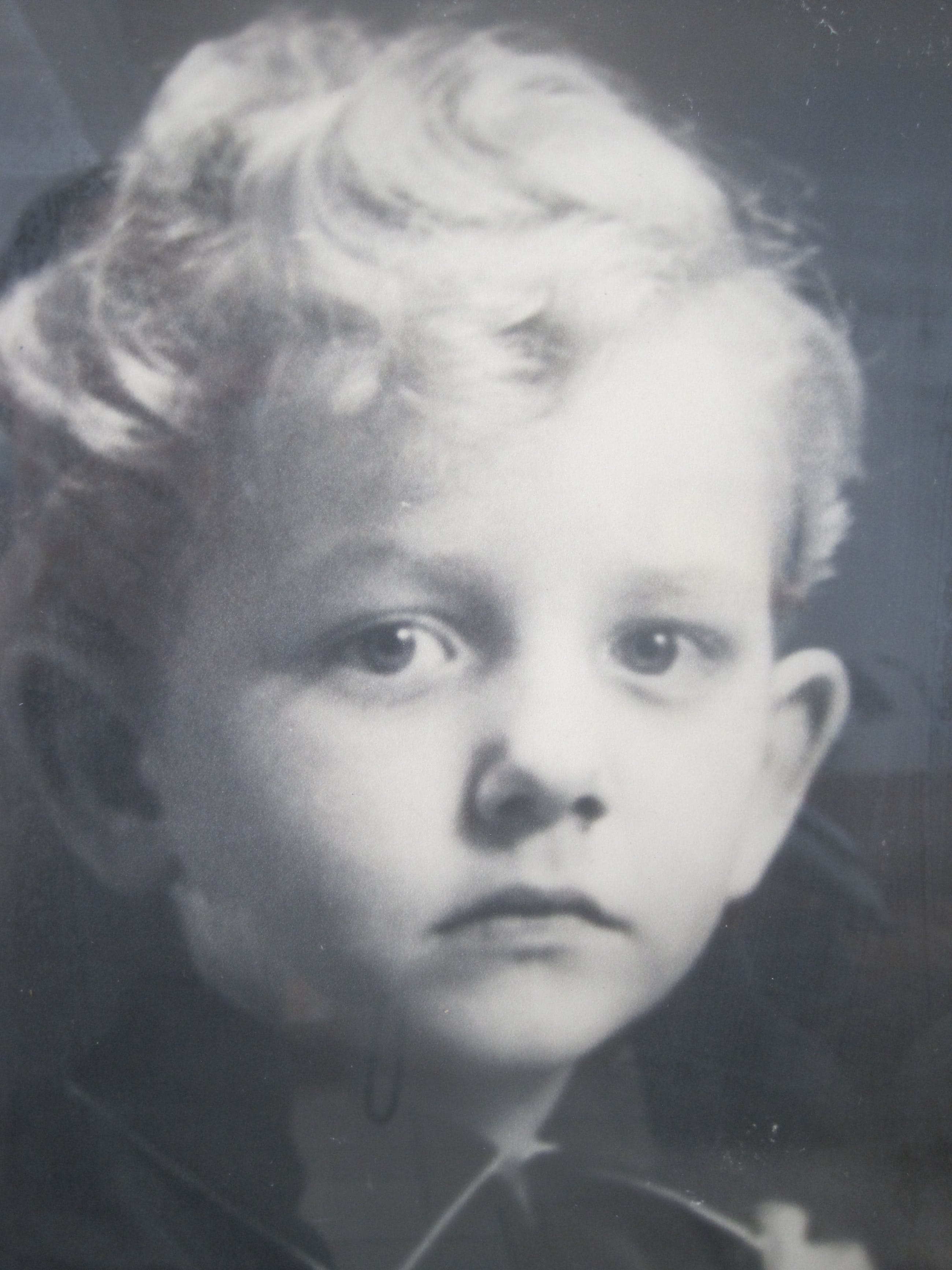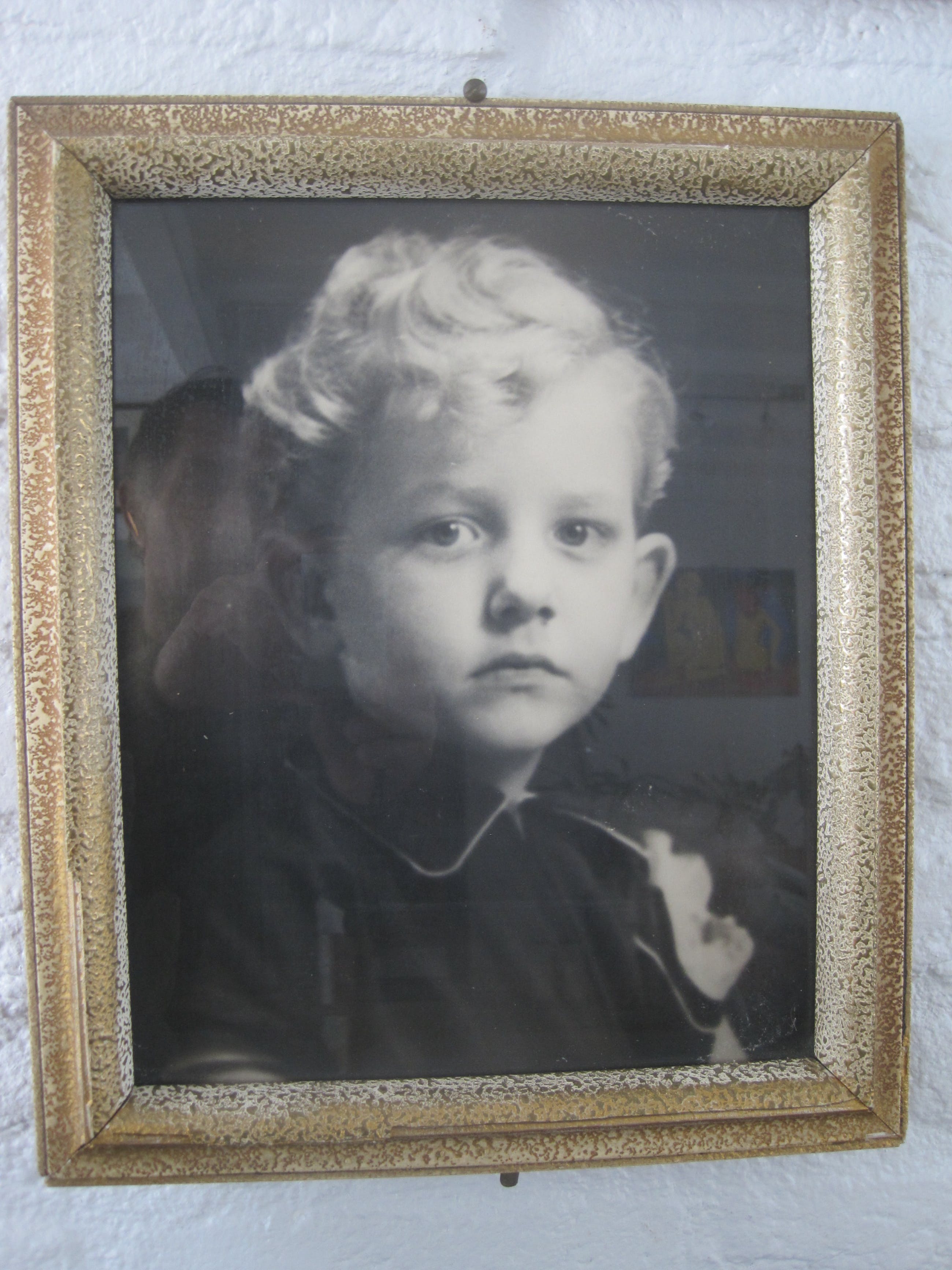 Een prachtige sprekende antieke foto van een jongetje met blond krullend haar.