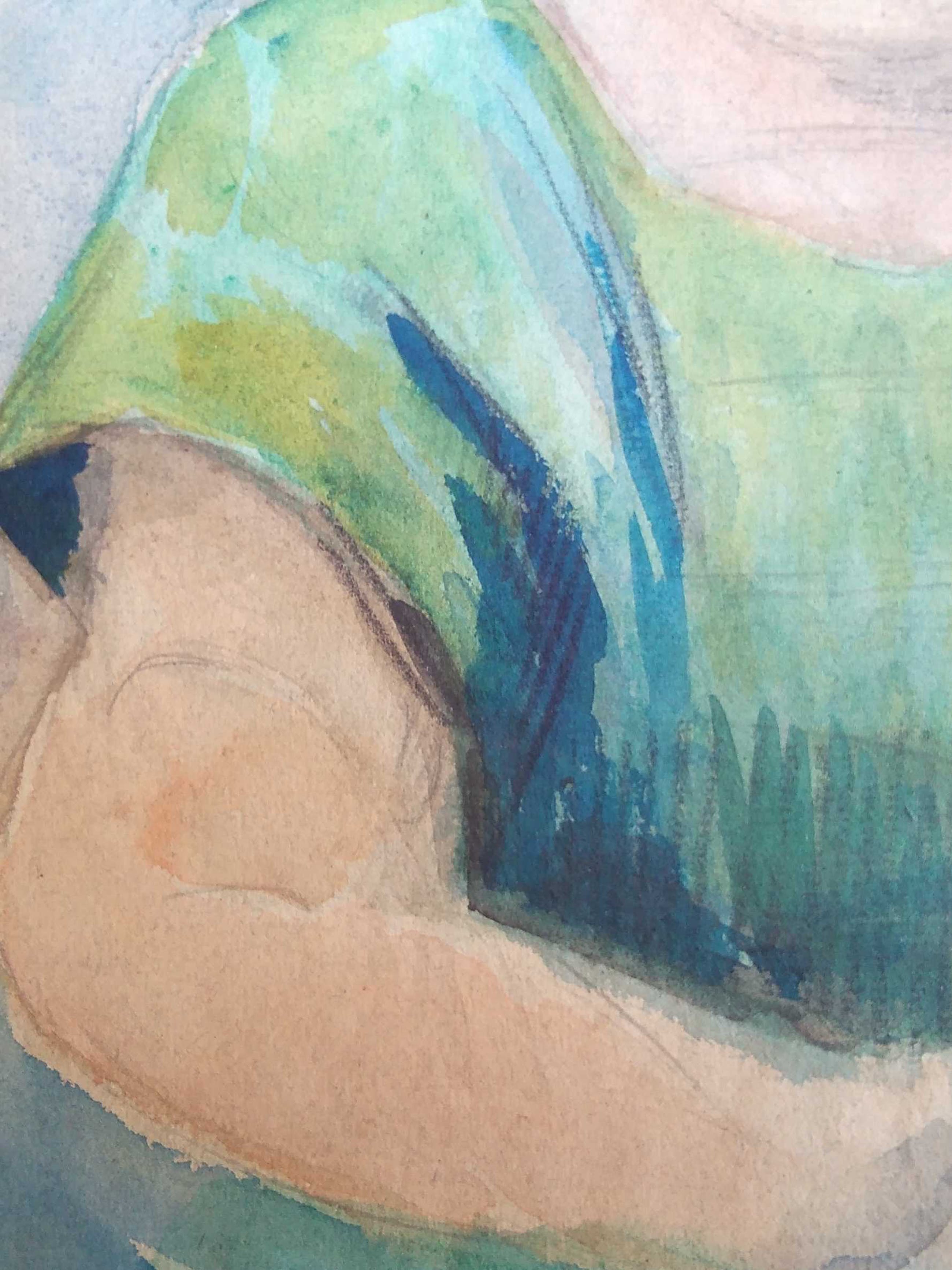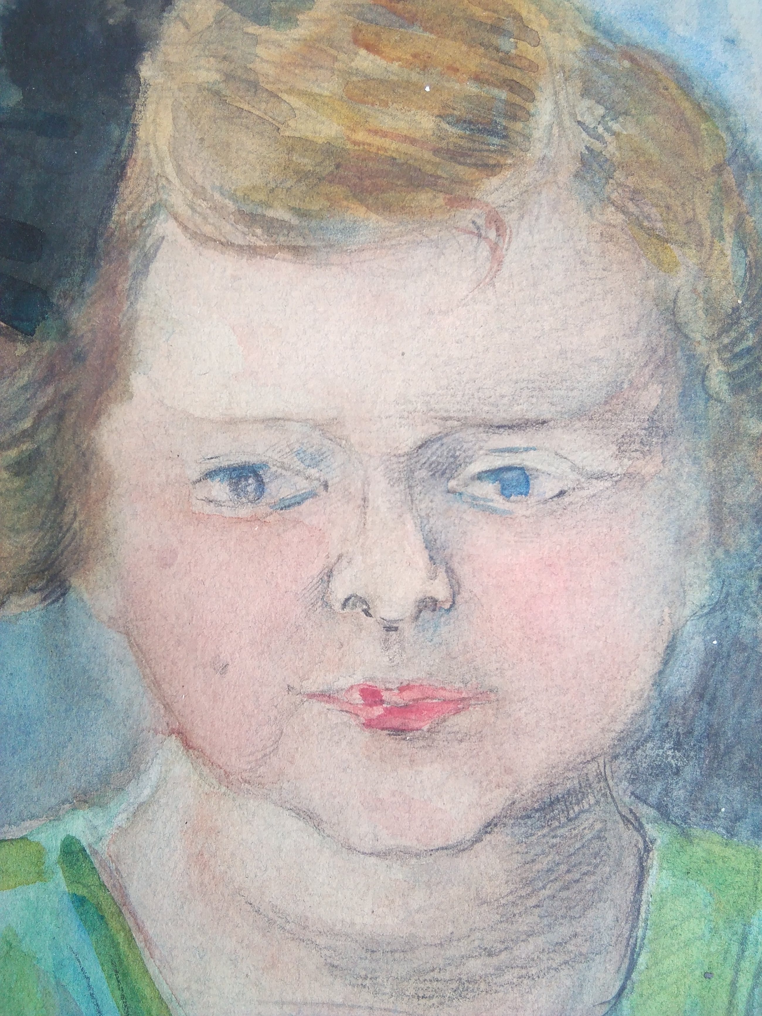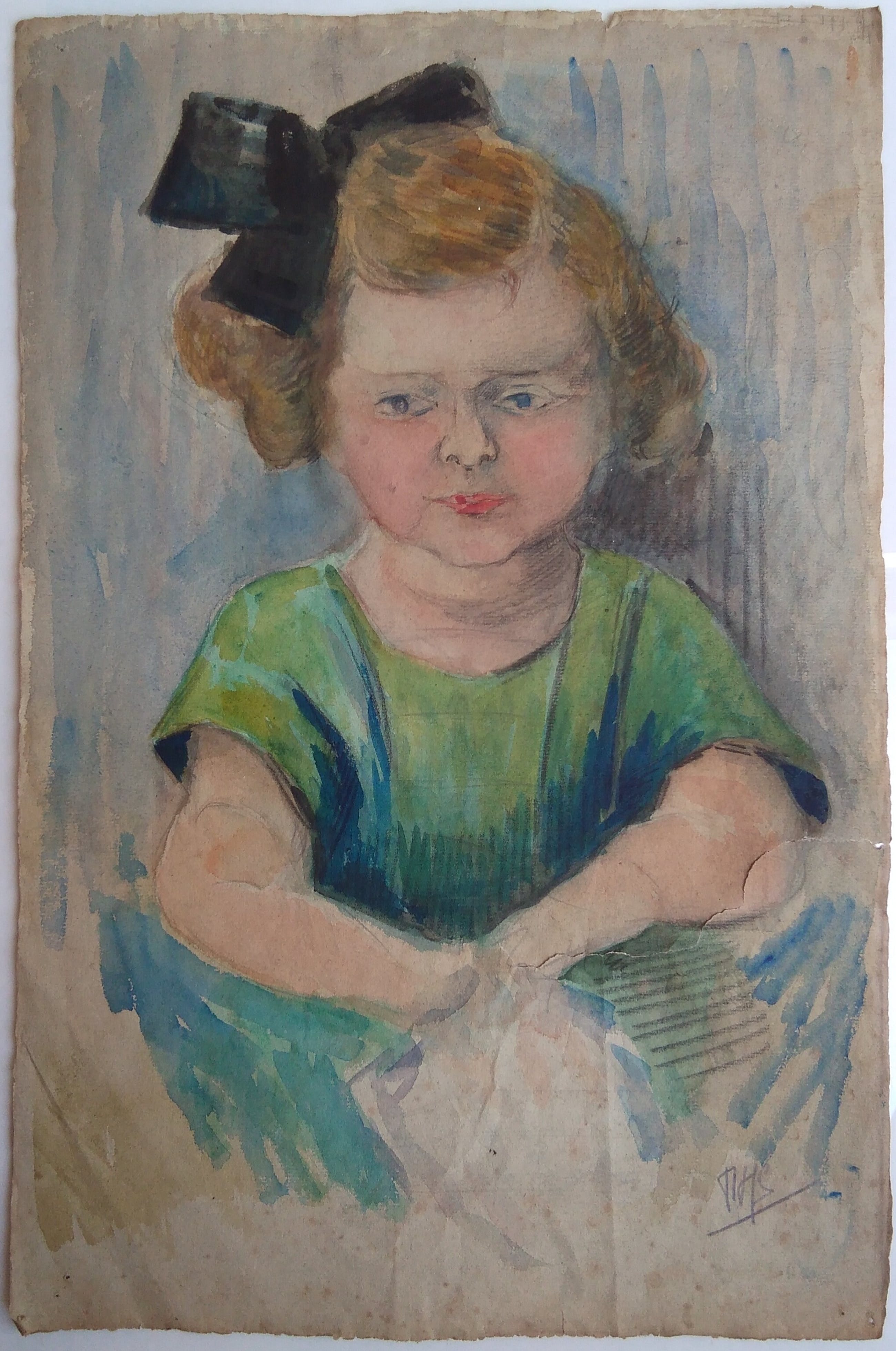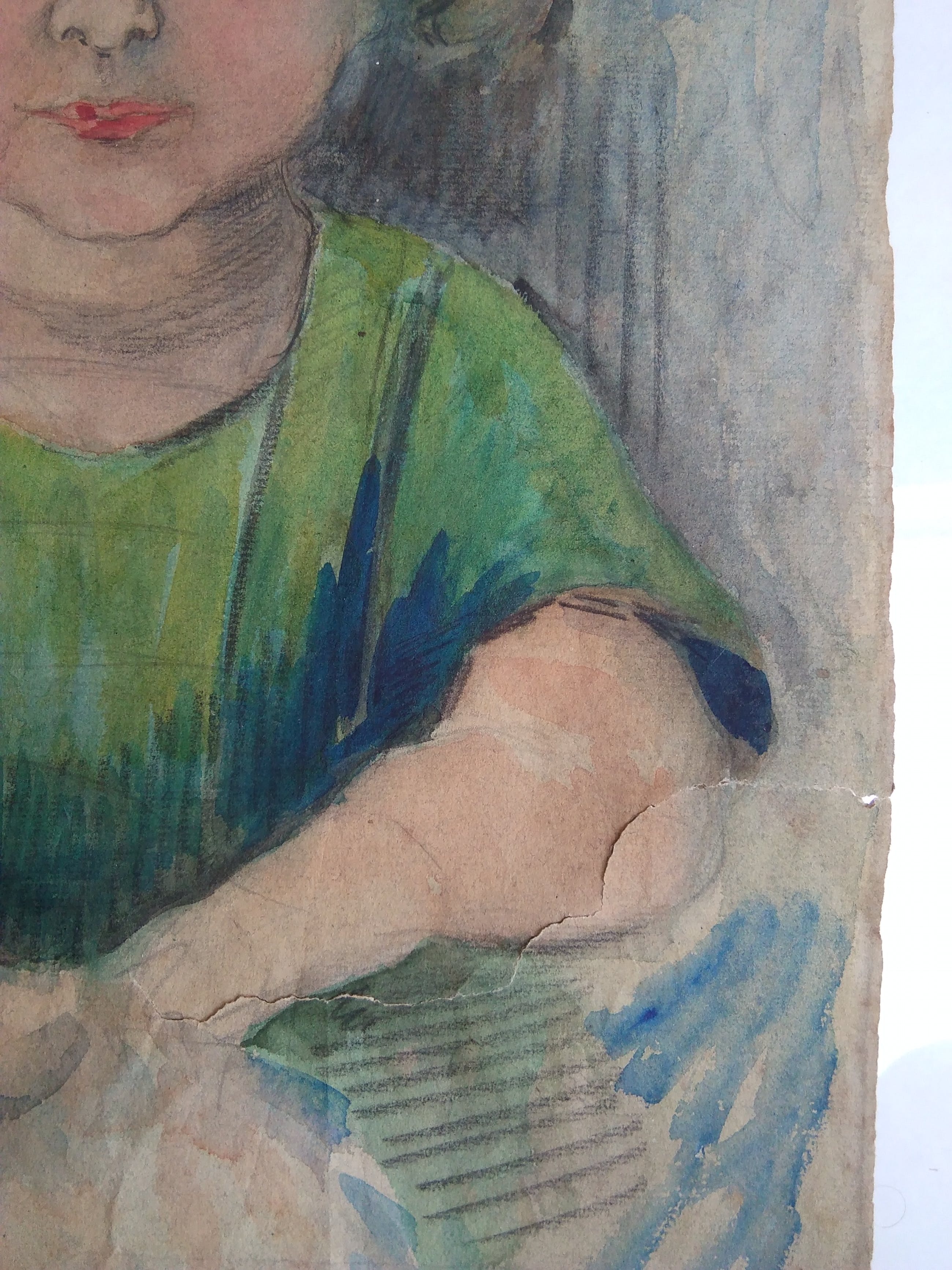 Onbekende kunstenaar aquarel. Portret van een meisje. Nb grote scheur rechterzijde. Gesigneerd r. o.