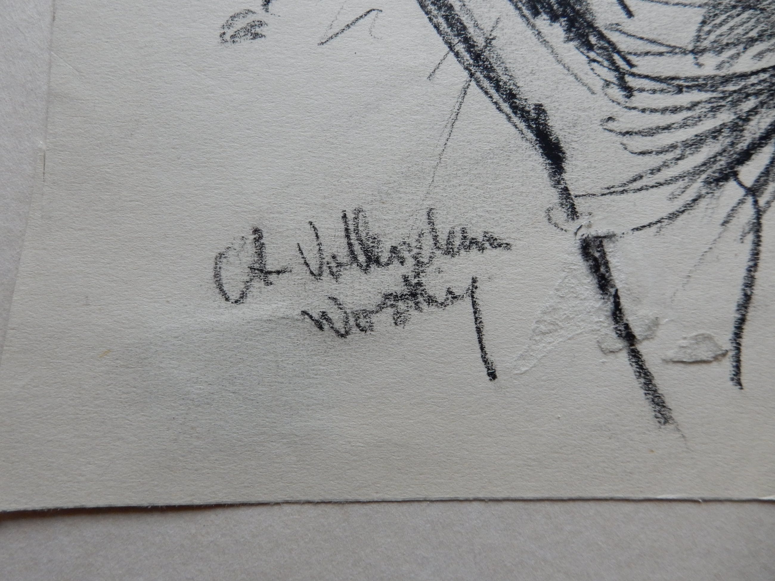 Tekening van een Volendamse visser. Getiteld en gesigneerd, waarschijnlijk ook voorzien van de naam van de geportretteerde. Tekening is in goede conditie, klein ruw plekje aanwezig op het papier, zie foto