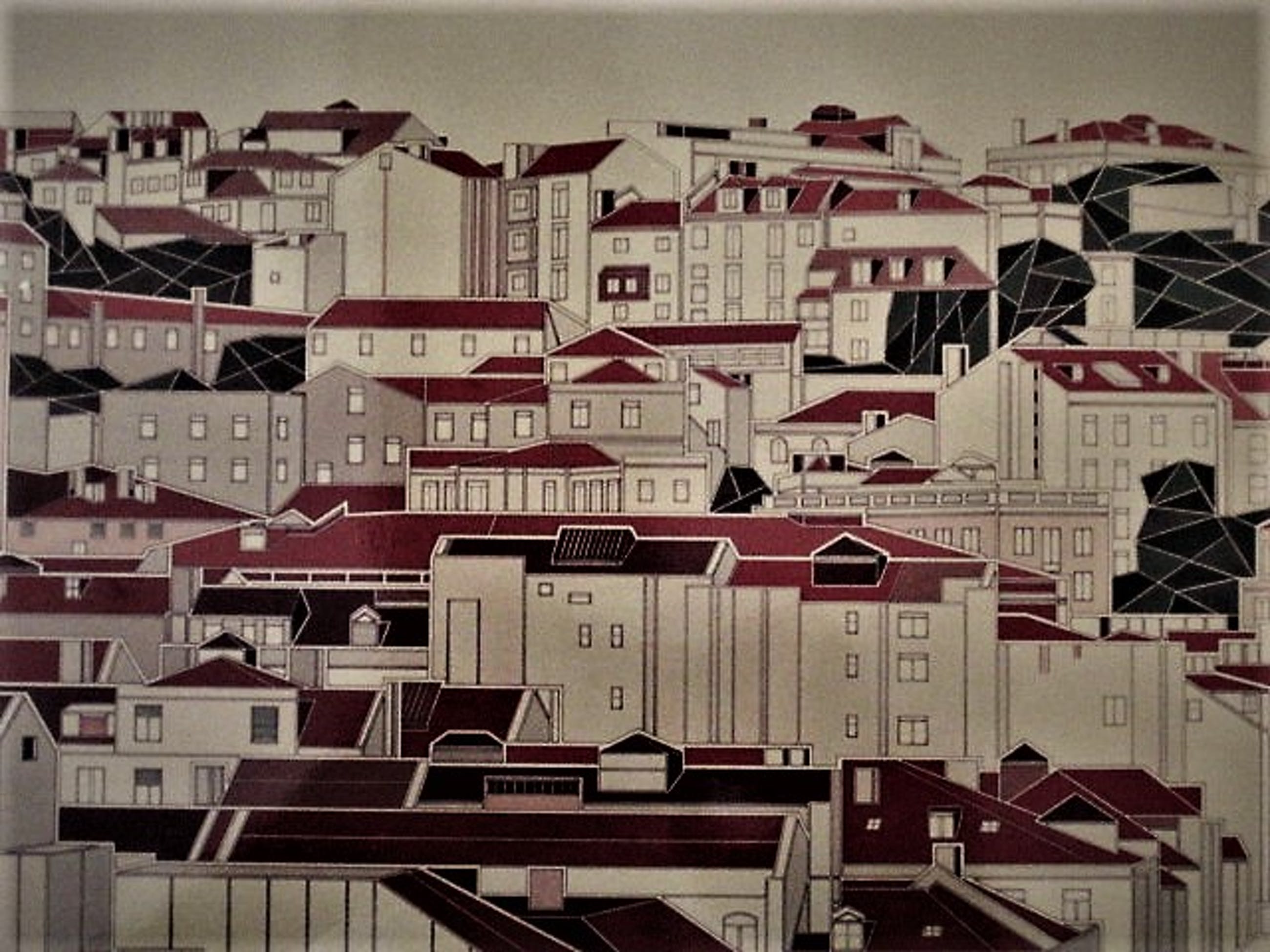 • Unica (1e van totaal 5 exemplaren) handgekleurde Lithografie "Lisboa serie II" gesigneerd E ribeiro 1984.
