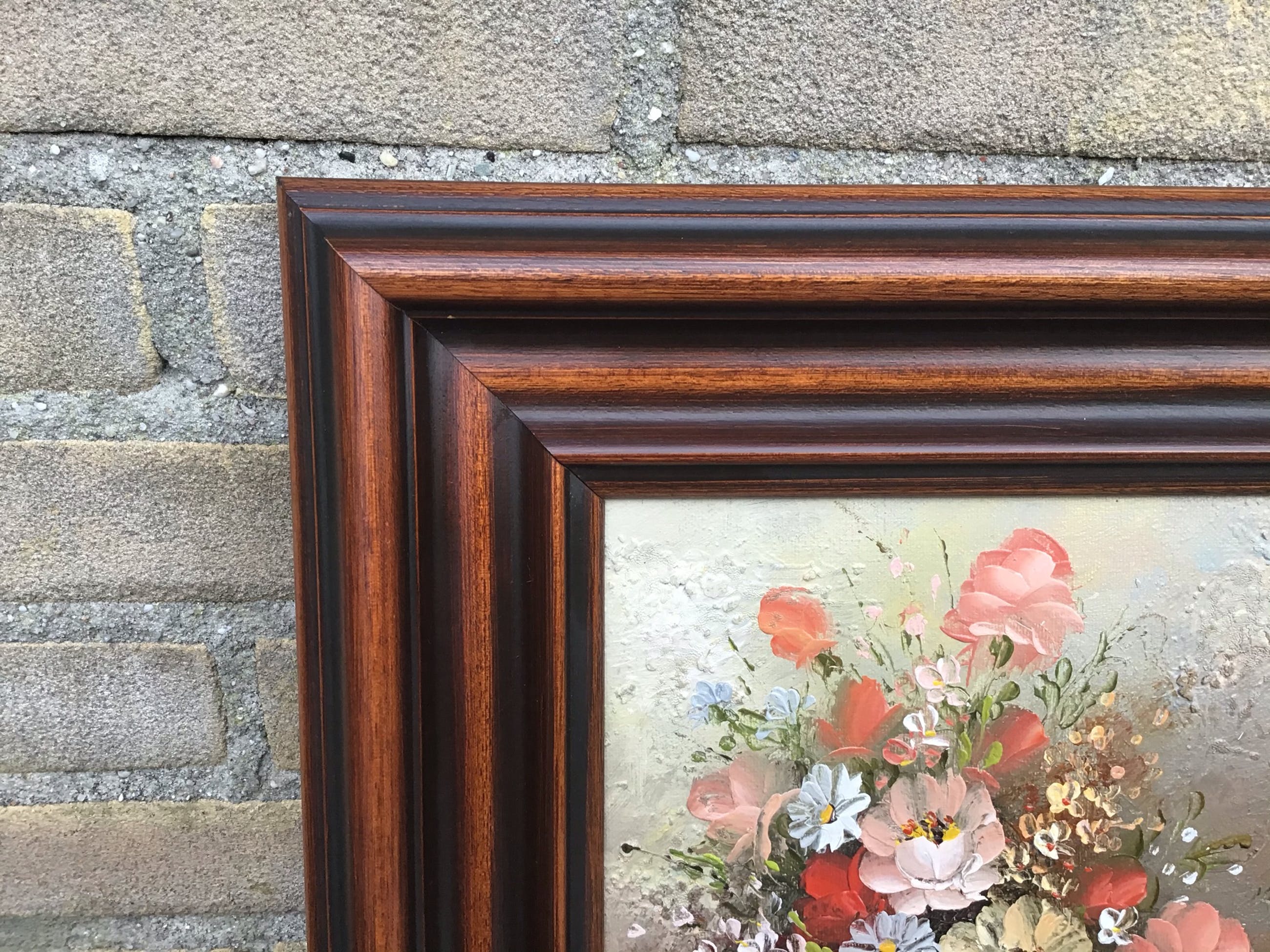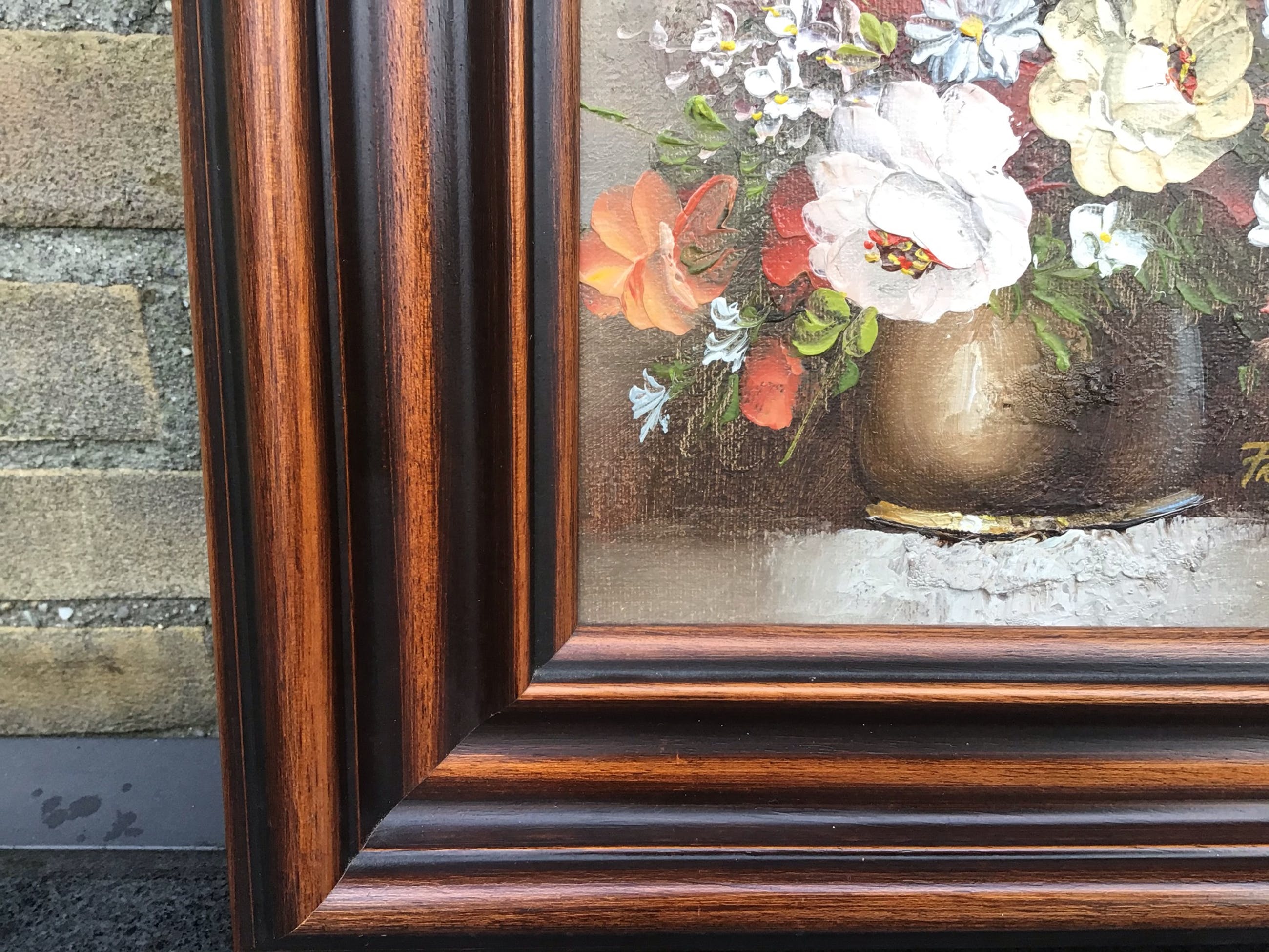 Fraai klein stilleven. Perfect in orde, verf en lijst. Gemengde techniek, penseel en paletmes.