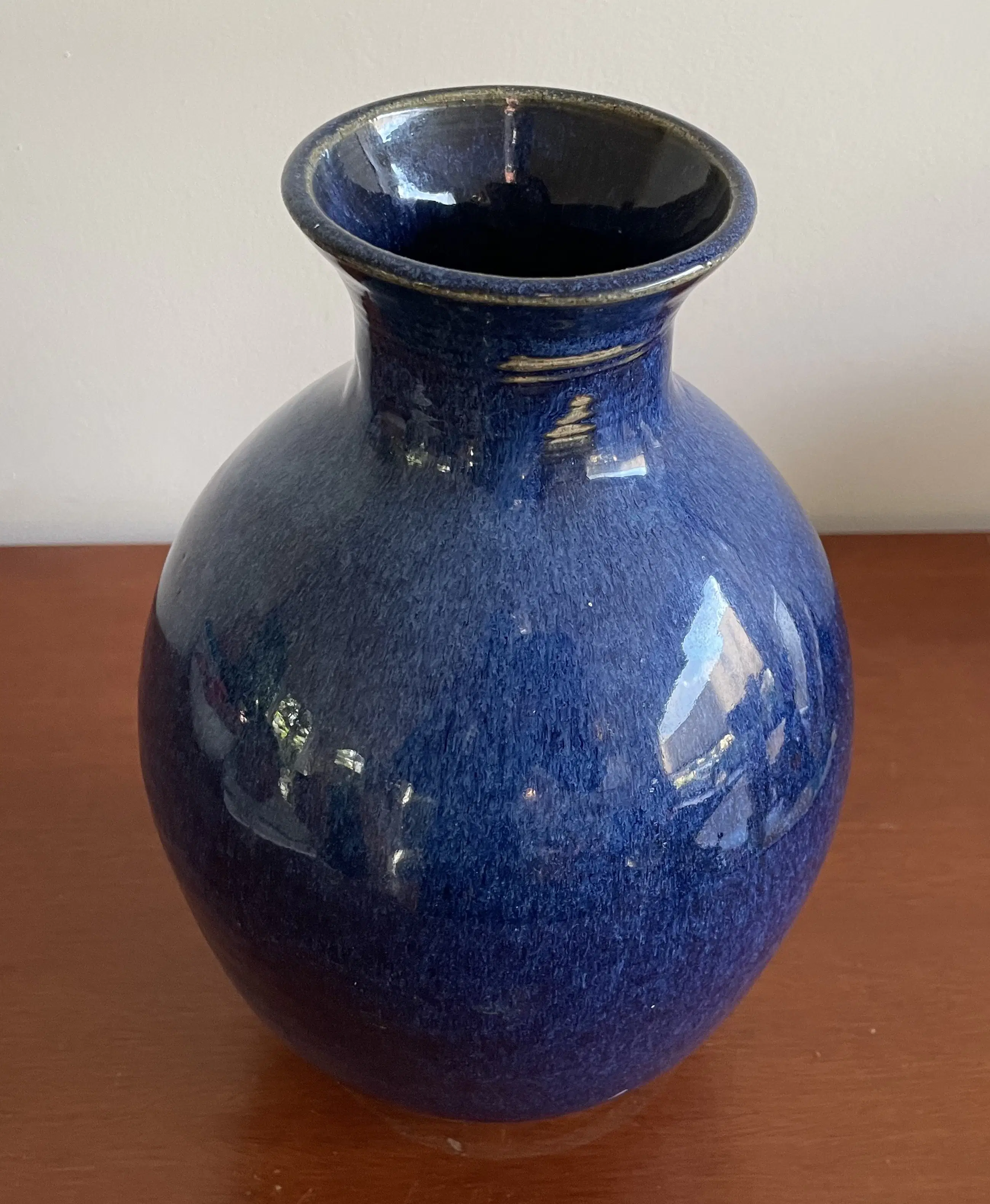 Blauwe studio aardewerken vaas uitgevoerd bij Pottery La Meuse uit Reuver. In perfecte conditie. Gemerkt aan de achterkant.