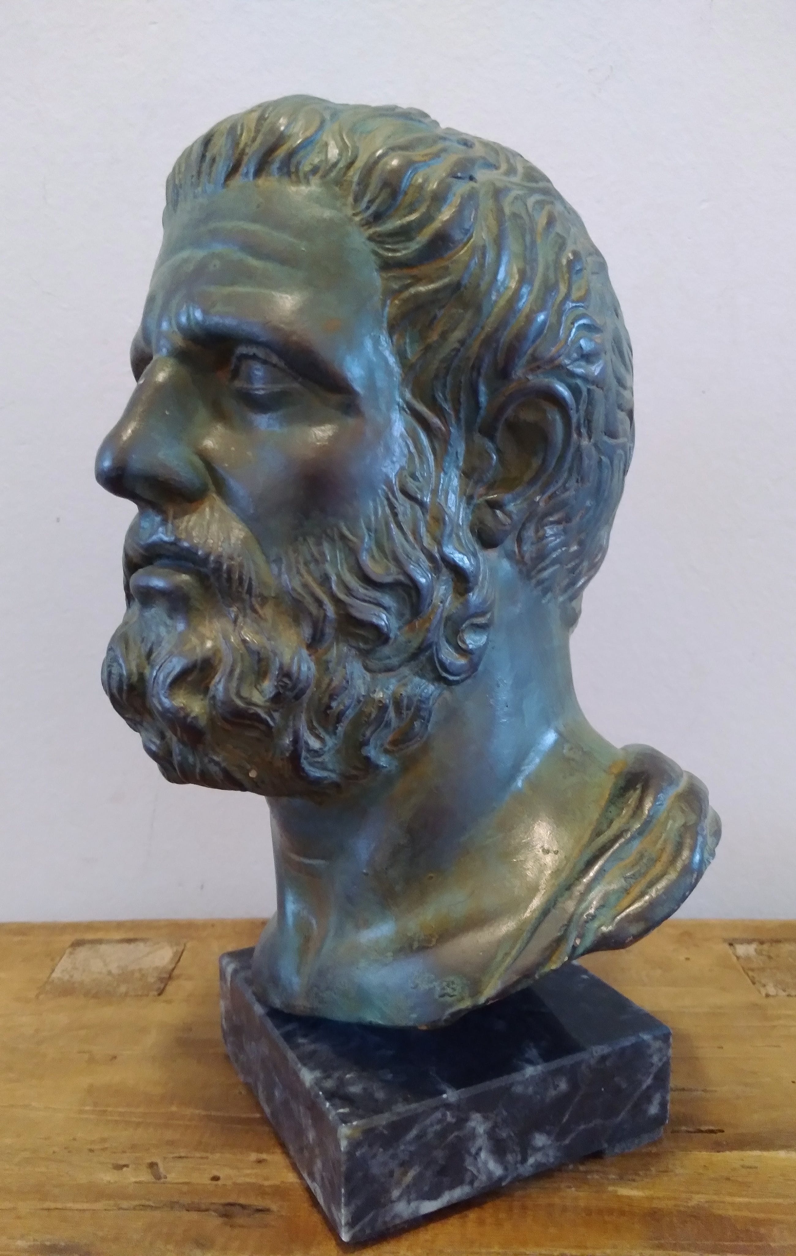 Sterke trekken, een onverzettelijke blik en een volle baard maken deze buste tot een aantrekkelijk item.