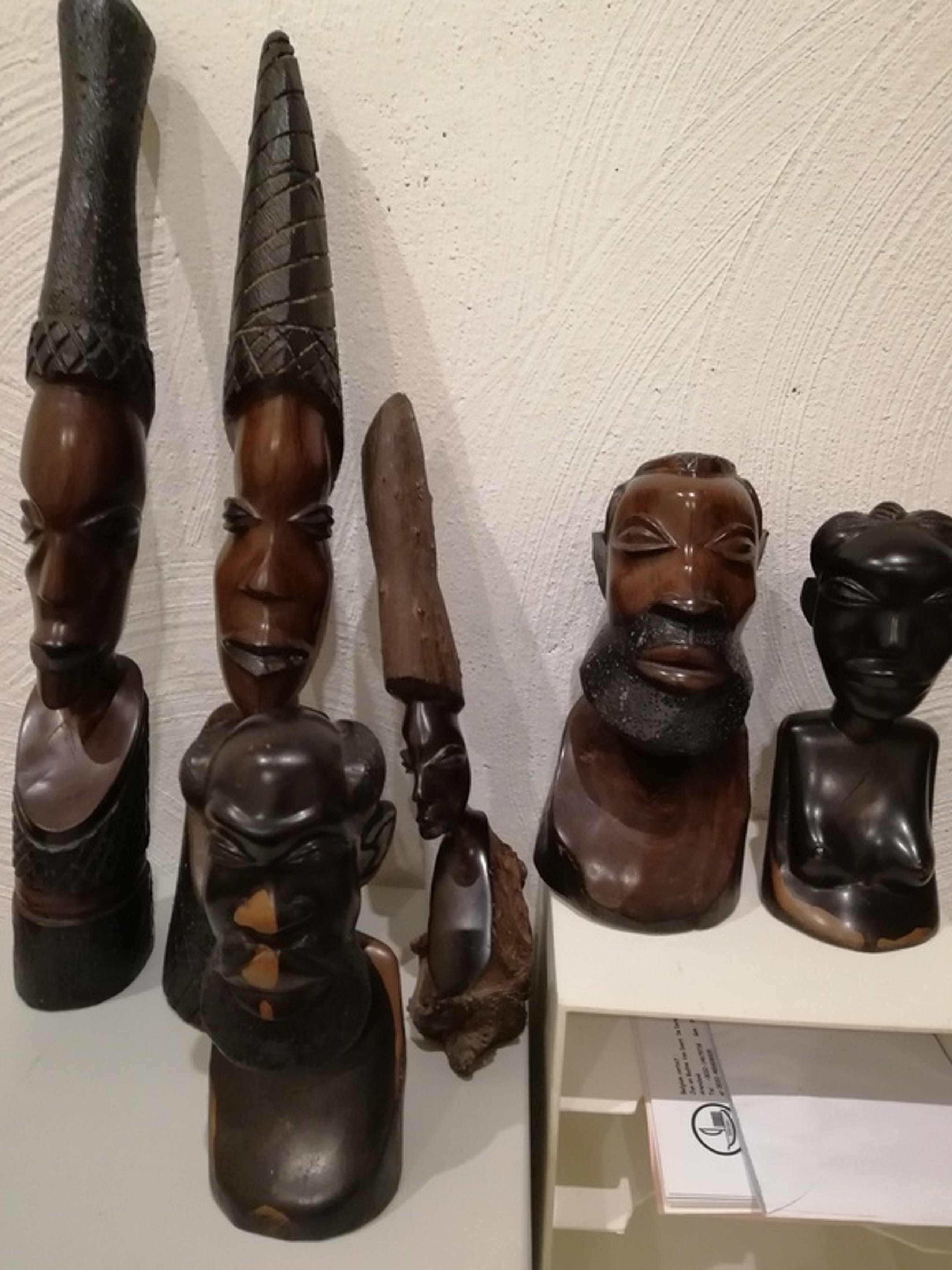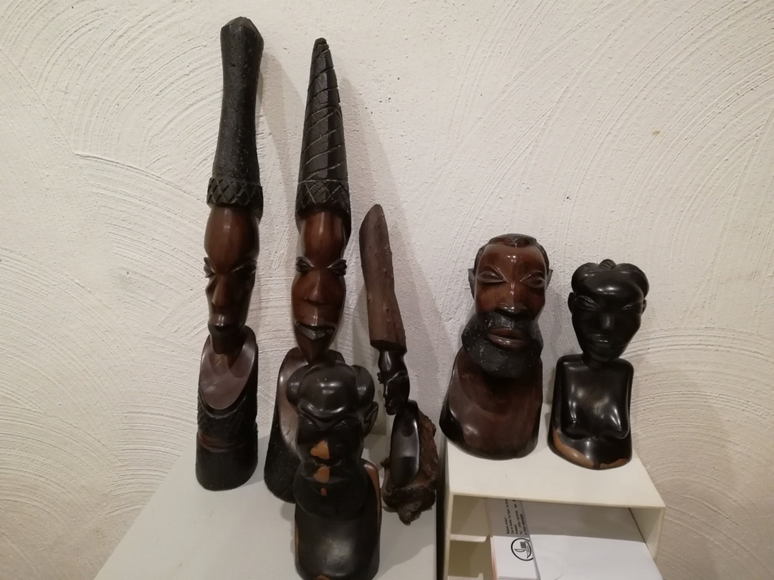 Prachtig lot van zes handgesneden Afrikaanse beelden,