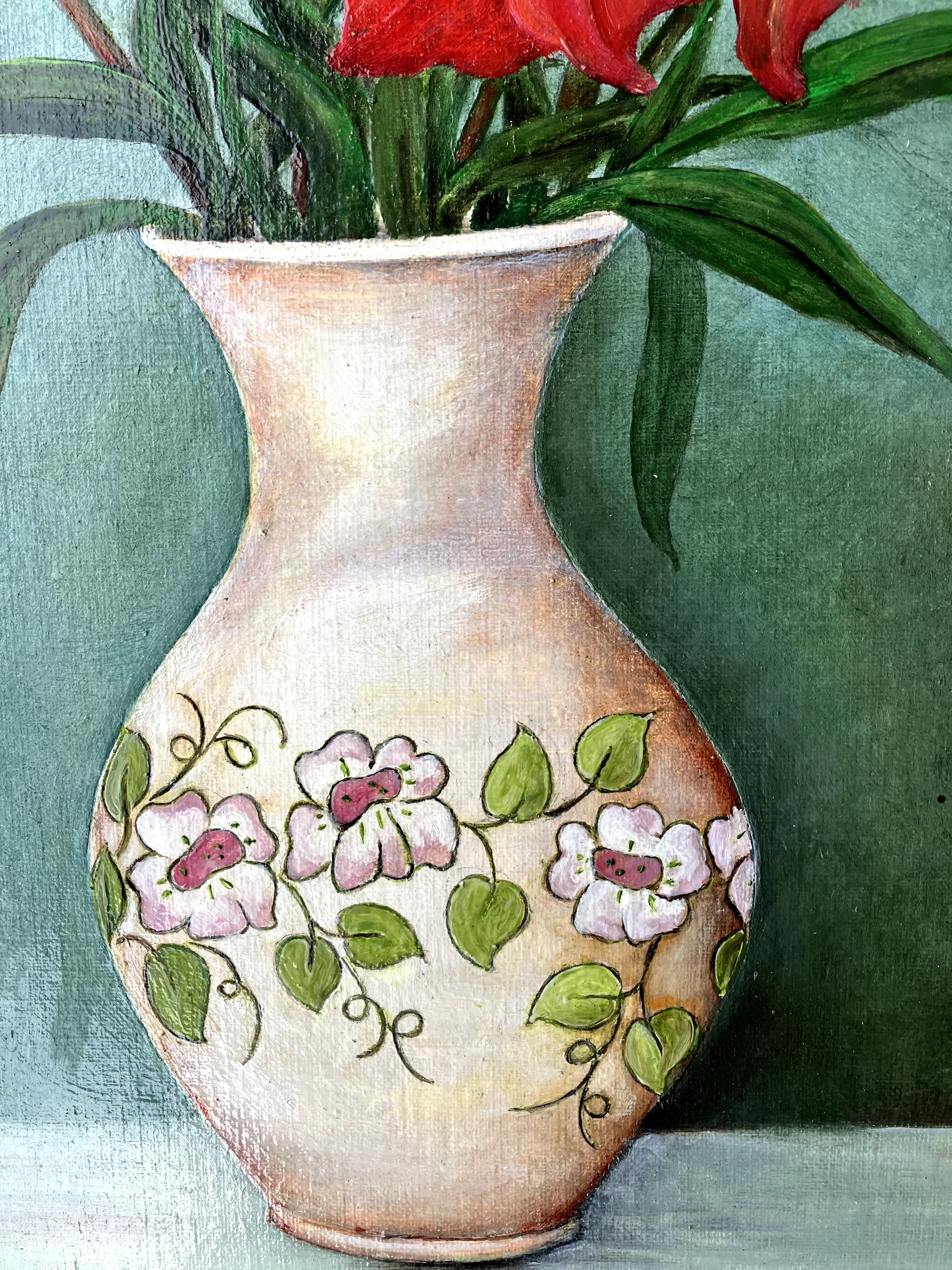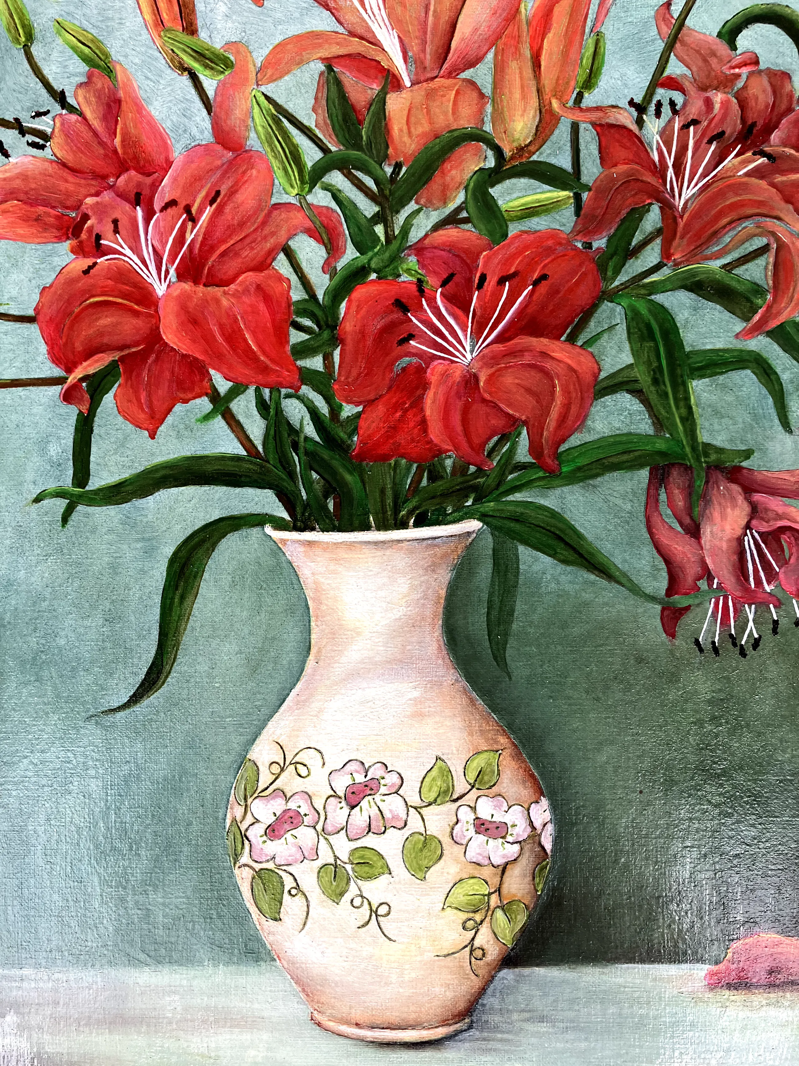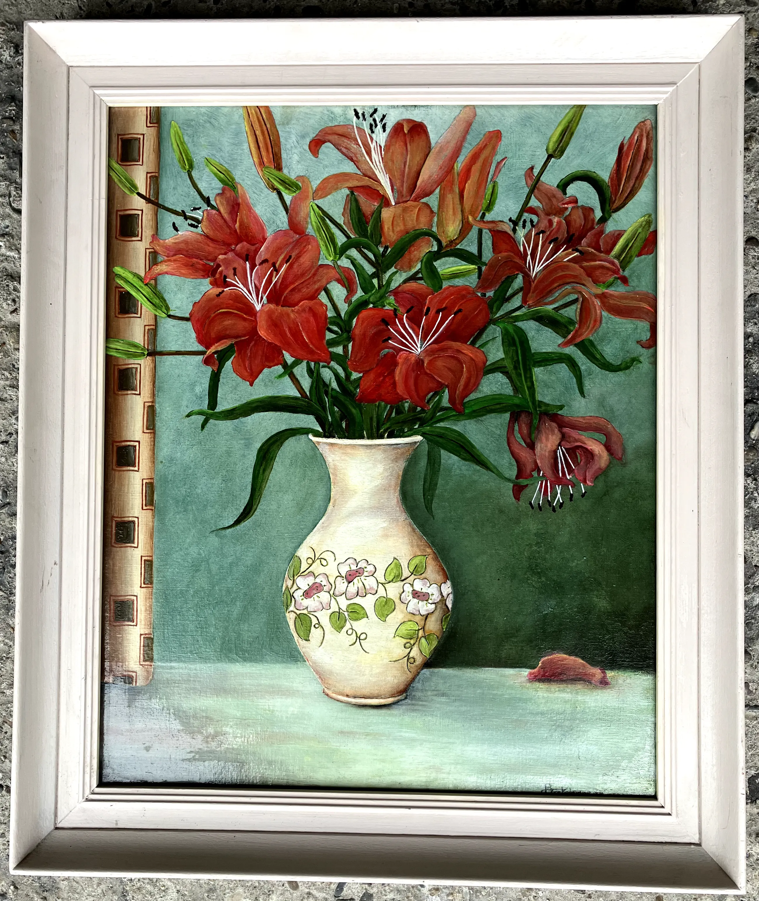Onbekend - Prachtig schilderij - vaas met lelies - Verkocht
