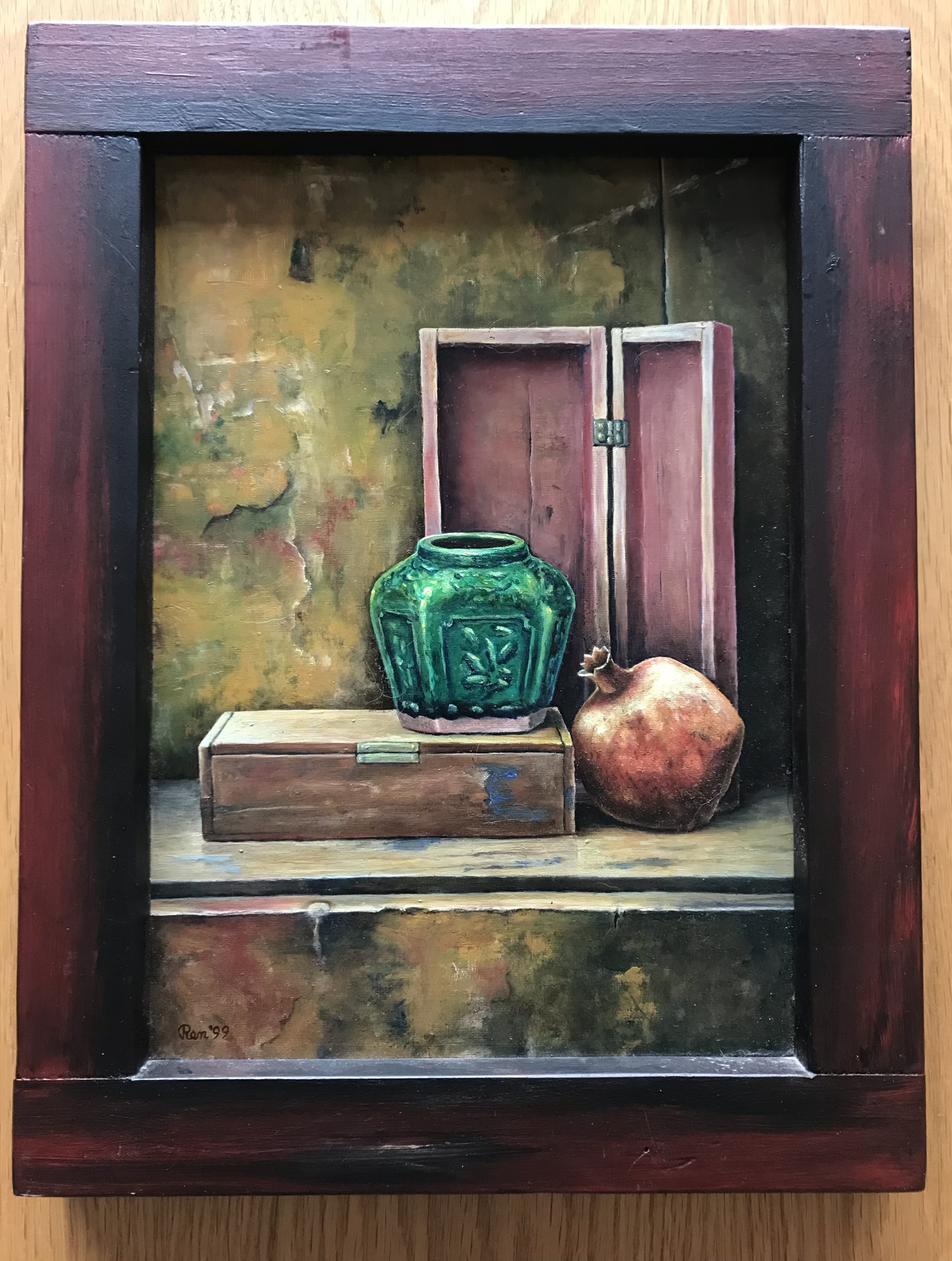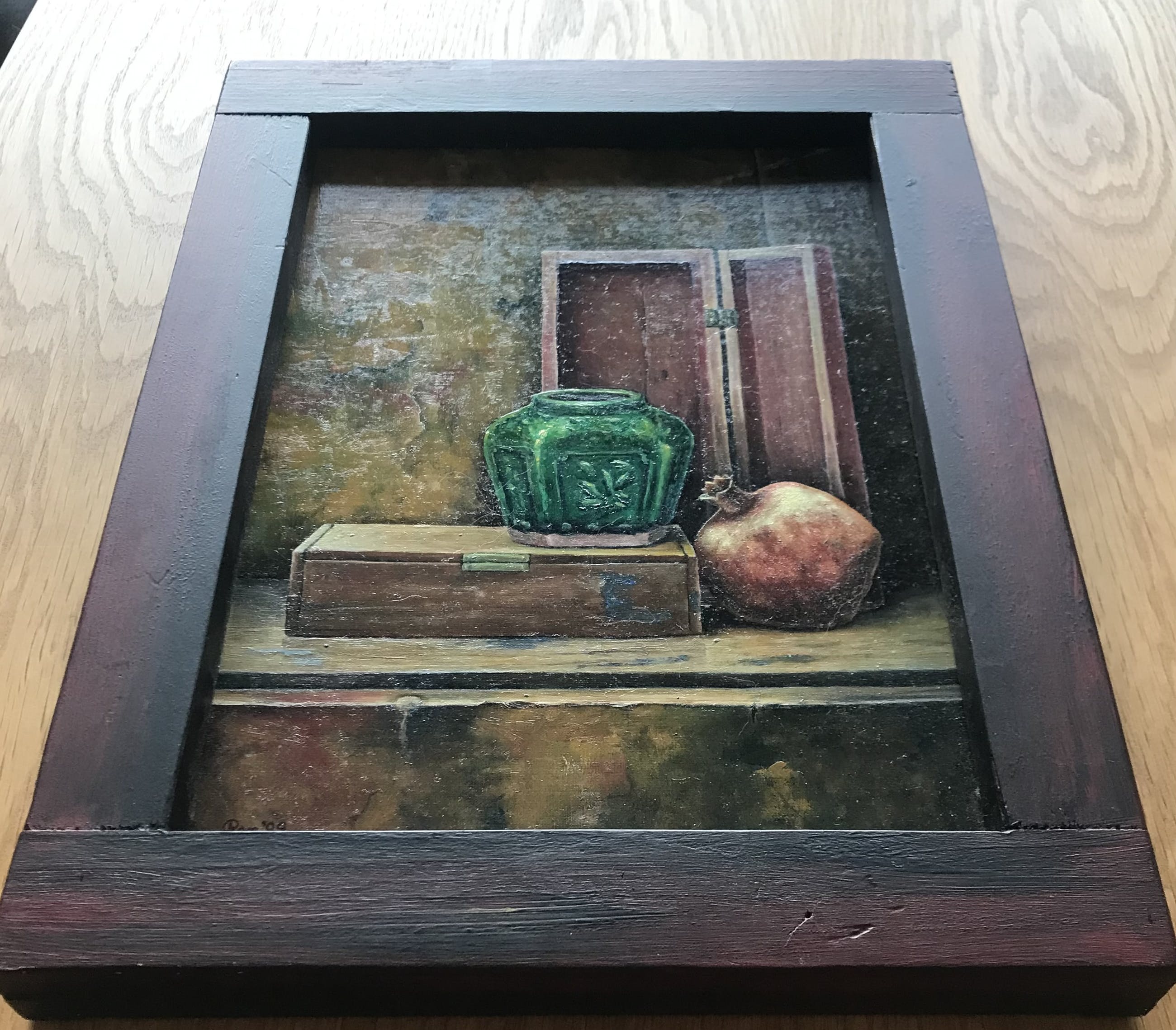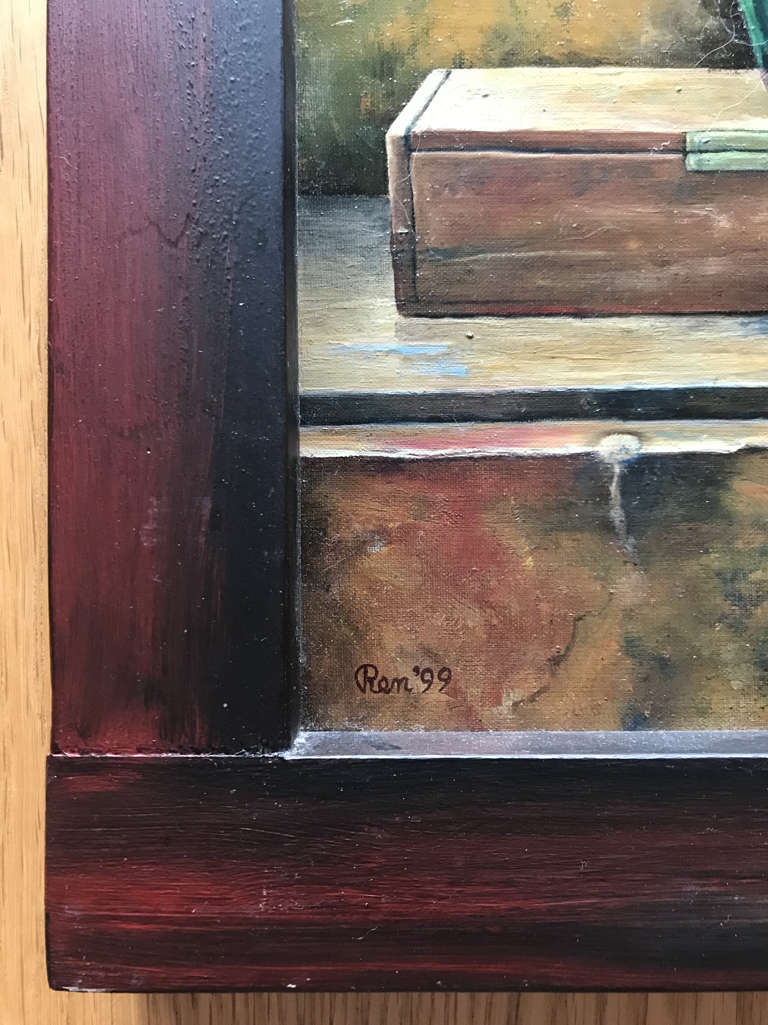 Aangeboden een zeer mooi schilderijtje uit 1999 in zeer goede staat. Gesigneerd: "Ren" (zie foto's) Mooi ingelijst in een volgens mij zelf gemaakte lijst. Ophangklaar!