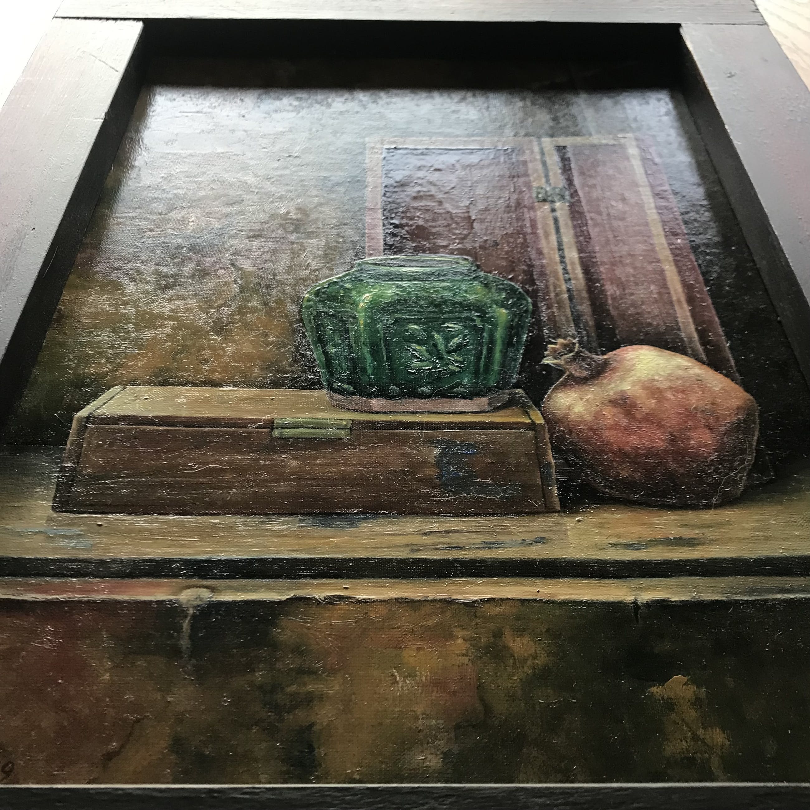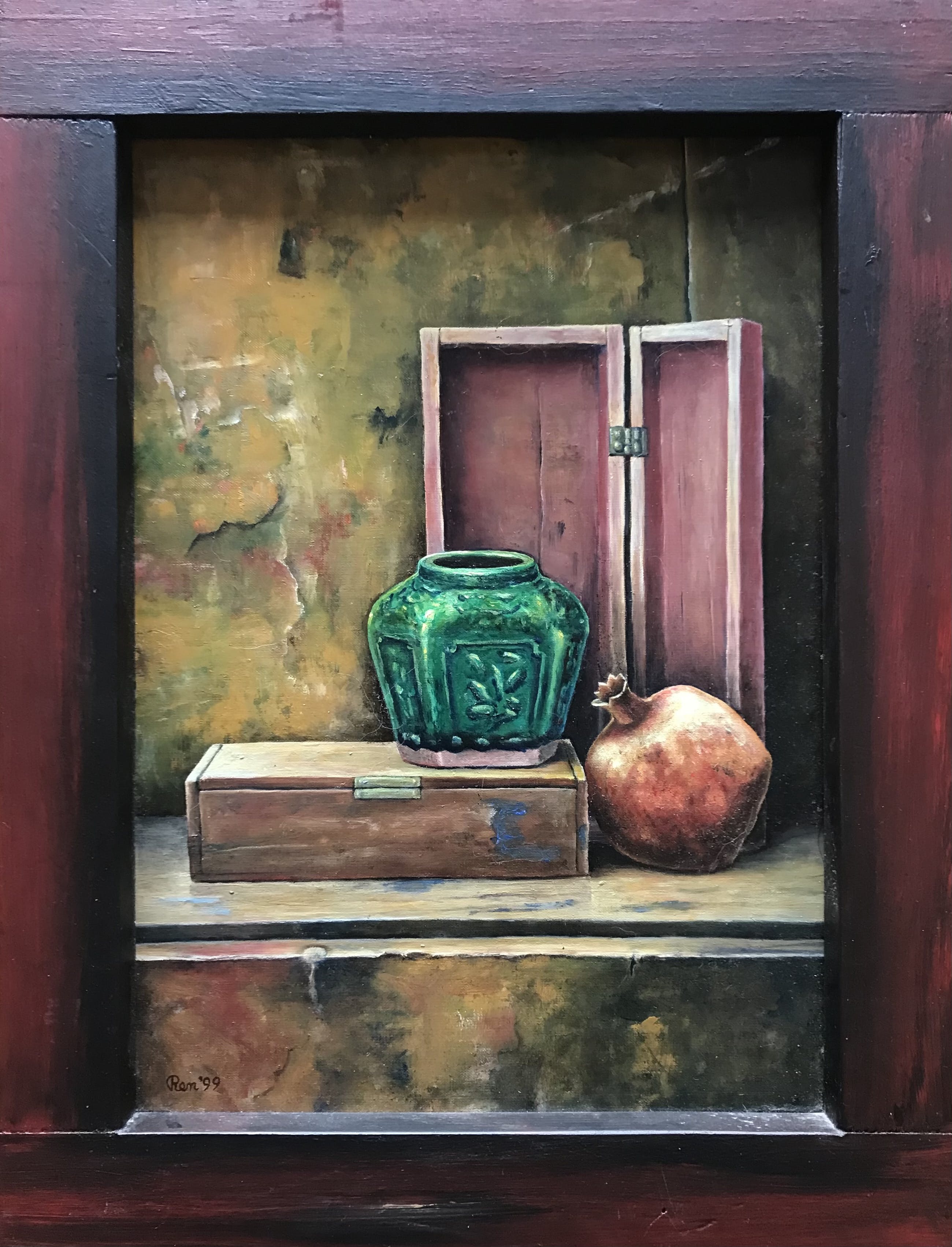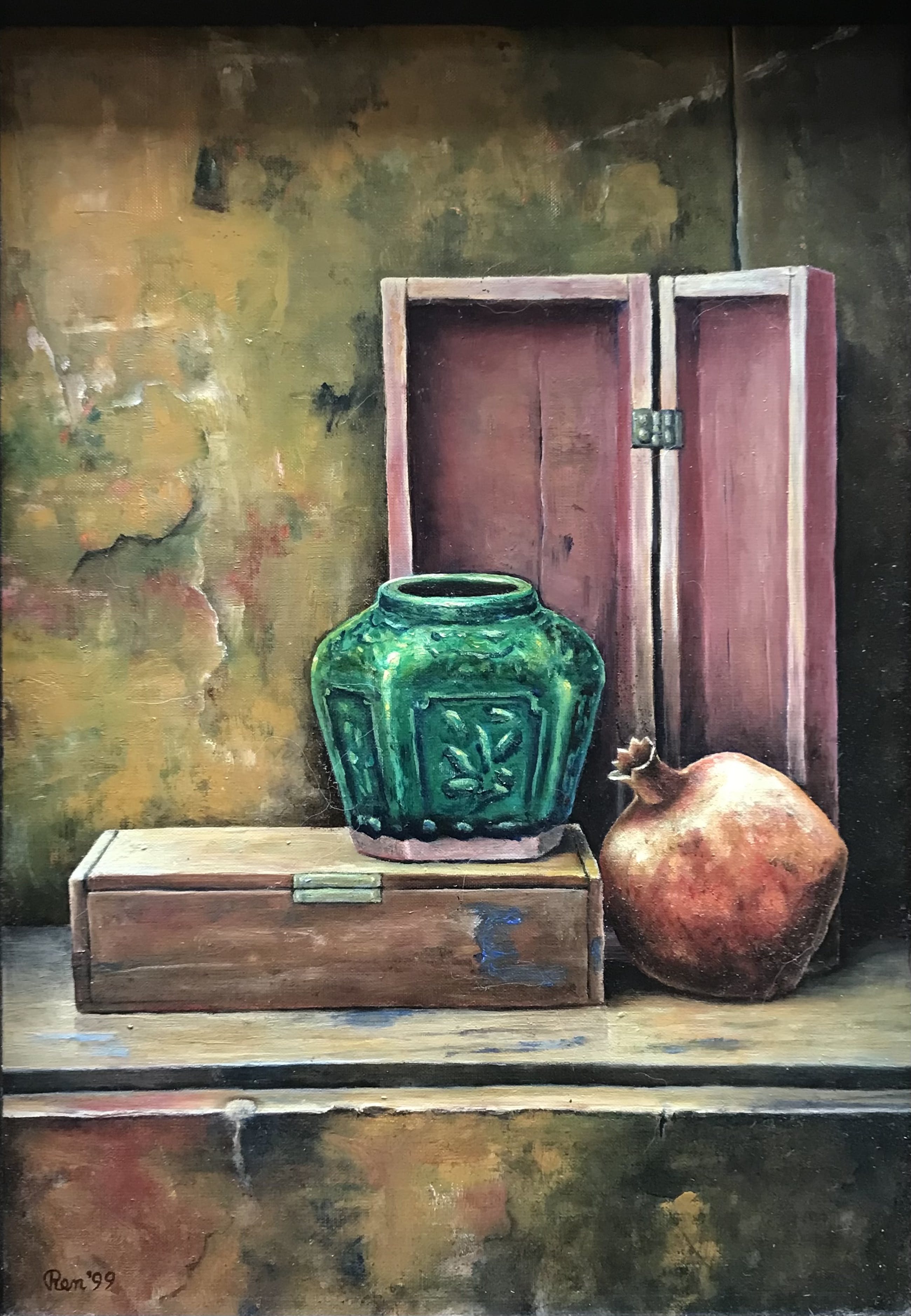 Aangeboden een zeer mooi schilderijtje uit 1999 in zeer goede staat. Gesigneerd: "Ren" (zie foto's) Mooi ingelijst in een volgens mij zelf gemaakte lijst. Ophangklaar!