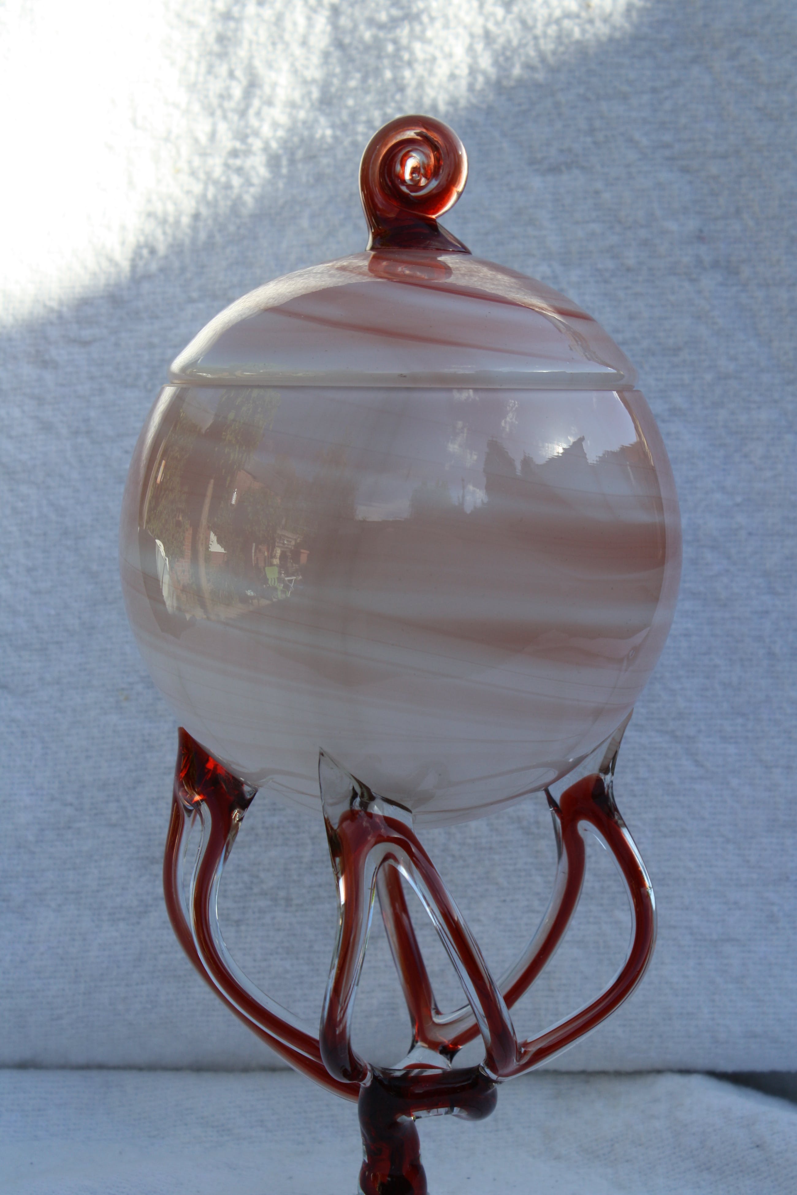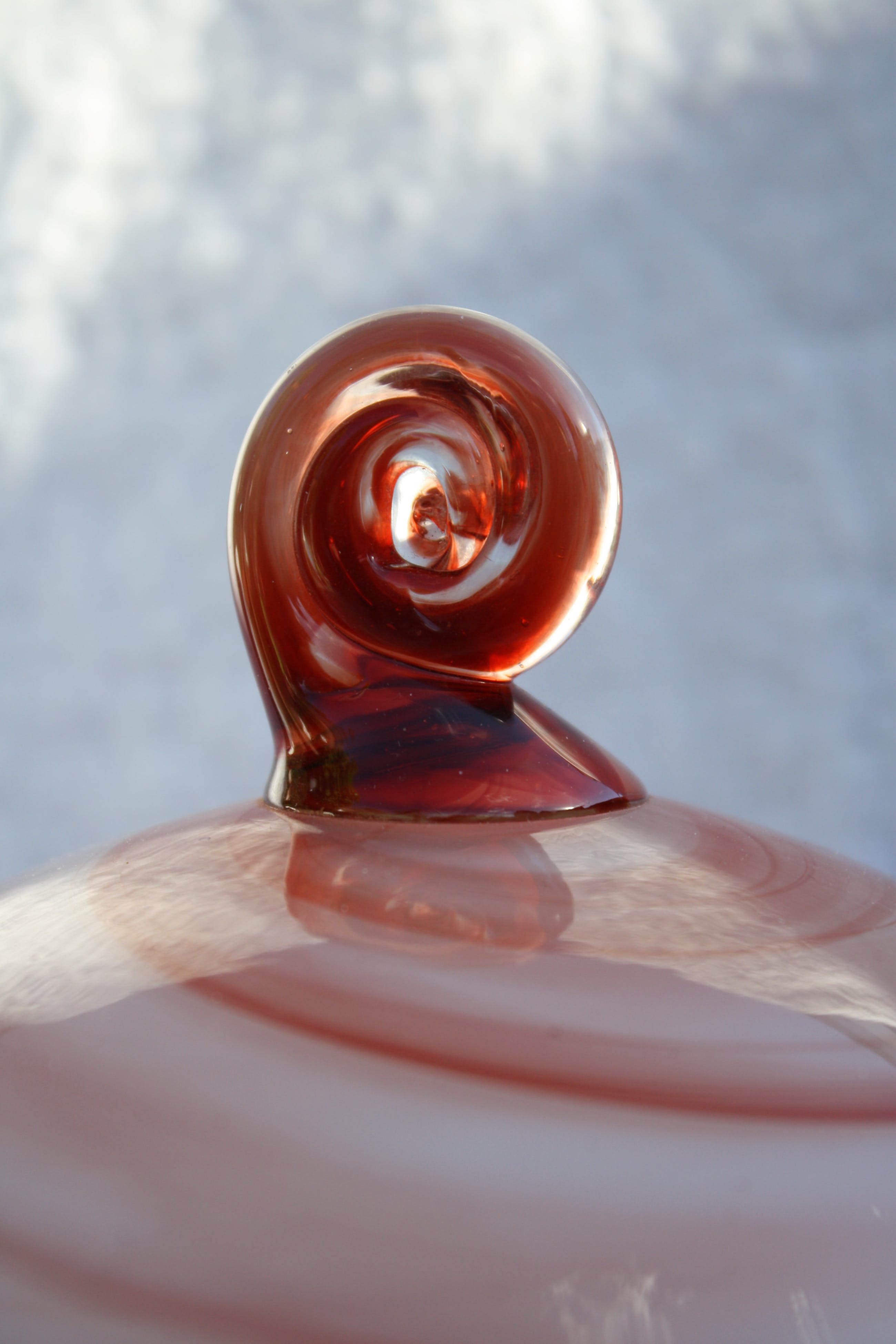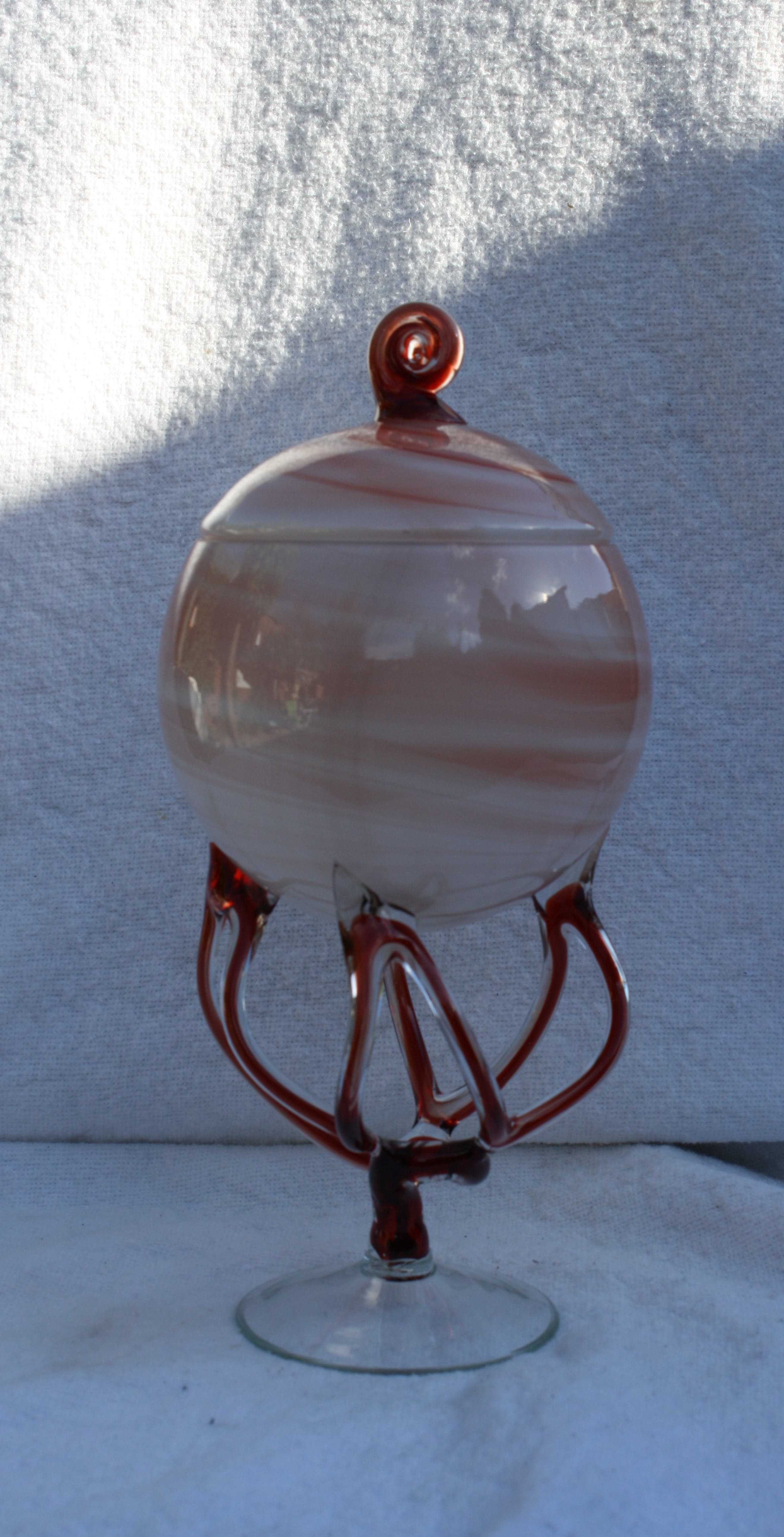 Prachtige Uitermate Zeldzame Kristallen Handgeblazen Bonbonnière in mooie Roze en Donkerrode Kleuren. Een Mooie Design uitvoering die je maar zelden tegenkomt (20e eeuw) Herkomst ergens uit Europa. Kijk goed naar de fotos waar men alle detials kan waarnemen. Afmeting Hoog 37cm en 16cm Breed. Gewicht is 1300 Gram. Wordt Aangetekend opgestuurd met post.nl met trake en trace. Uiteraard wordt dit zeer goed verpakt.