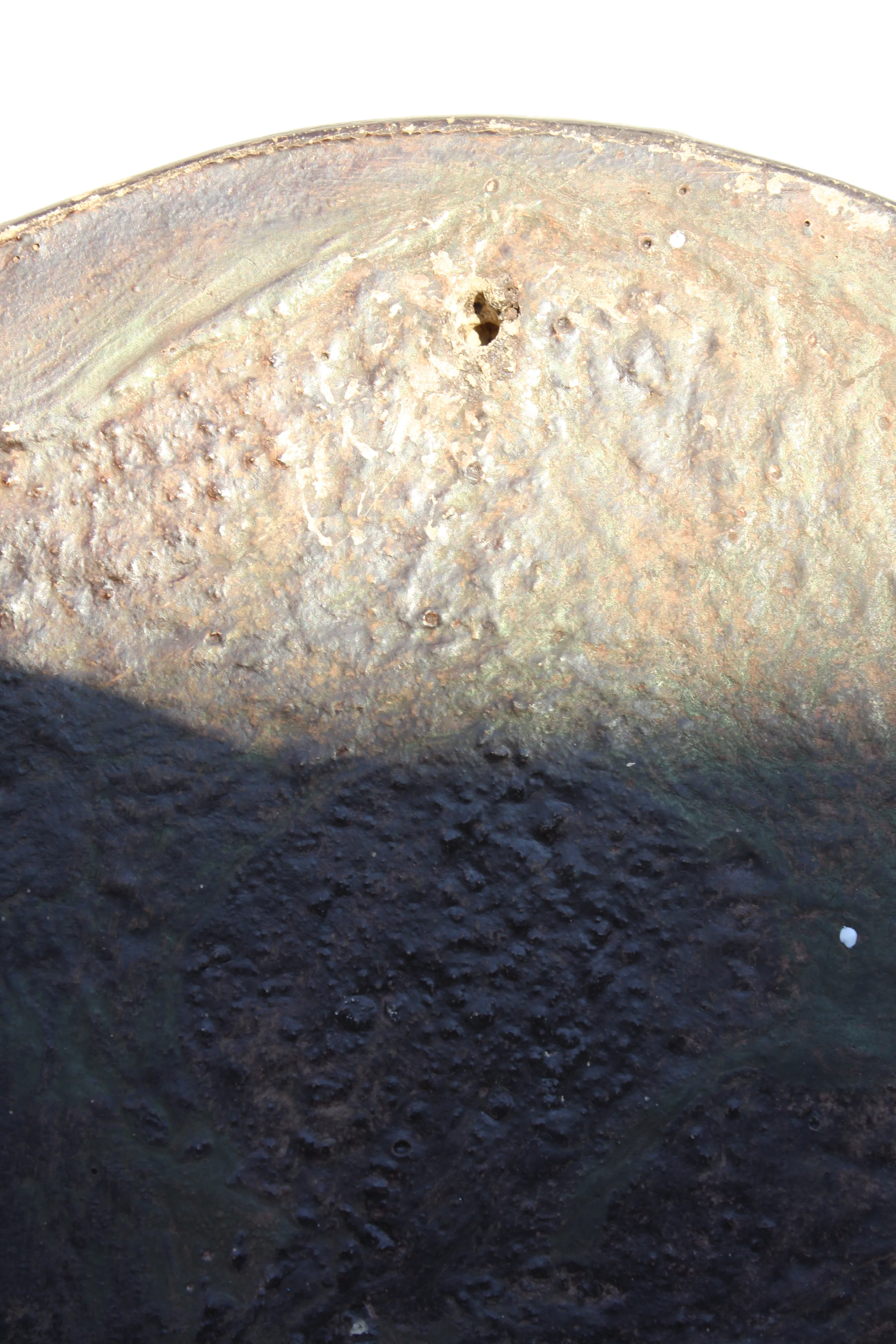 Prachtige Grote Ronde Aardewerken Muur Plaquette Middeleeuwse Voorstelling die zijn Vuur Verguld
