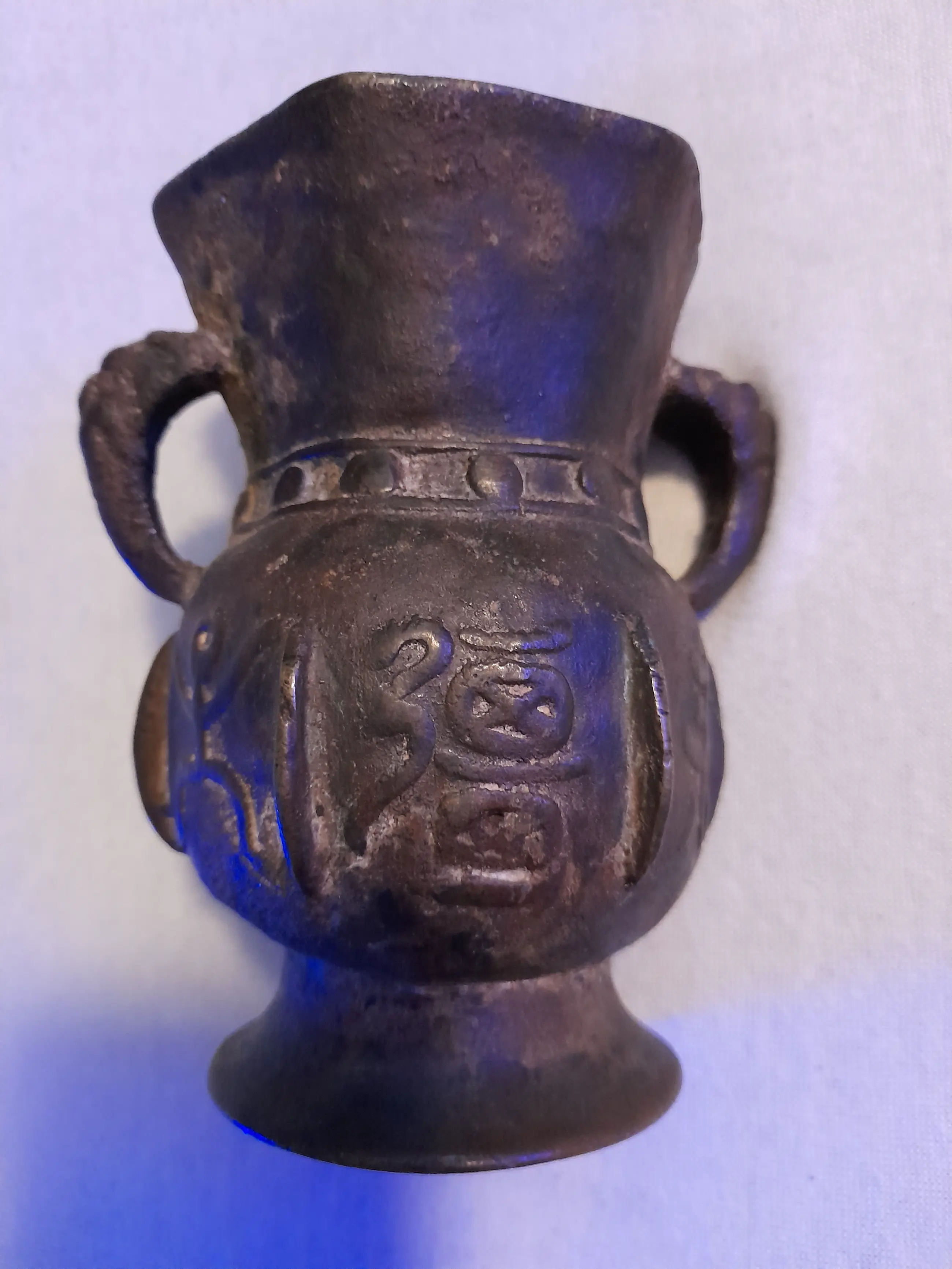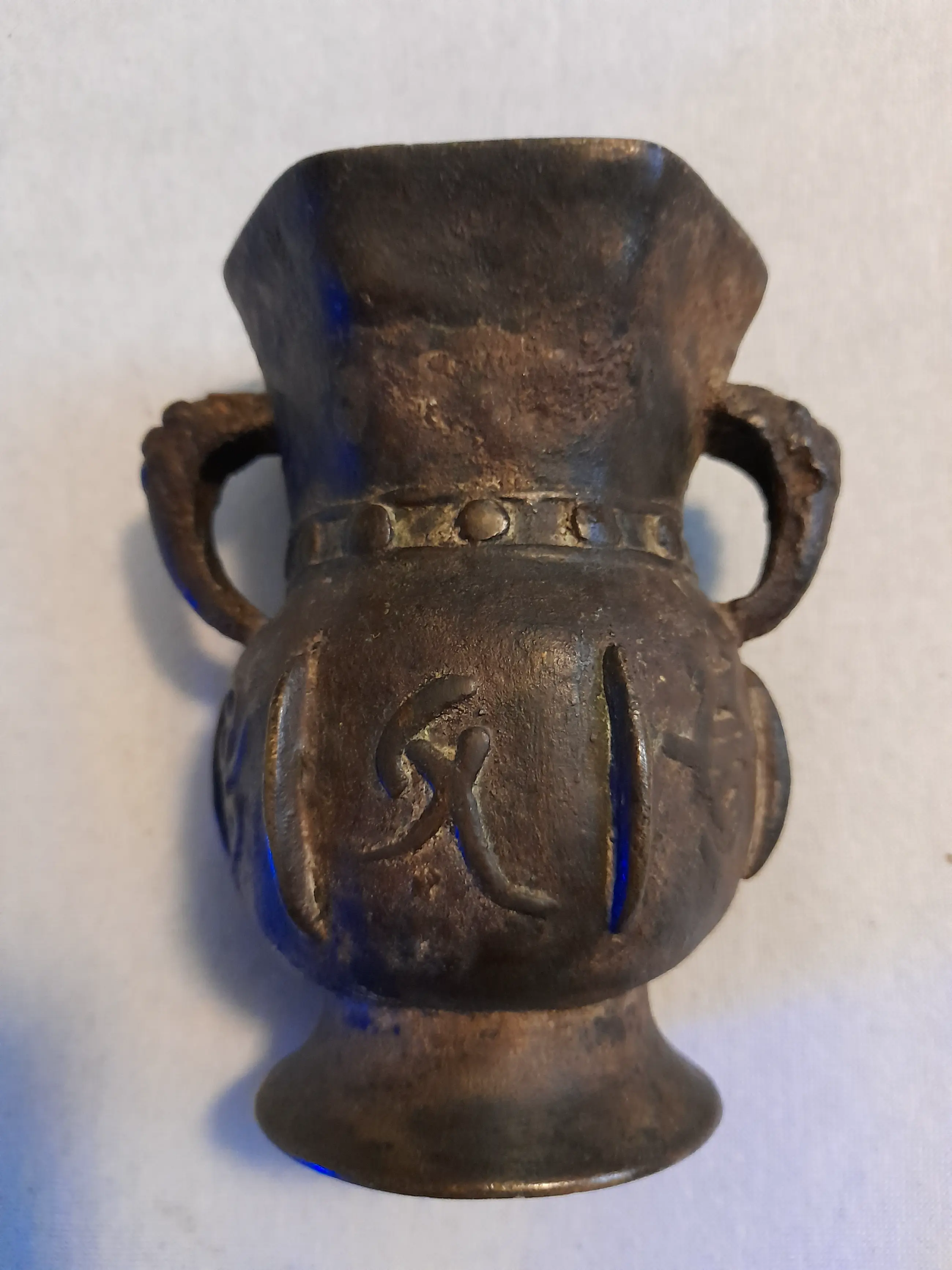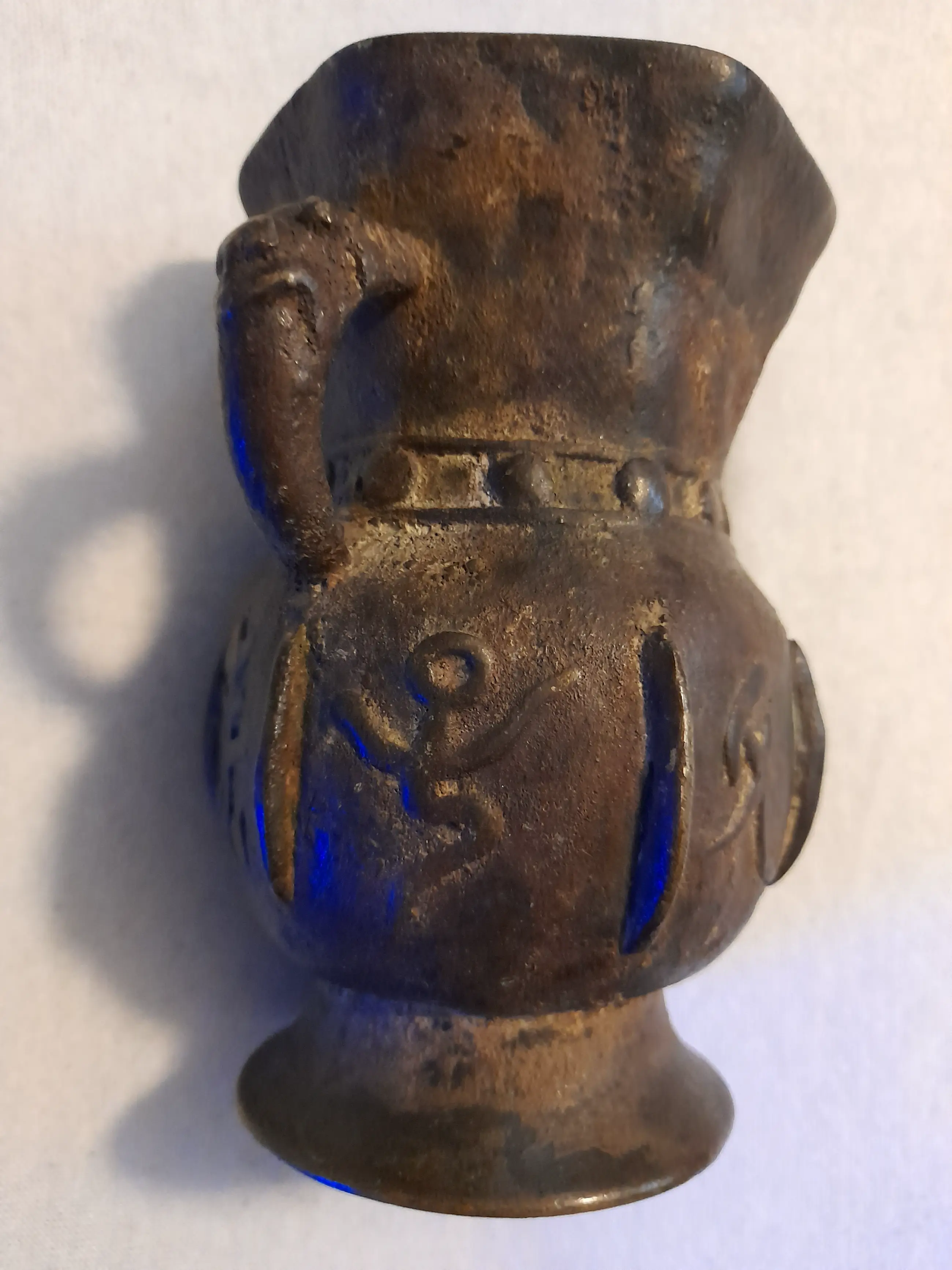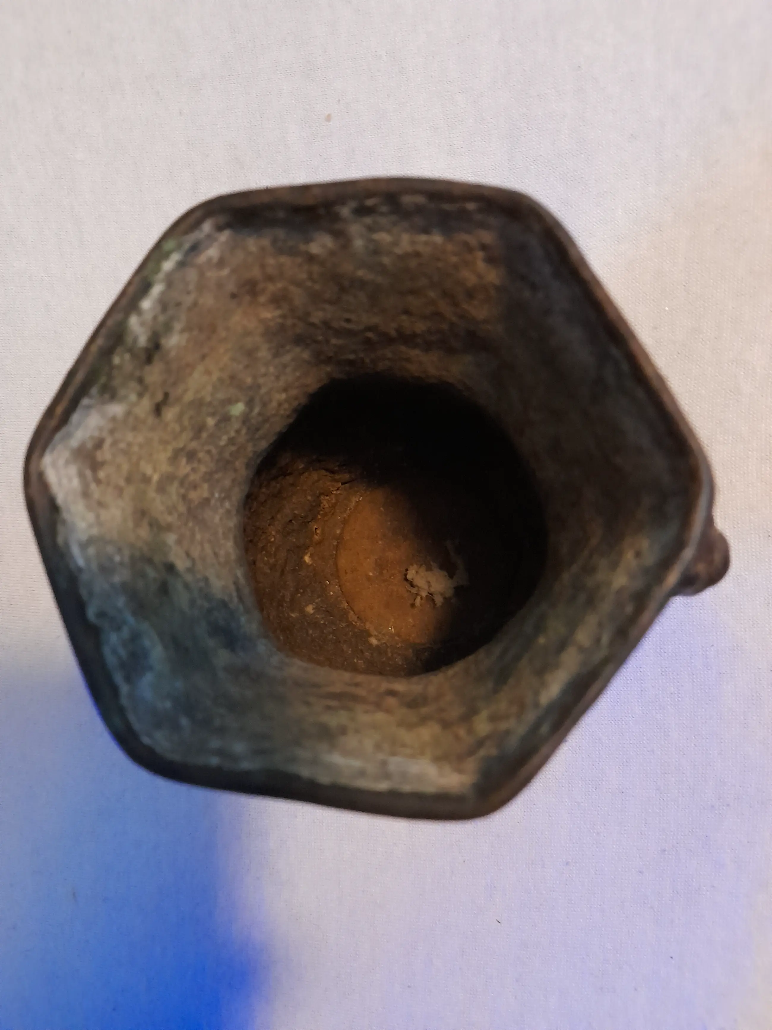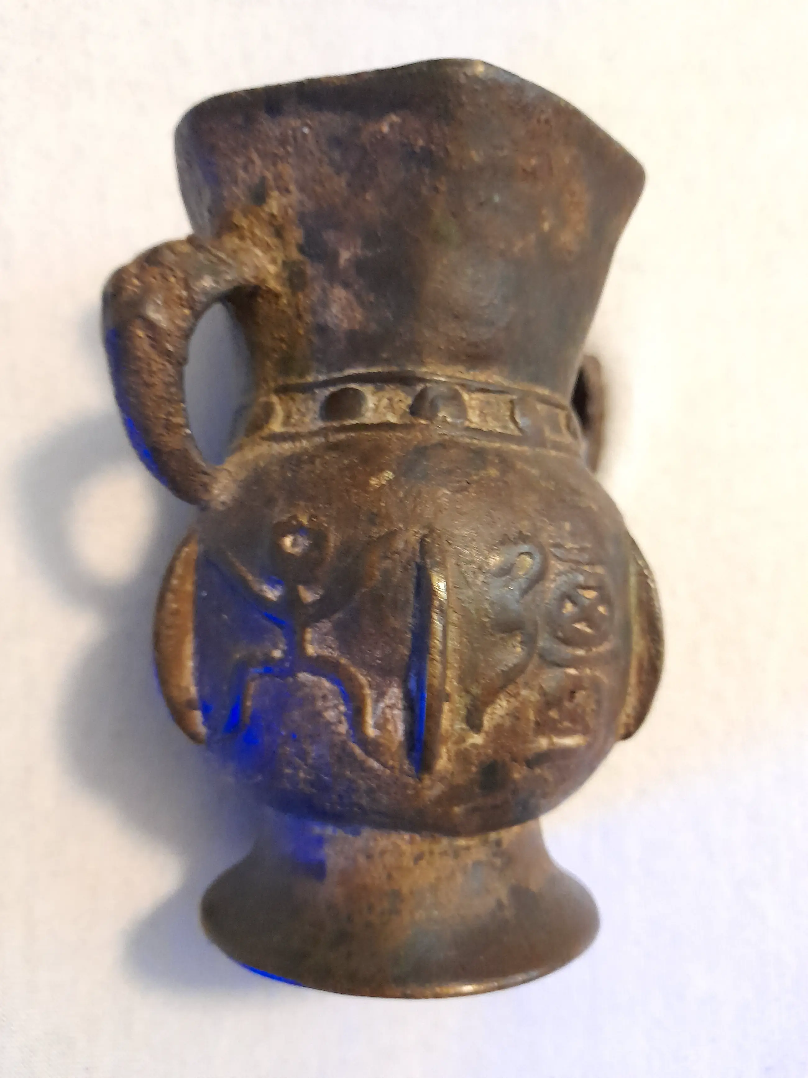 Archeologisch bronzen object rond 1600 opgegraven Antieke Zeldzame Vaas PreColumbische Marajoara cultuur afmetingen zijn hoog 13 CM en breed 9 cm