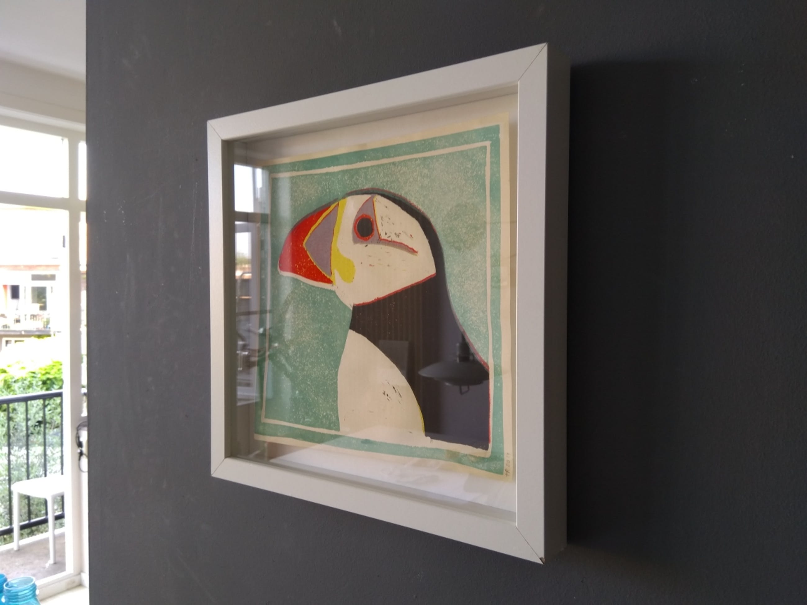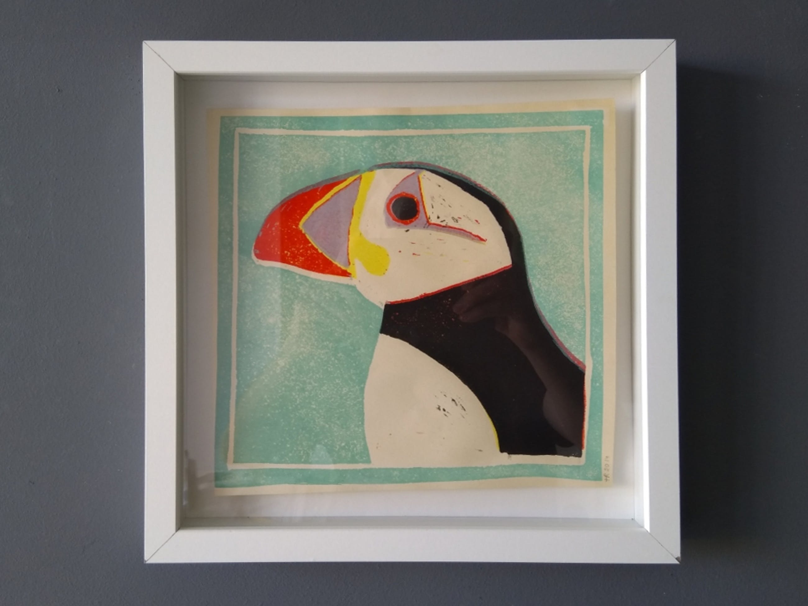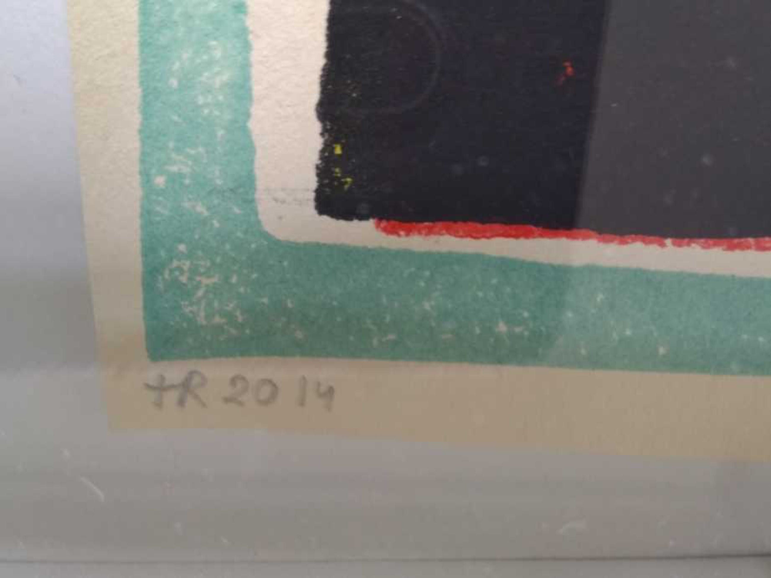 _In diepe lijst._In goede staat._Gesigneerd: HR of TR, 2014.-Linoprint in 5 drukgangen.