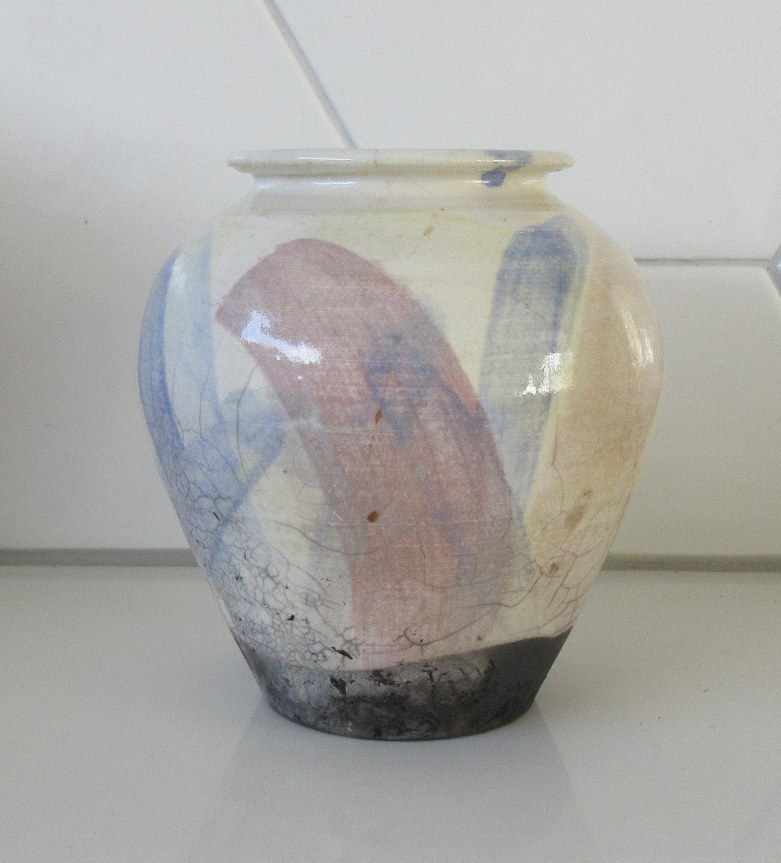 Raku Studio keramisch vaasje gesigneerd Carolien Ny of iets dergelijks?? Gedateerd '92. Mooie kleuren en in prima conditie.