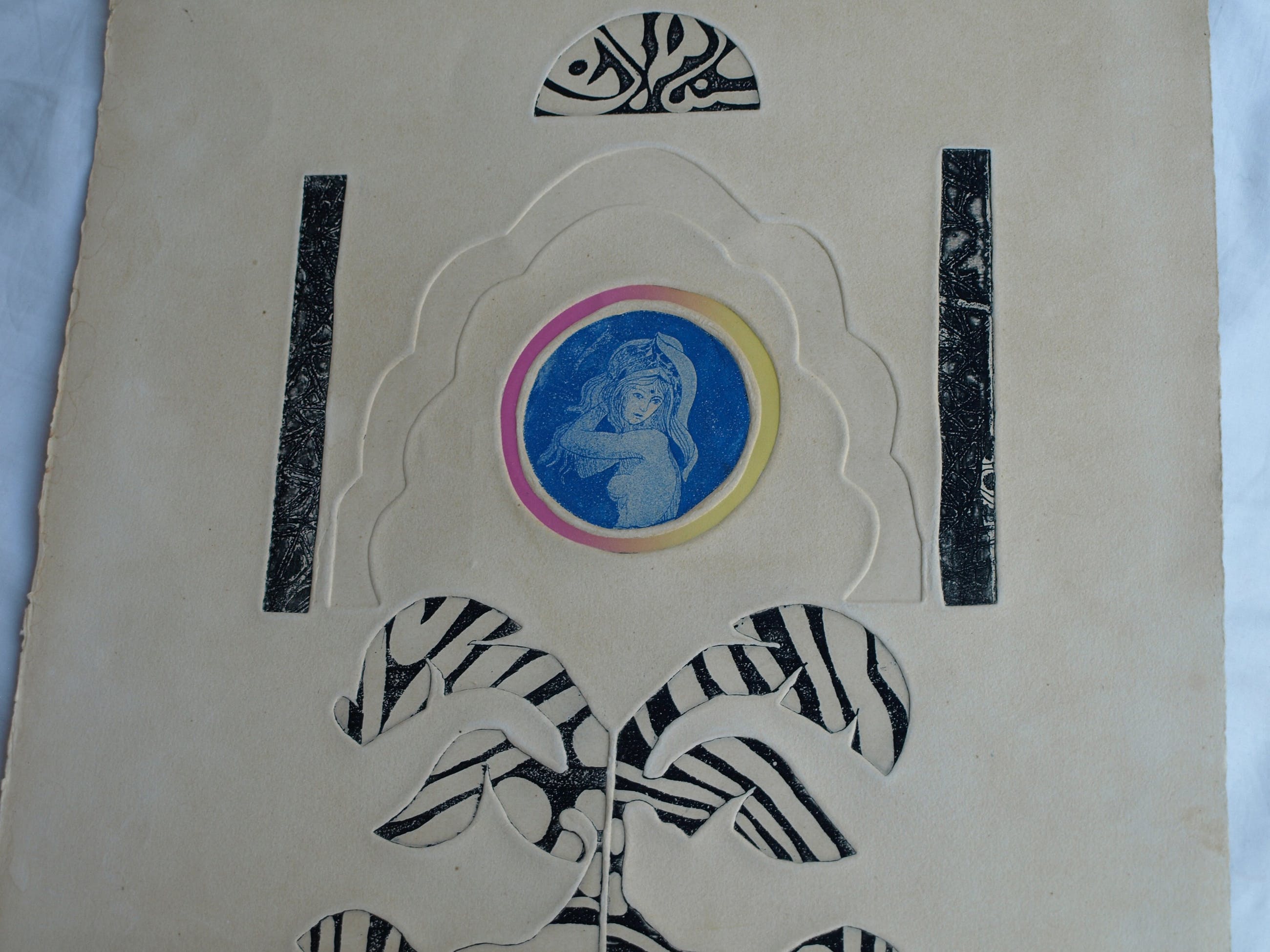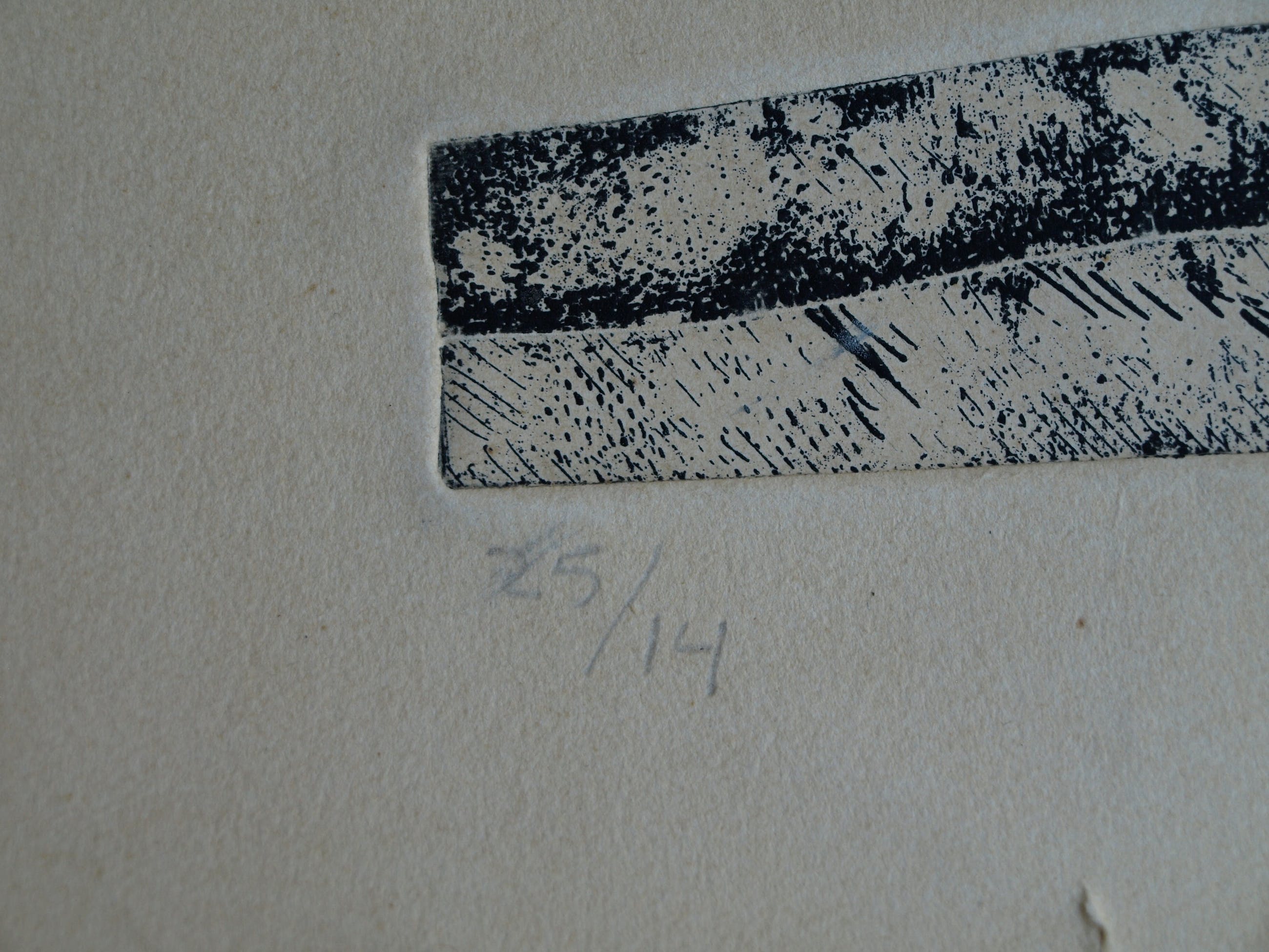 • Een grote gesigneerde reliëfdruk uit 1971 van een voor ons onbekende kunstenaar.