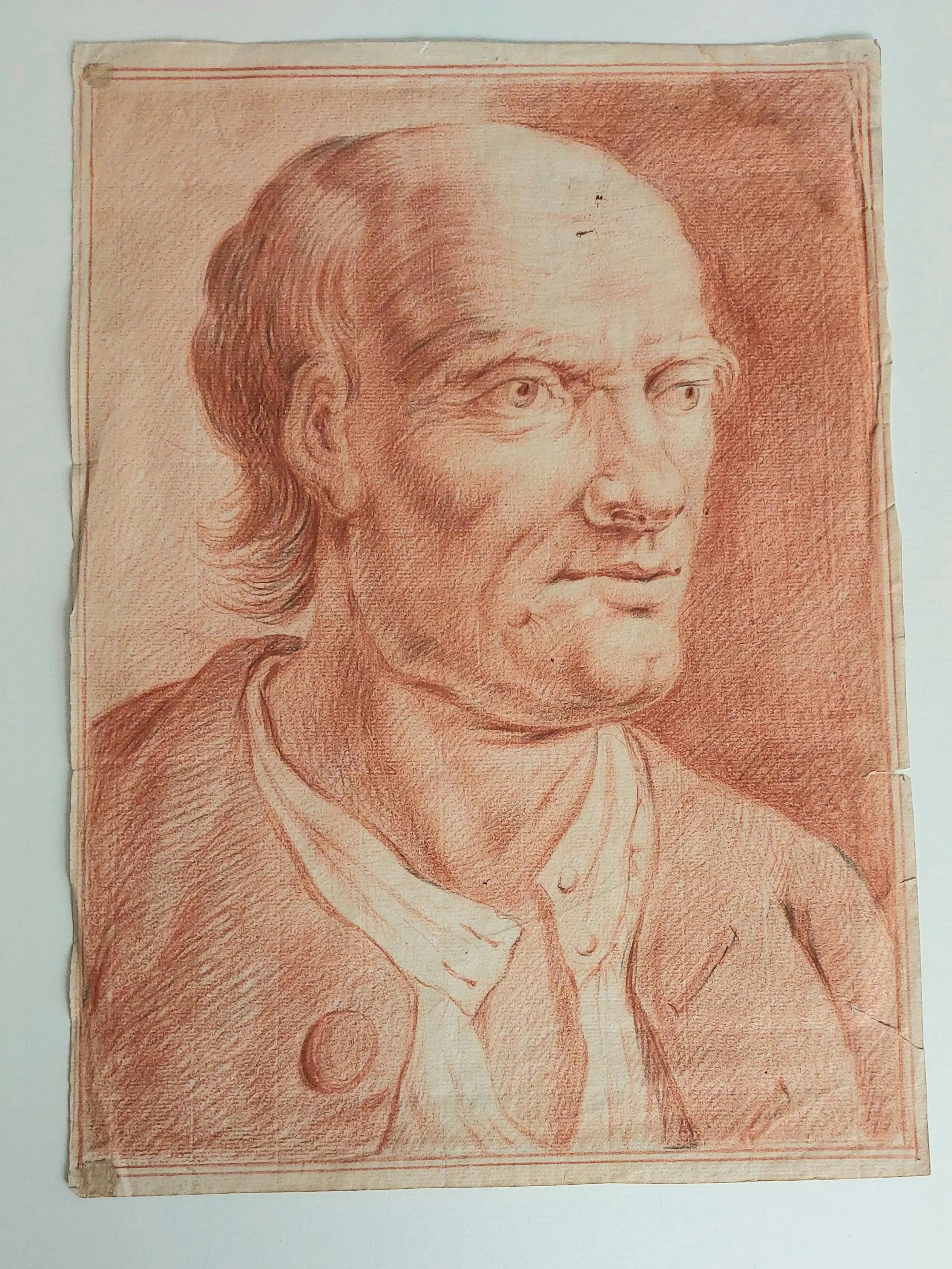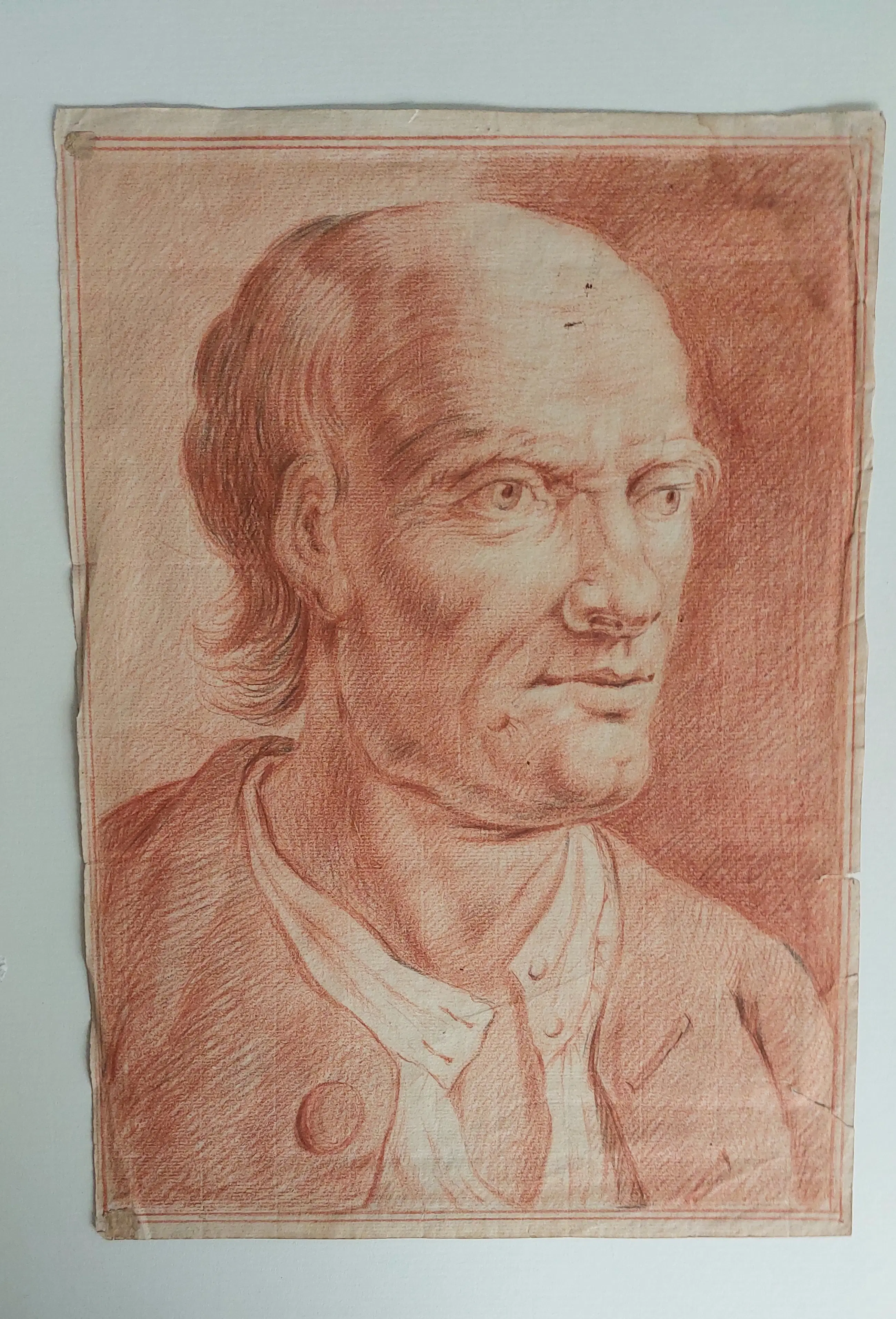 Technisch knappe roodkrijt tekening, volgens Kunstveiling taxateurs mogelijk 18e of 19e eeuws. De door hen getaxxerde waarde ligt tussen de 80 en 120 euro